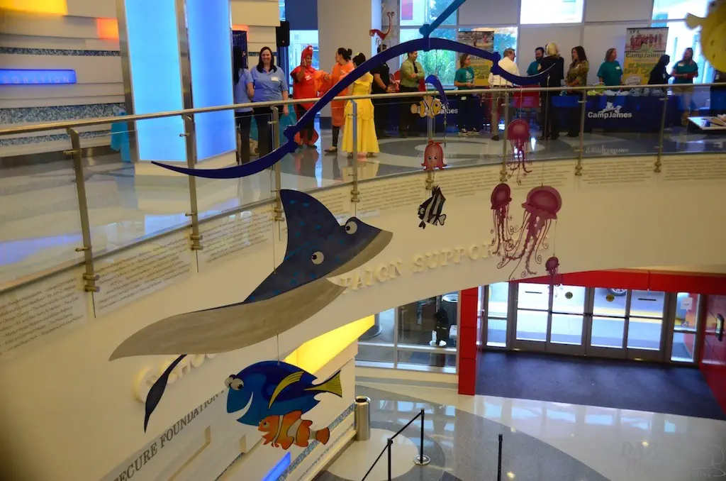 Featured on this floor are several Disney decorations, such as a Finding Nemo mobile and Turtle Talk with Crush. Yes…a whole Turtle Talk attraction built right into the wall. Appearances with Crush happen daily for hospital residents. In addition, Mickey Mouse often visits patients throughout the month. Besides the generous donations of the companies, the CHOC Foundation raises money for many of these experiences, including Ryan Seacrest Studios radio station. This station has an in house line for patients to request whatever music they would like. And, it has resident hosts. The Foundation wants to provide child patients with special experiences other children get. The hospital is also set up to not be like regular hospitals so that kids can feel more at ease being there.