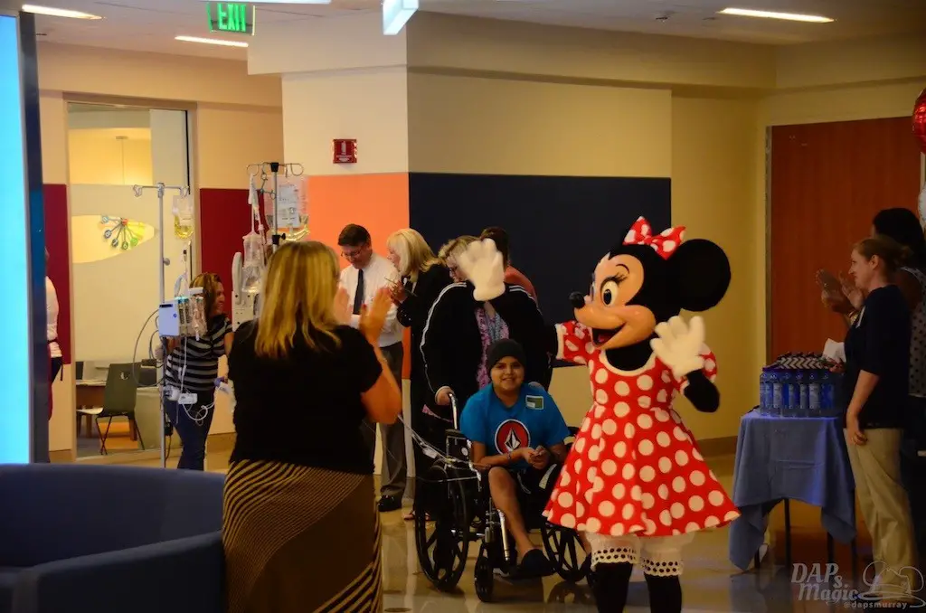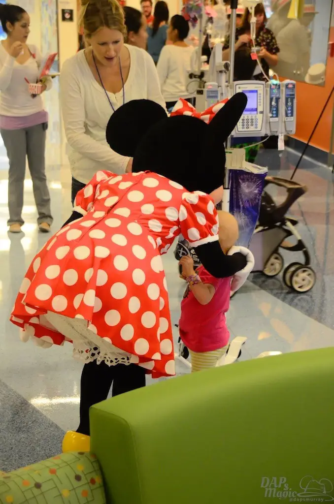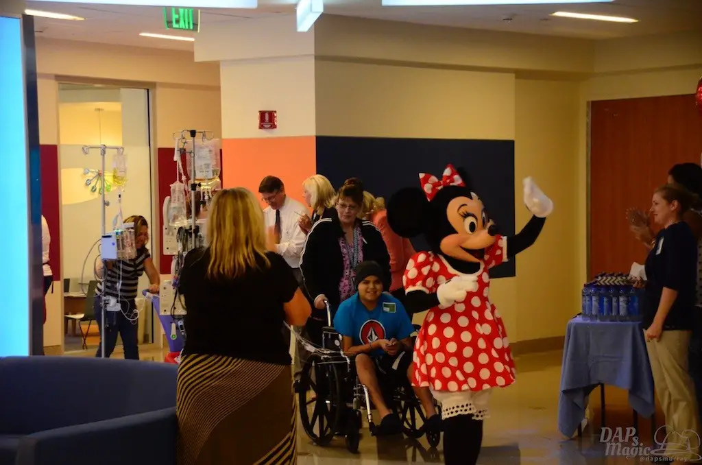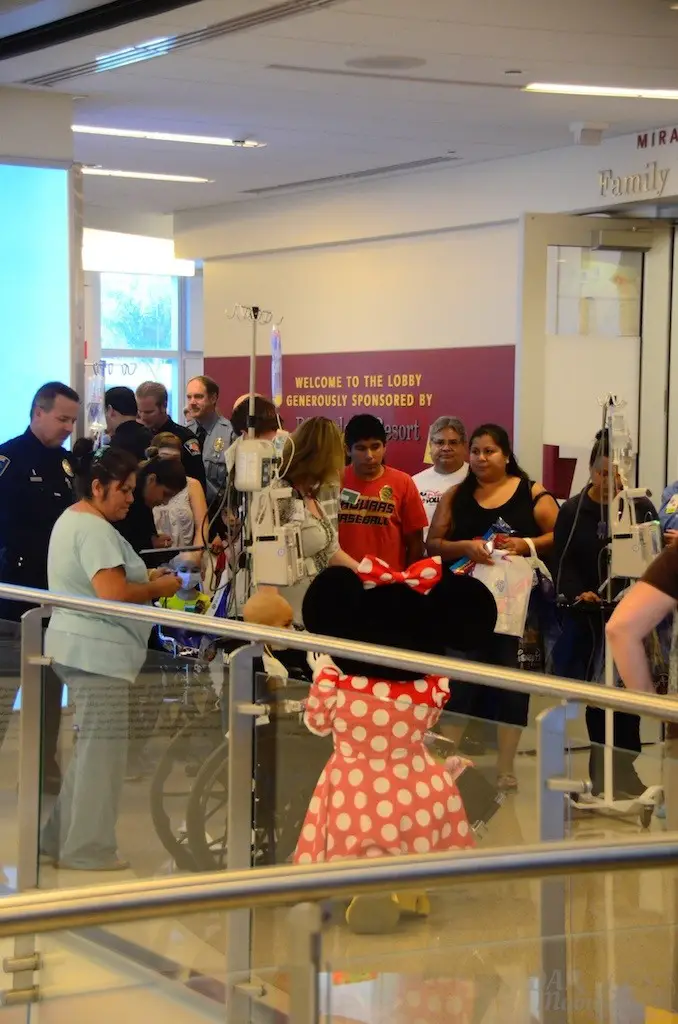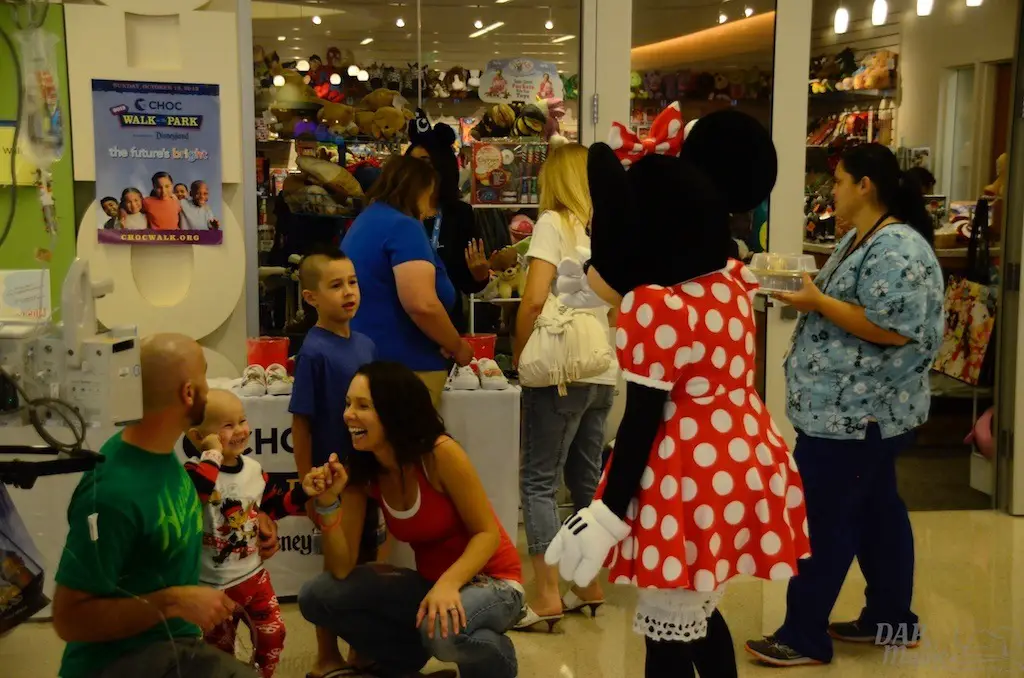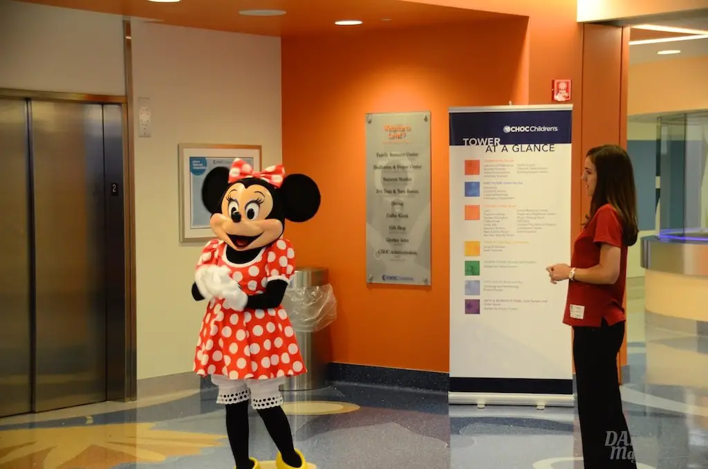 There are many things that I get to cover from time to time that are meaningful and touching. This event may have topped them all. Today, I went to the CHOC Minnie Walk that takes place in the Bill Holmes Tower of the hospital. An annual CHOC “Walk in the Park” commences in October, but this special event takes place for the children unable to attend because of hospitalization. Children go on a parade through a lineup of volunteers and booths, and being led by Minnie Mouse. Booths are setup by organizations, including In N Out, Chik Fil A, and Farrell’s. All of this took place on the second floor of the tower, which has been ordained and sponsored by the Disneyland Resort.