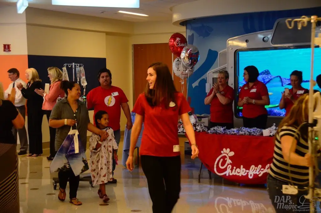 This event and wing of the hospital did not seem like a place where people are trying to get well. It was festive and lively. Kids seemed so grateful and pleased to be parading around, though quite a few looked weary from battling illnesses. And, that is what started to get to me. To realize that I could easily go to the parks any day, but these children may not at all, or even to have any normal childhood humbled me. I was glad to see Disney bring some magic to many of these families.