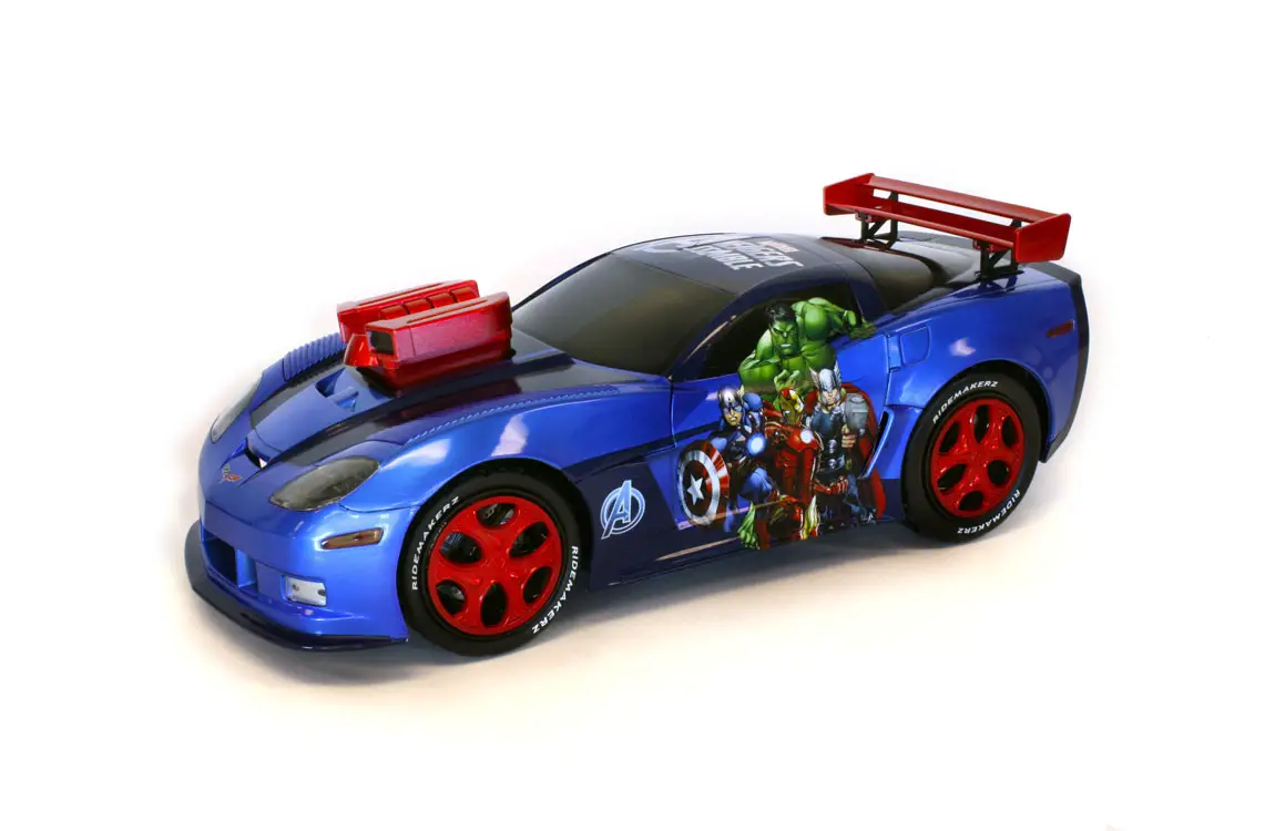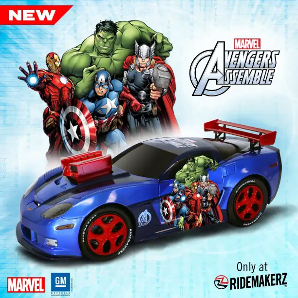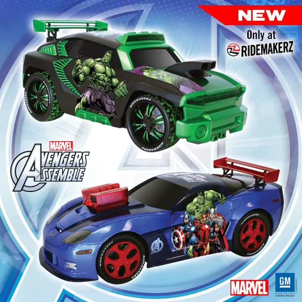 Falls Church, VA – April 14, 2015 – RIDEMAKERZ, the retailer that offers kids and adults the unique experience of building and customizing their own 1:18 scale car or “RIDE,” is adding two (2) Marvel licensed RIDEZ to its collection. The Avengers Corvette and Hulk Blitz will join the ranks of character favorites such as Lightning McQueen, Iron Man, Captain America and Spider-Man. The RIDEZ are currently available for presale at Ridemakerz.com and will be available at RIDEMAKERZ Shop locations on April 24th.