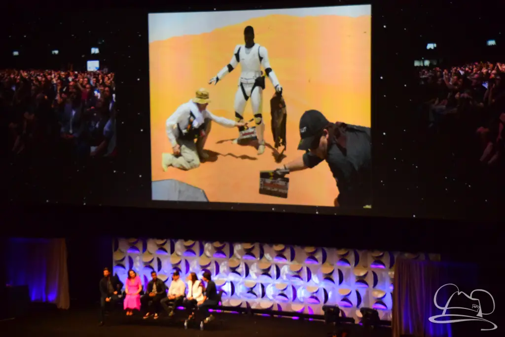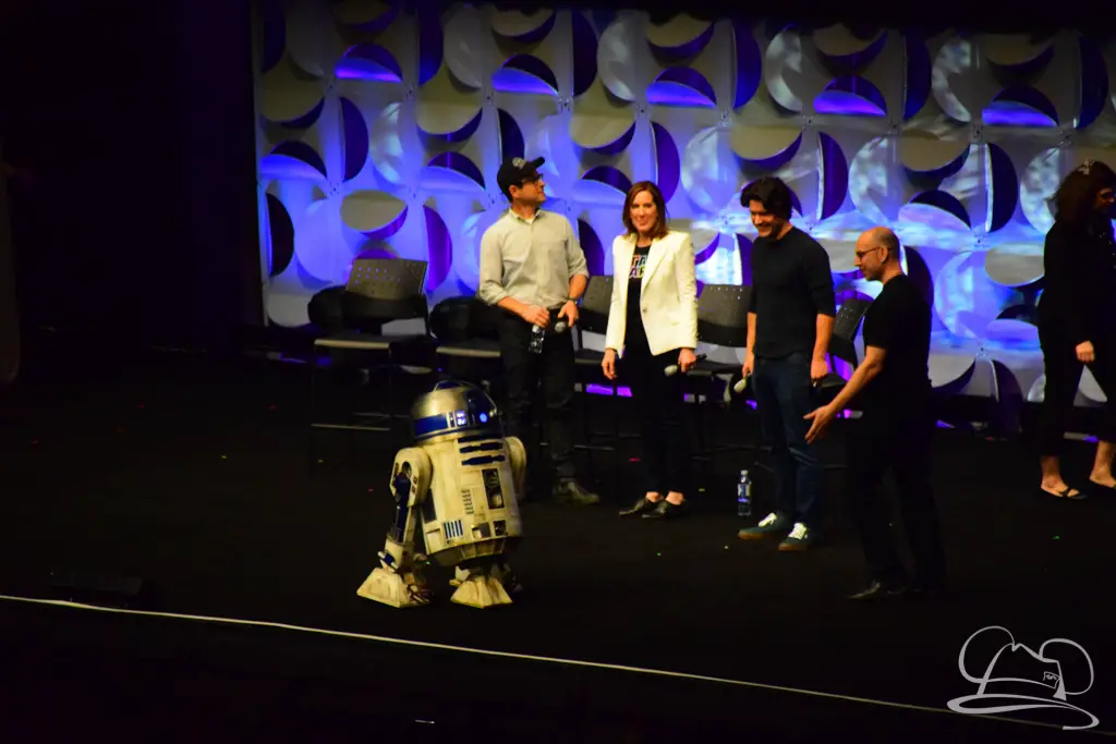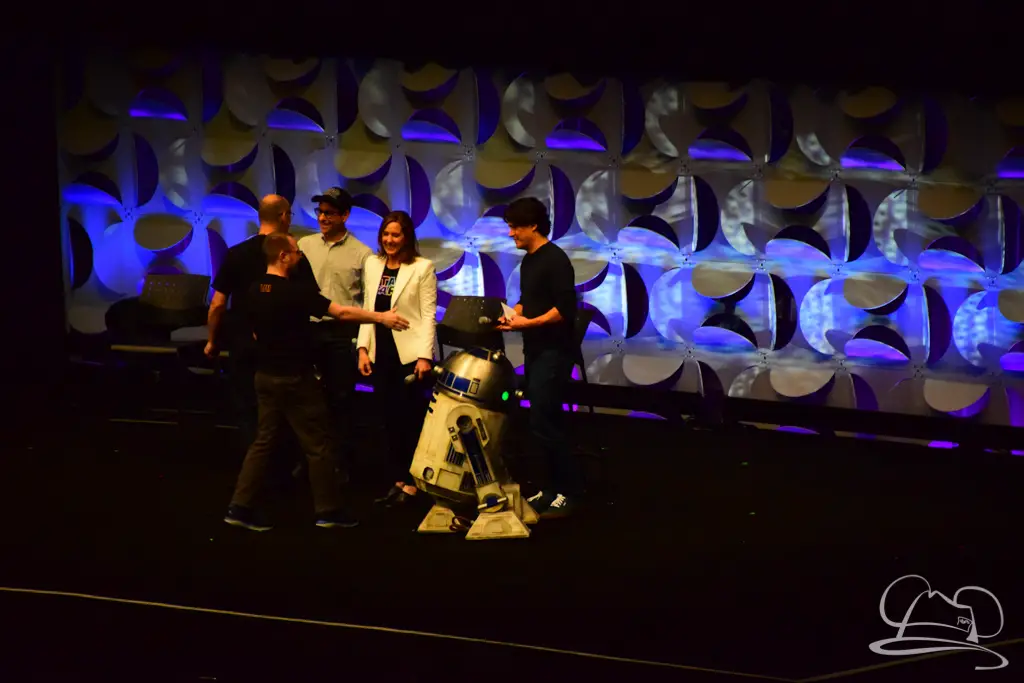 During the time that the new cast was introduced, the director and producer of Force Awakens talked about how they have met fans at Celebrations over the years. The result has been admiration of skills people have. That has led to hiring a couple of model makers and fans that were average Celebration attenders. They have helped create some of the new droids in the new film, including BB-8. They brought out real working models of R2 and BB-8 on stage!