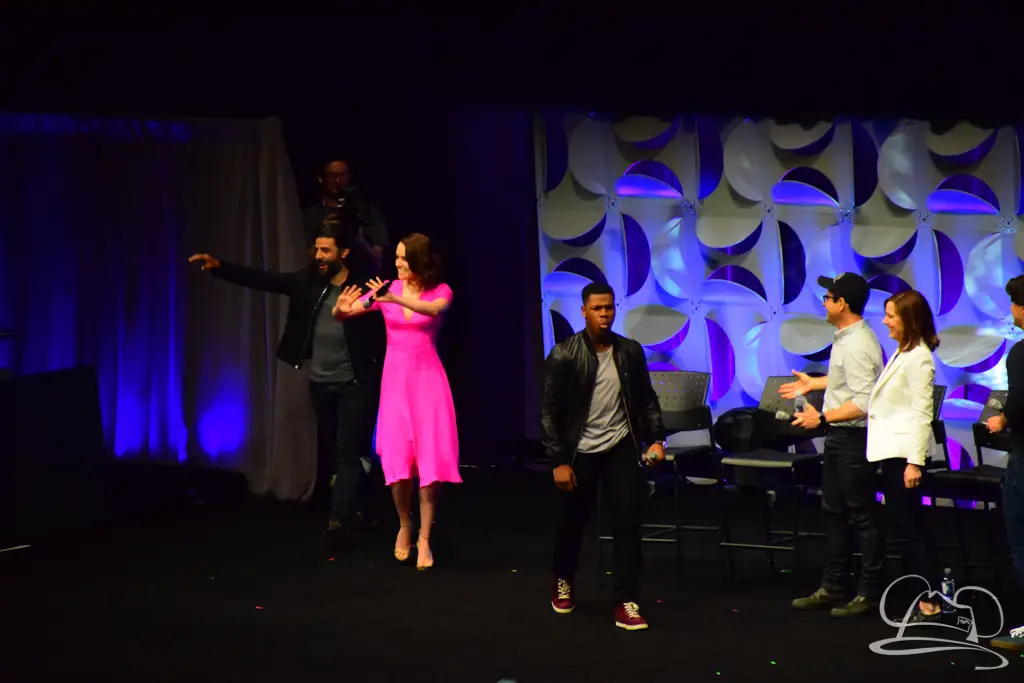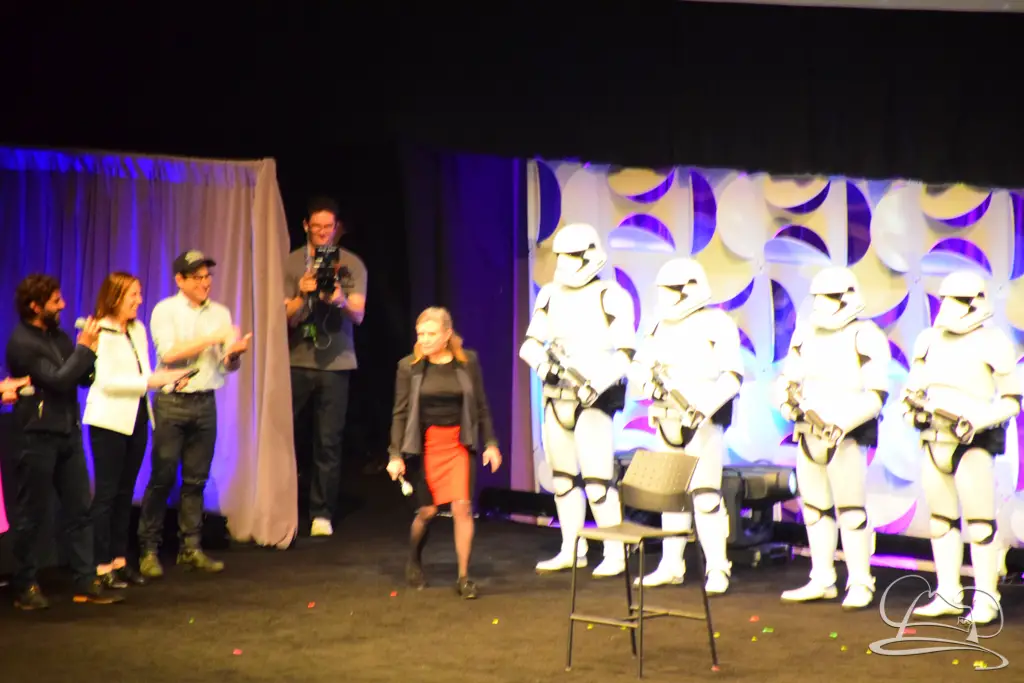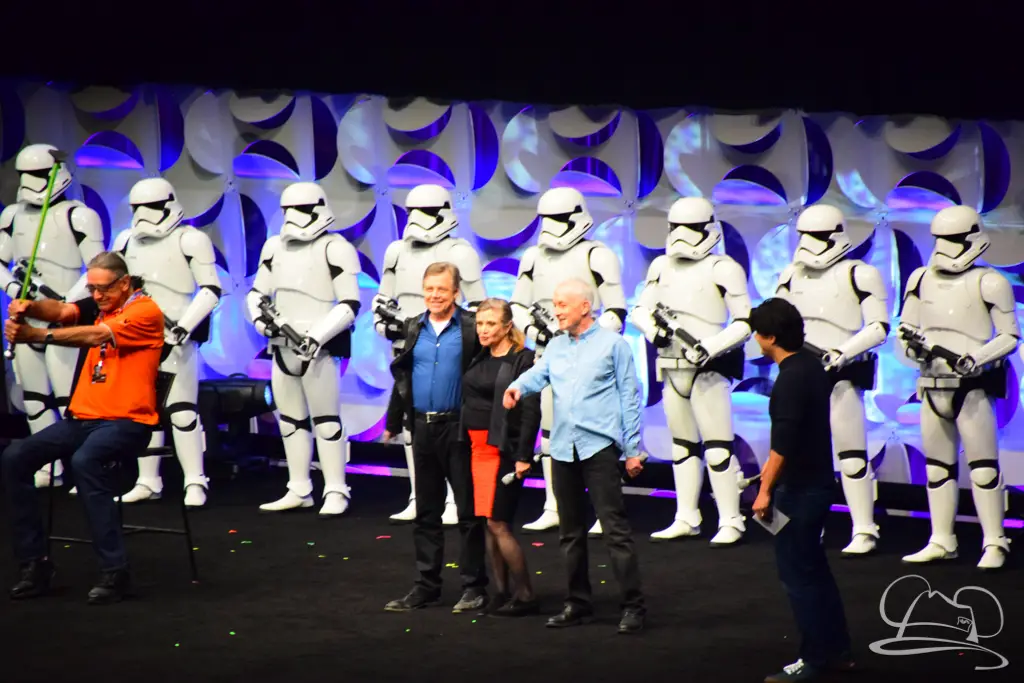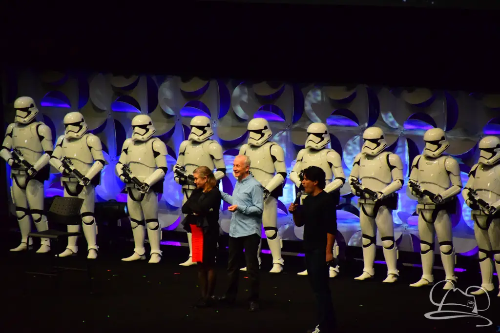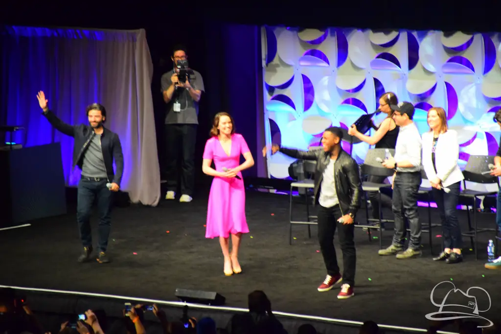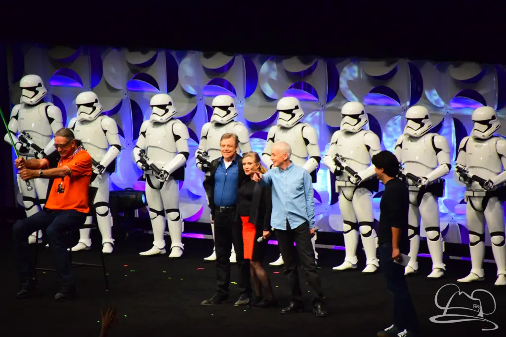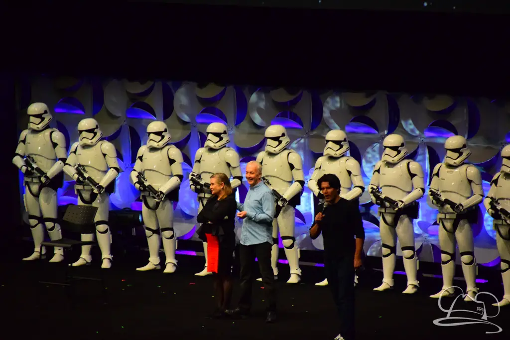 After a few tidbits were revealed with the new cast, including that the three characters are going to work together, a bit of a surprise came to the stage. Not only was there a legion of new stormtroopers paraded on, but some of the original cast that appears in the new film trodden out. Anthony Daniels, Mark Hamill, Peter Mayhew and Carrie Fisher brought on long applause. The quartet talked about how much they love the fans, and how great it has been to be part of the legacy of Star Wars.
