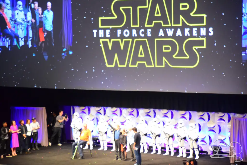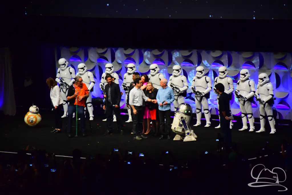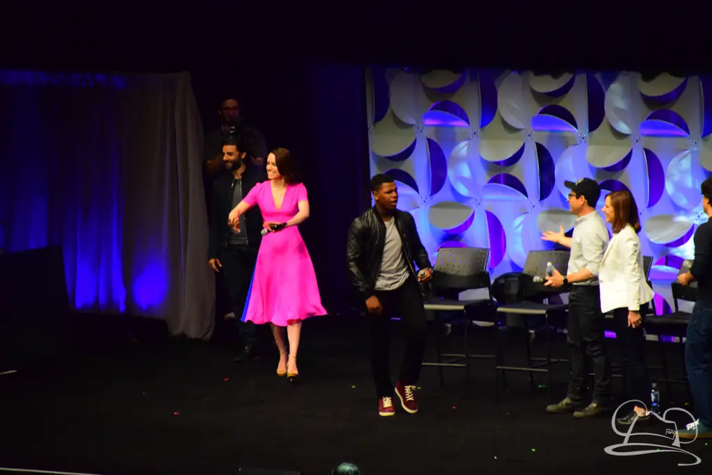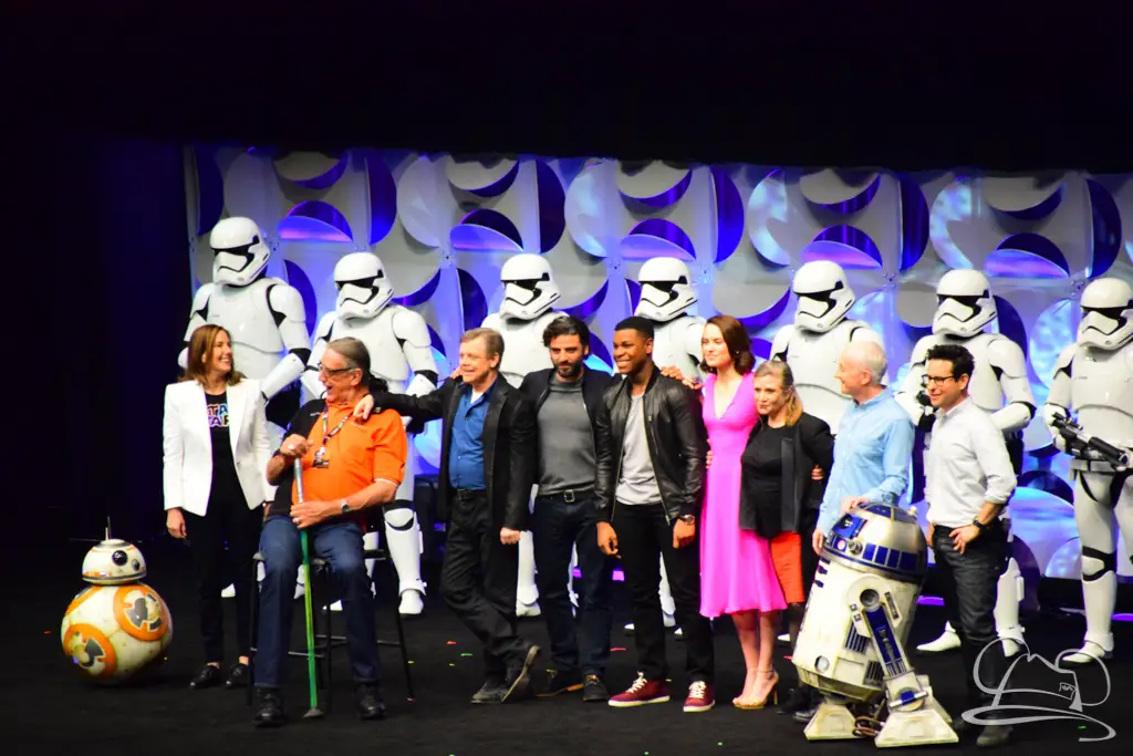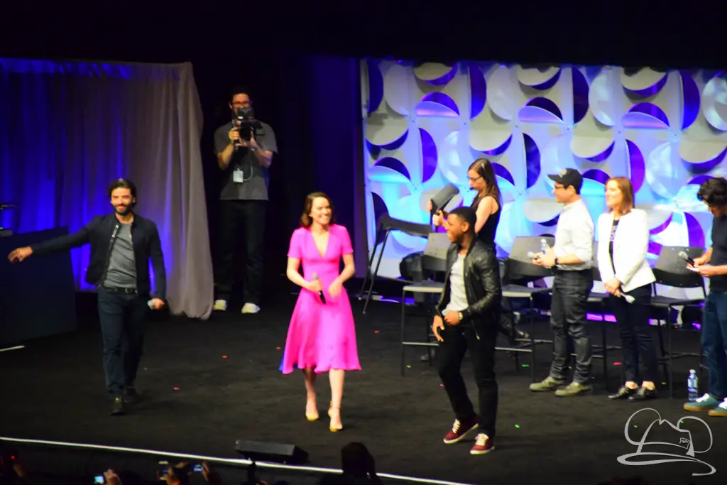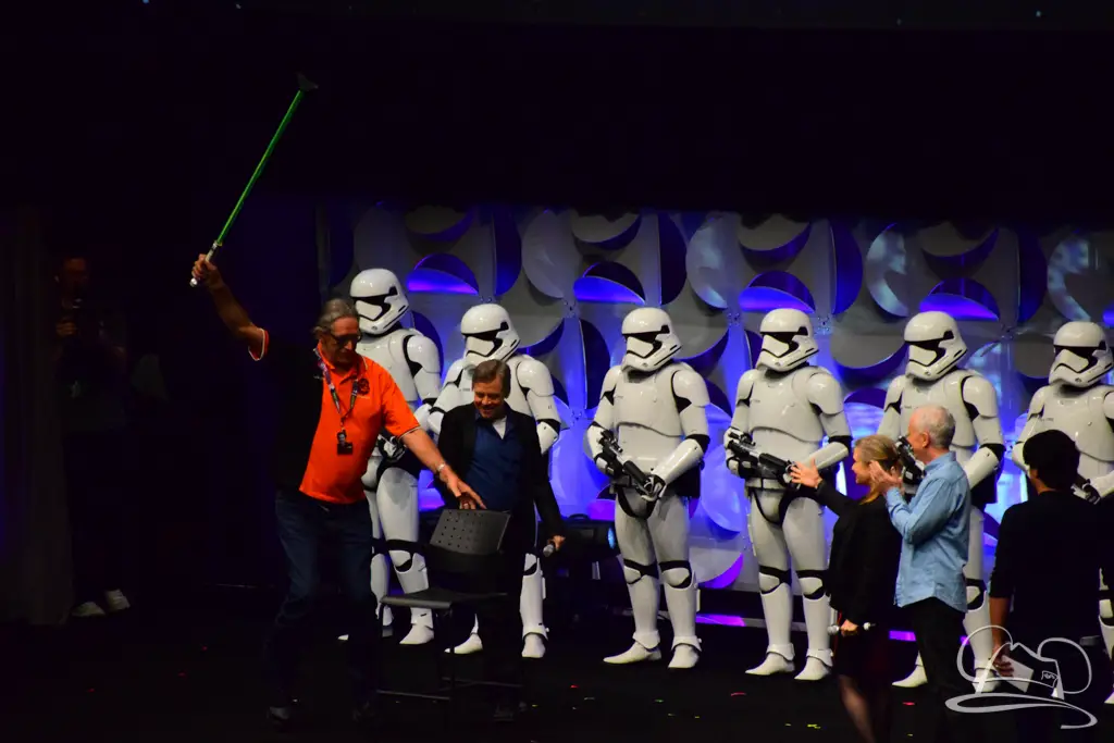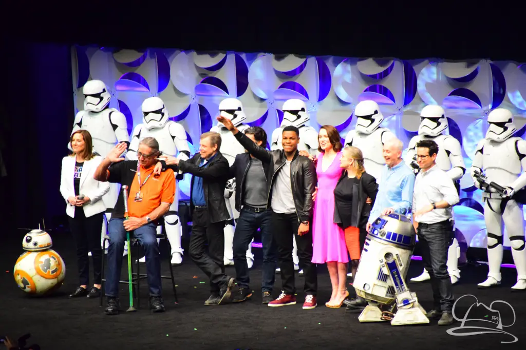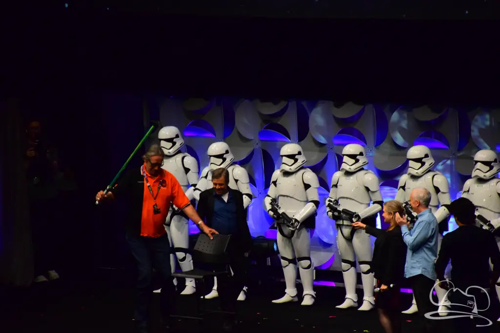 After a few tidbits were revealed with the new cast, including that the three characters are going to work together, a bit of a surprise came to the stage. Not only was there a legion of new stormtroopers paraded on, but some of the original cast that appears in the new film trodden out. Anthony Daniels, Mark Hamill, Peter Mayhew and Carrie Fisher brought on long applause. The quartet talked about how much they love the fans, and how great it has been to be part of the legacy of Star Wars.
