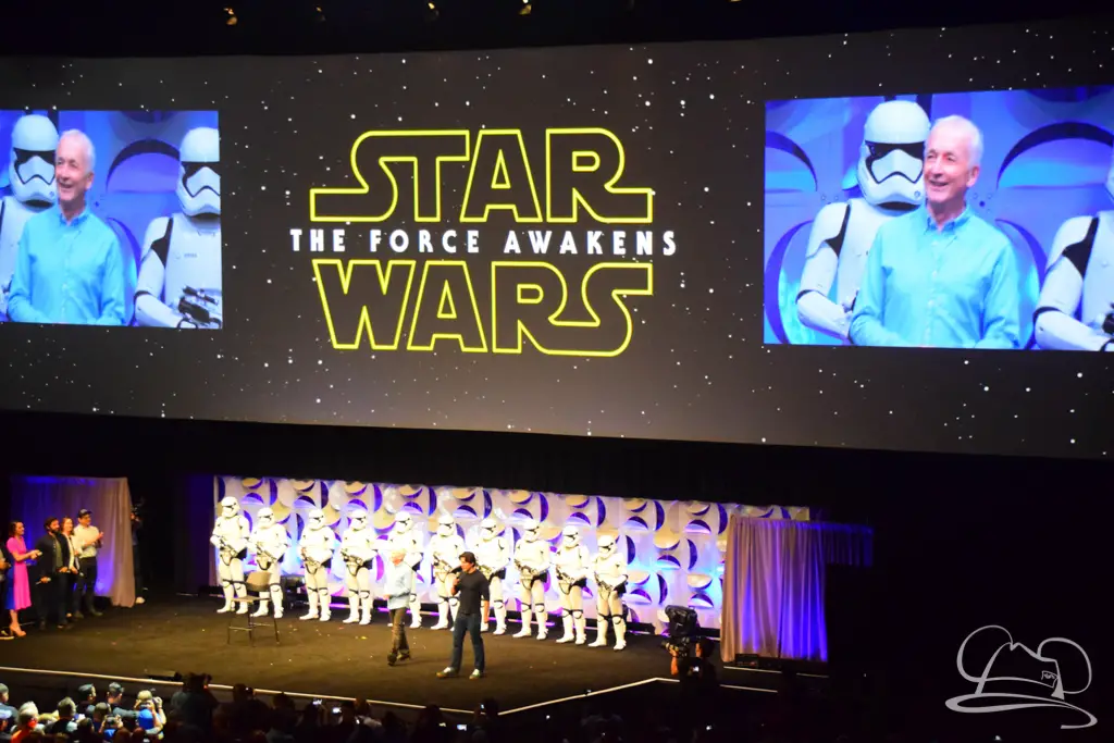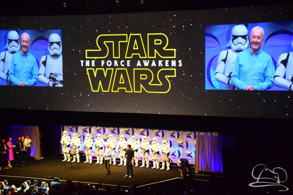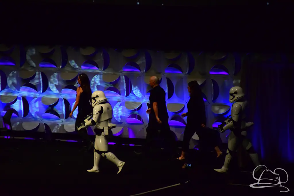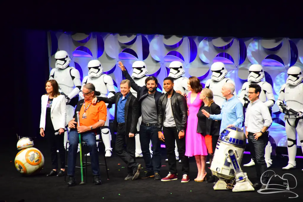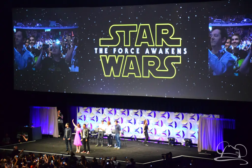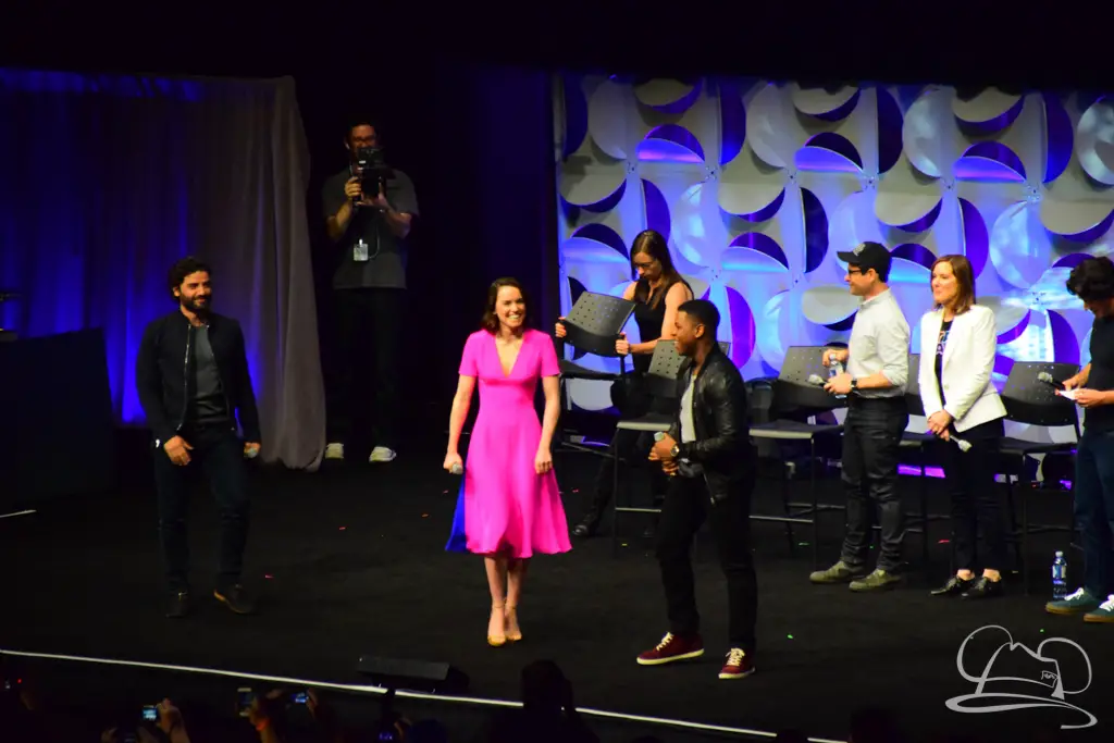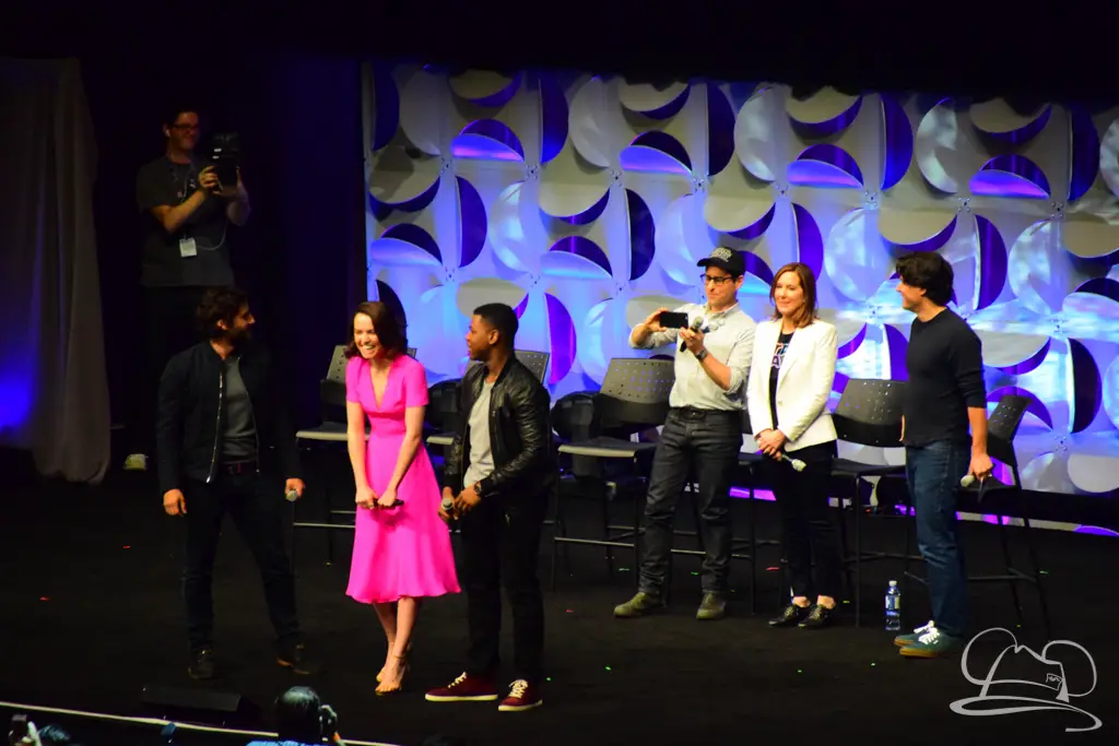 After a few tidbits were revealed with the new cast, including that the three characters are going to work together, a bit of a surprise came to the stage. Not only was there a legion of new stormtroopers paraded on, but some of the original cast that appears in the new film trodden out. Anthony Daniels, Mark Hamill, Peter Mayhew and Carrie Fisher brought on long applause. The quartet talked about how much they love the fans, and how great it has been to be part of the legacy of Star Wars.