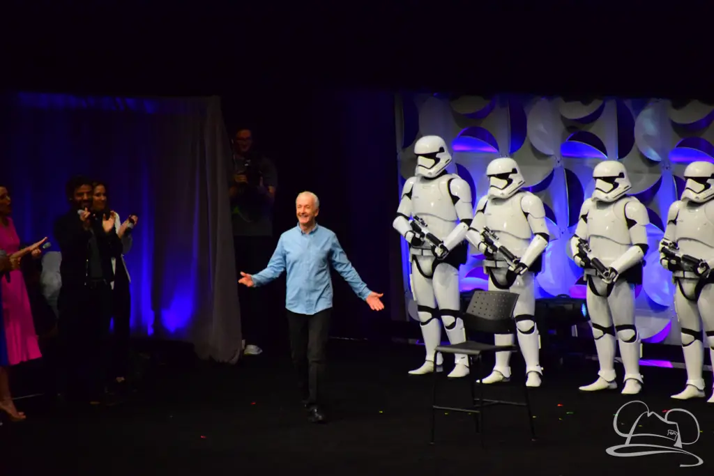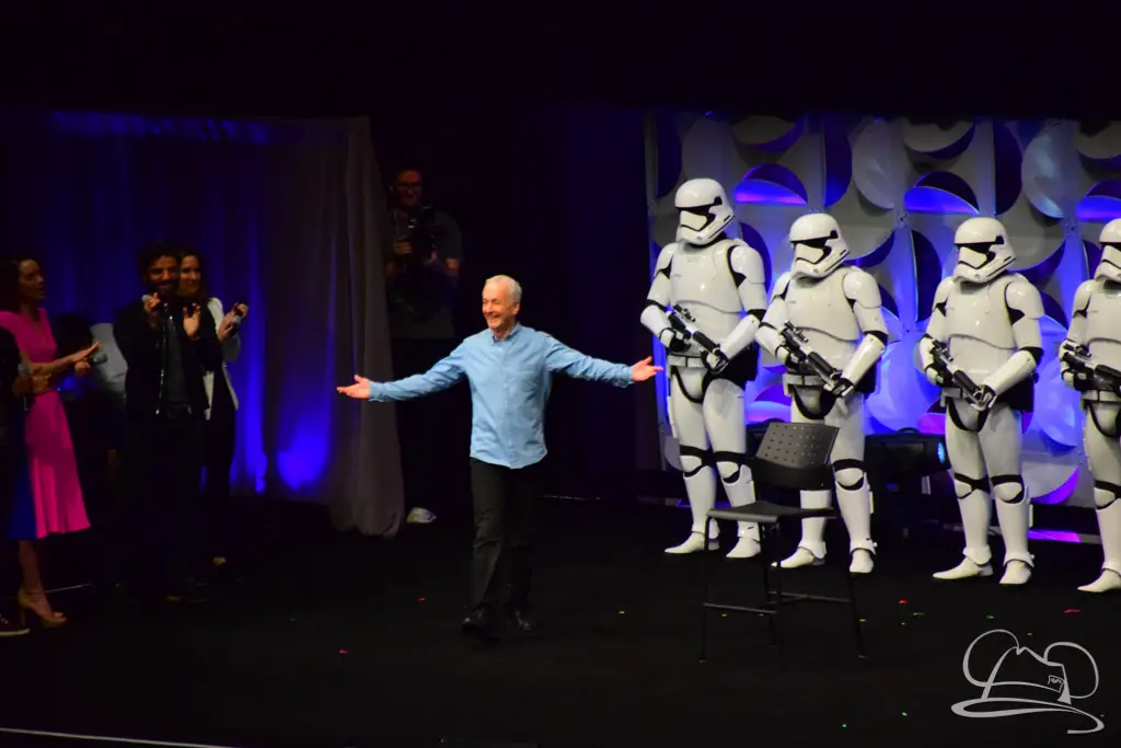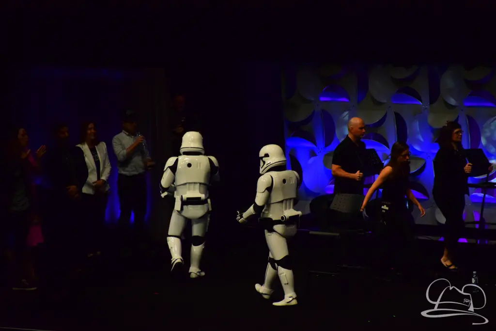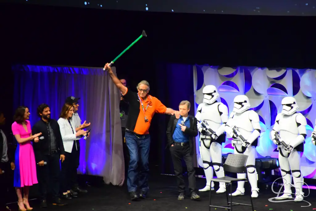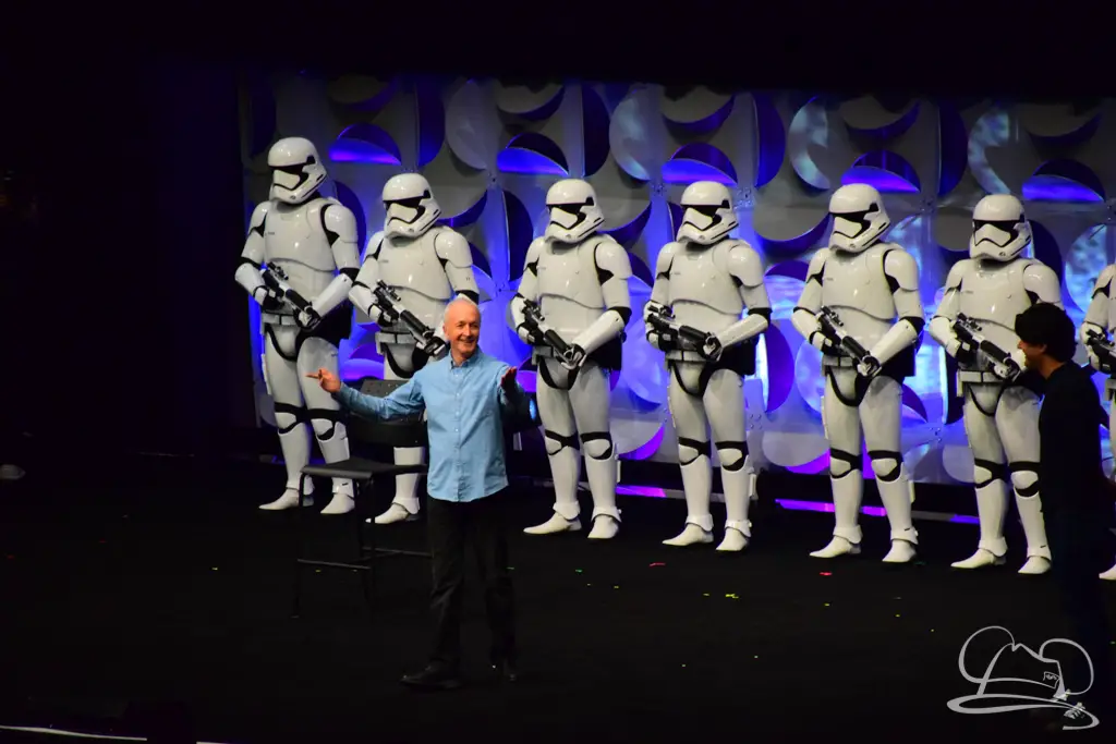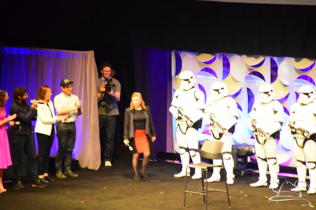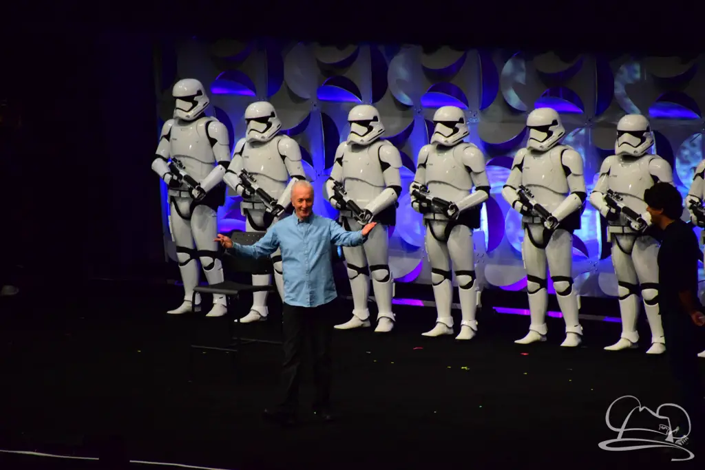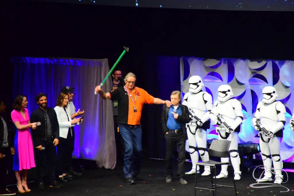 After a few tidbits were revealed with the new cast, including that the three characters are going to work together, a bit of a surprise came to the stage. Not only was there a legion of new stormtroopers paraded on, but some of the original cast that appears in the new film trodden out. Anthony Daniels, Mark Hamill, Peter Mayhew and Carrie Fisher brought on long applause. The quartet talked about how much they love the fans, and how great it has been to be part of the legacy of Star Wars.