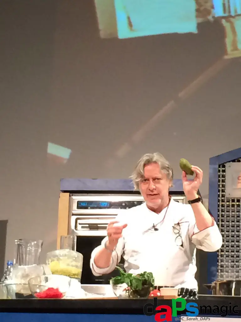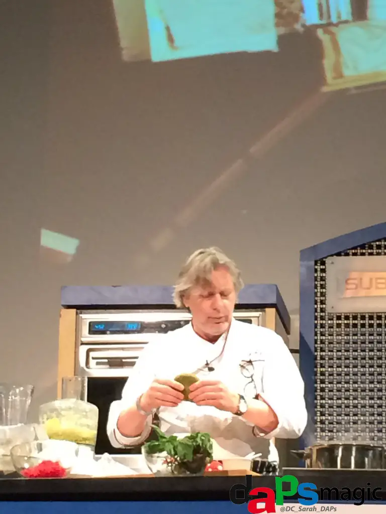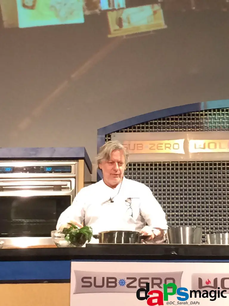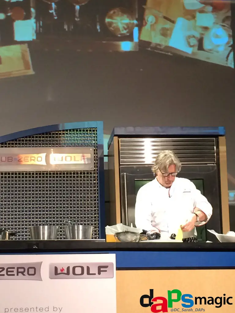Once in the Epicurean Expo area we wandered around, tried some wine and waited for the next chef demo. The demo happened to be featuring none other than Chef Christopher Gross. Chef Gross demoed his lobster pasta and tomato tea. In the demo Chef Gross showed us how seemingly green lobster pasta (flavored with lobster roe) turns pink once cooked.