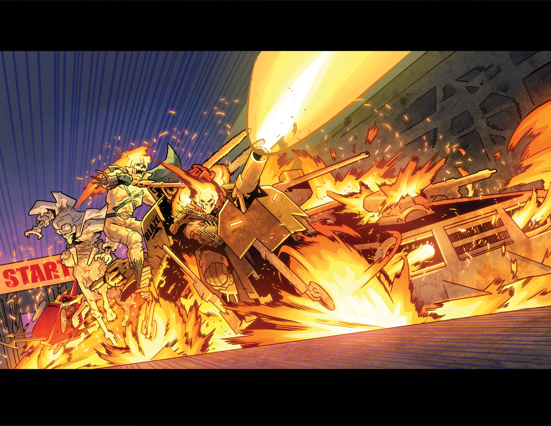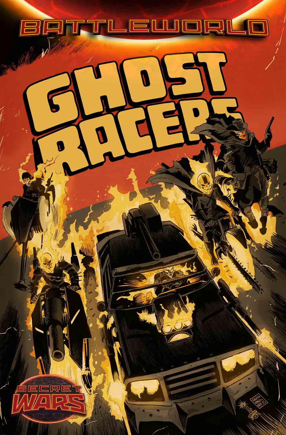 New York, NY—May 13th, 2015— Start your engines! Prepare for terror! The deadliest racers on Battleworld are peeling out and unleashing their fury this June. Today, Marvel is pleased to present your new look at GHOST RACERS #1 – a new Secret Wars series from writer Felipe Smith and artist Juan Gedeon! Put the pedal to the metal as the Spirits of Vengeance go head to head in lethal, cutthroat races! Welcome to the scorching hot track of Battleworld’s arena – for the one and only spectacle known as the Ghost Races! Enslaved and bound to the arena, cursed souls race at the speed of sin – and anything and everything goes! Friendship, loyalties and family bonds will be tested. All in the name of the top prize – temporary freedom from the arena! But what happens to the unlucky and unholy losers? Now, Robbie Reyes, Johnny Blaze, Danny Ketch, Alejandra Blaze and many, many more step onto the track for all-out, high-speed warfare. The stakes have never been higher as the most vicious Spirits of Vengeance do battle for their very souls! Who will come out on top and who will be left in the dust? Buckle up for the most wild ride of the Secret Wars when GHOST RACERS #1 speeds into comic shops this June!