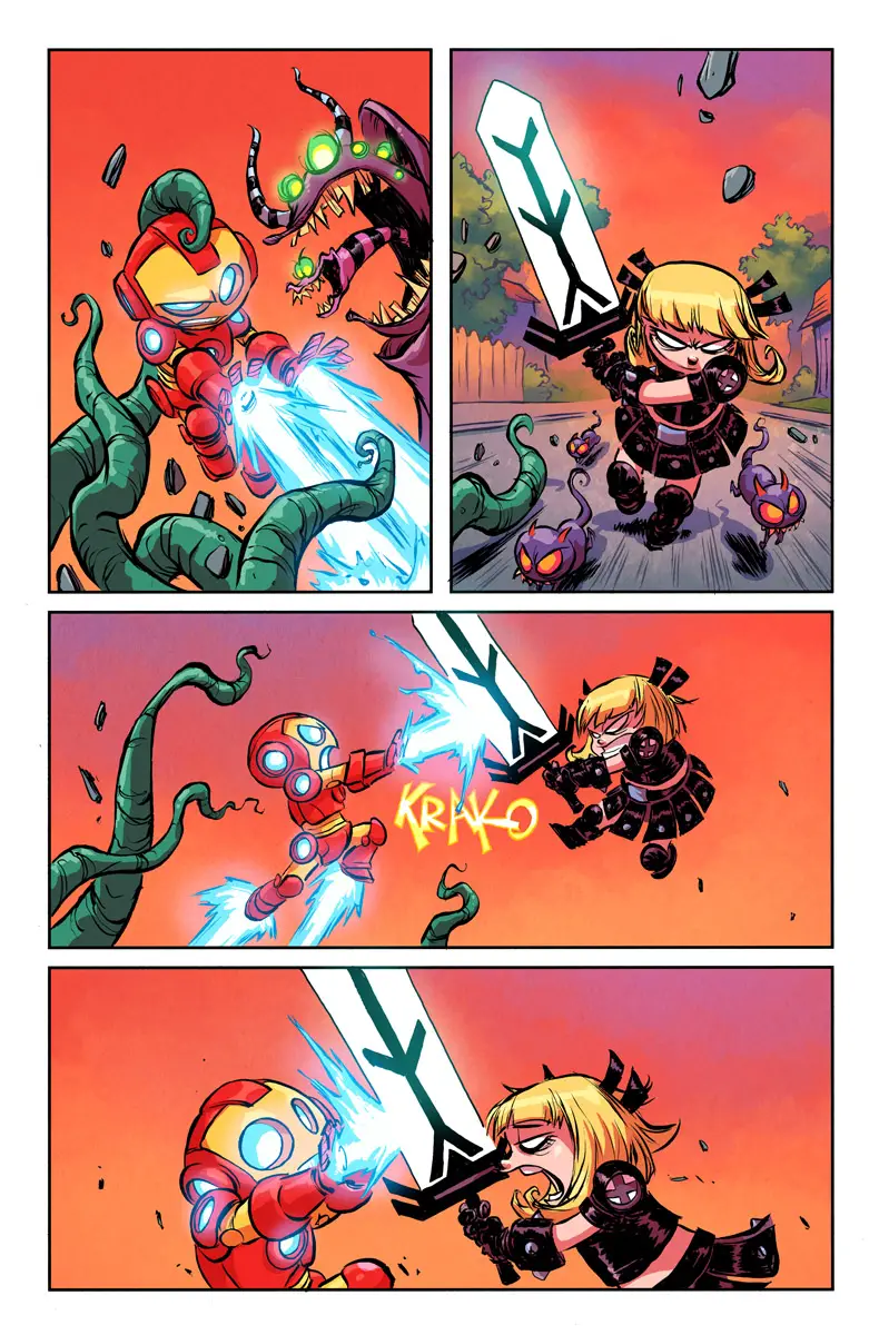 New York, NY—May 08th, 2015— You thought Avengers vs. X-Men was big? Well you ain’t seen nothing! This June, superstar writer/artist and 2015 Eisner Award nominee Skottie Young (Rocket Raccoon) brings his inimitable style to Battleworld with GIANT-SIZE LITTLE MARVEL: AVX #1! Big action and tiny heroes collide as an all-out war breaks out between the two biggest factions in the Marvel Universe! The toughest, craziest and most popular Marvel heroes are going to THROW DOWN on Battleworld. Featuring the likes of Cyclops, Hawkeye, Magik, Black Widow, Wolverine, Captain America and many, many more. They’re all here – just shorter! This is the series you’ve been waiting for. Be there this June when Skottie Young brings out the big guns for GIANT-SIZE LITTLE MARVEL: AVX #1!