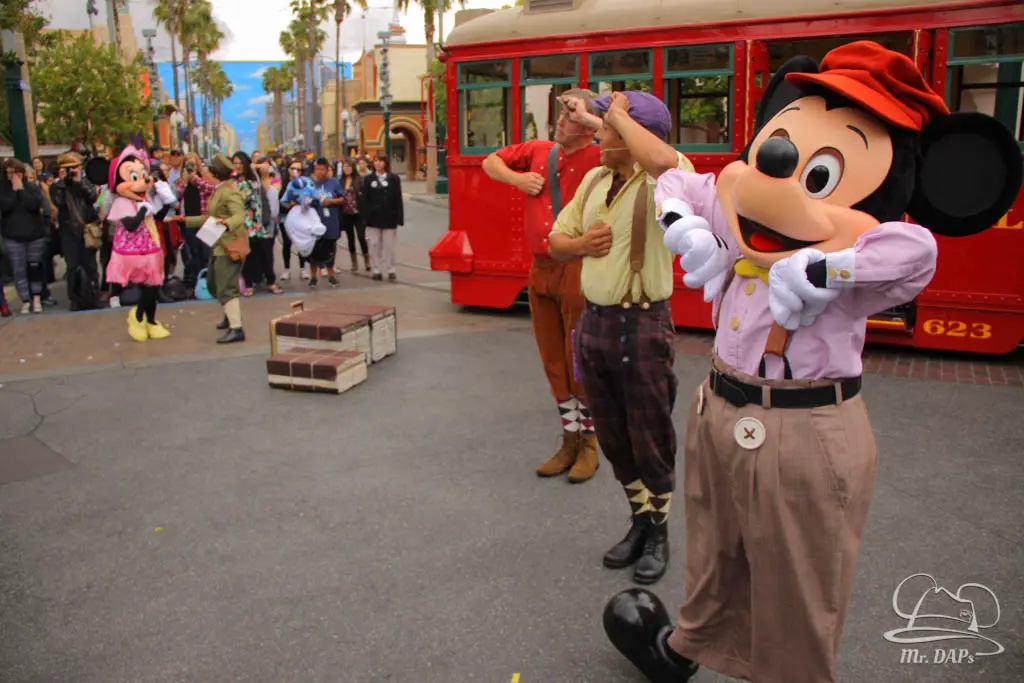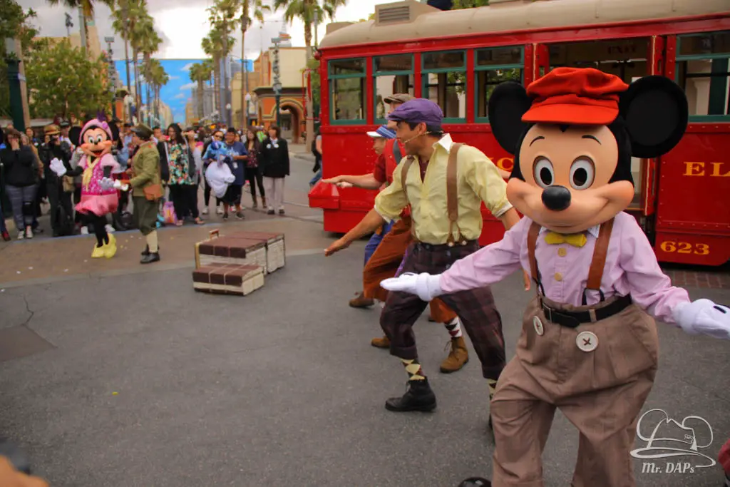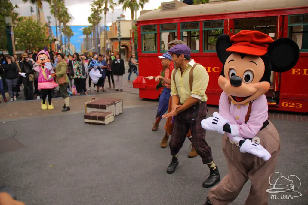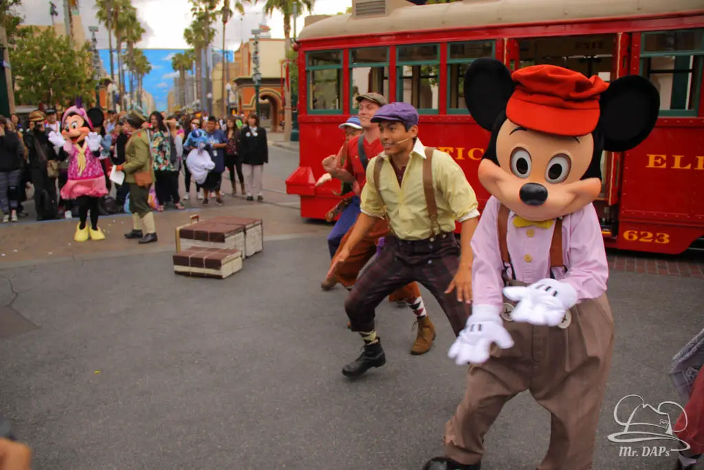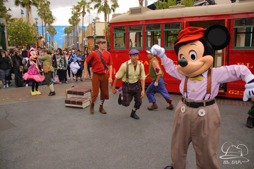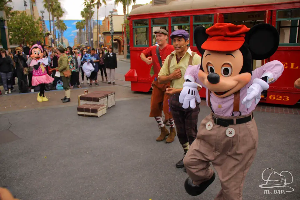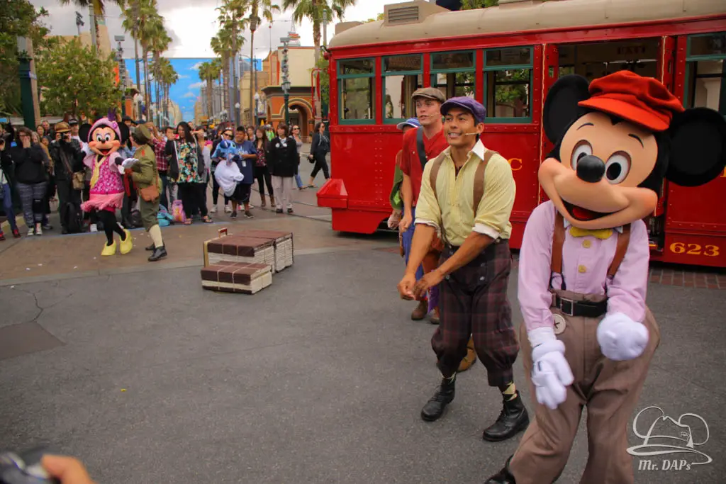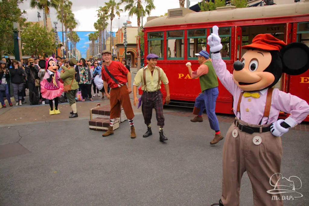 Minnie Mouse can now be seen with Mickey Mouse and the Red Car Trolley News Boys on Buena Vista Street daily. With so many things going on with Disneyland’s 60th anniversary celebration, it would be easy to miss some of the many additions to some of the entertainment offerings at the Disneyland Resort. During the 24 hour day at the Disneyland Resort, one of these additions was a new song that helped bring Minnie Mouse into this popular Disney California Adventure show.