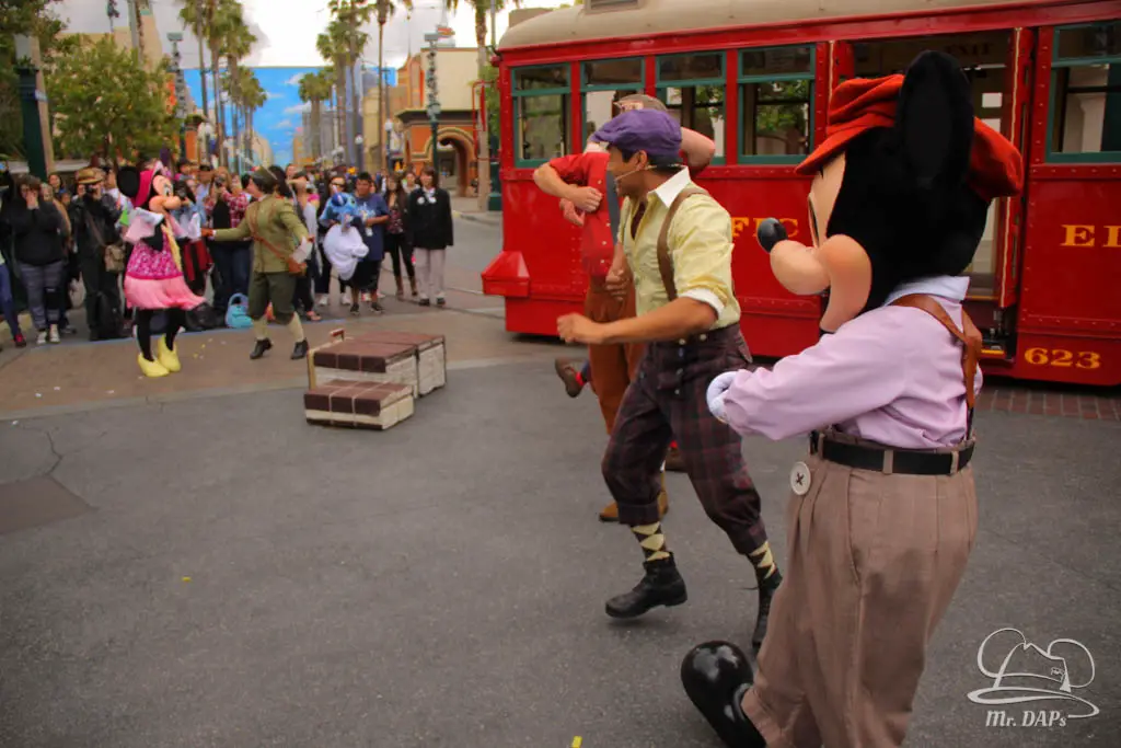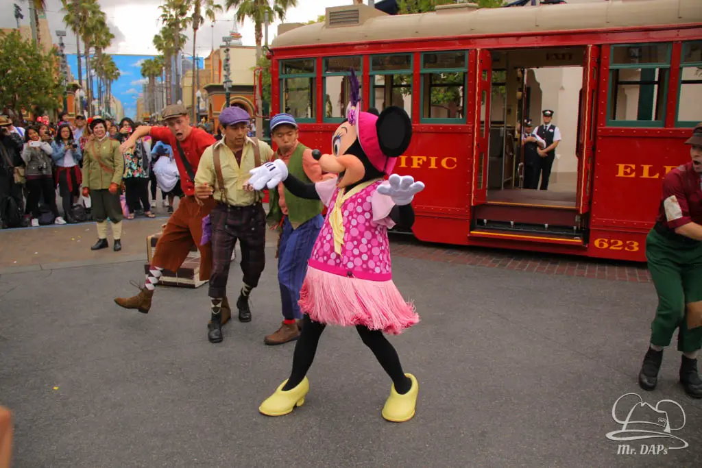 Take a look as Minnie appears for the first time with the Red Car Trolley News Boys: