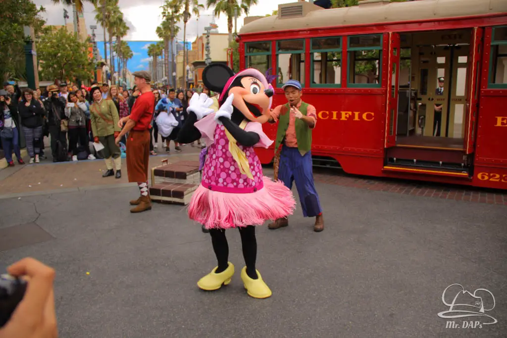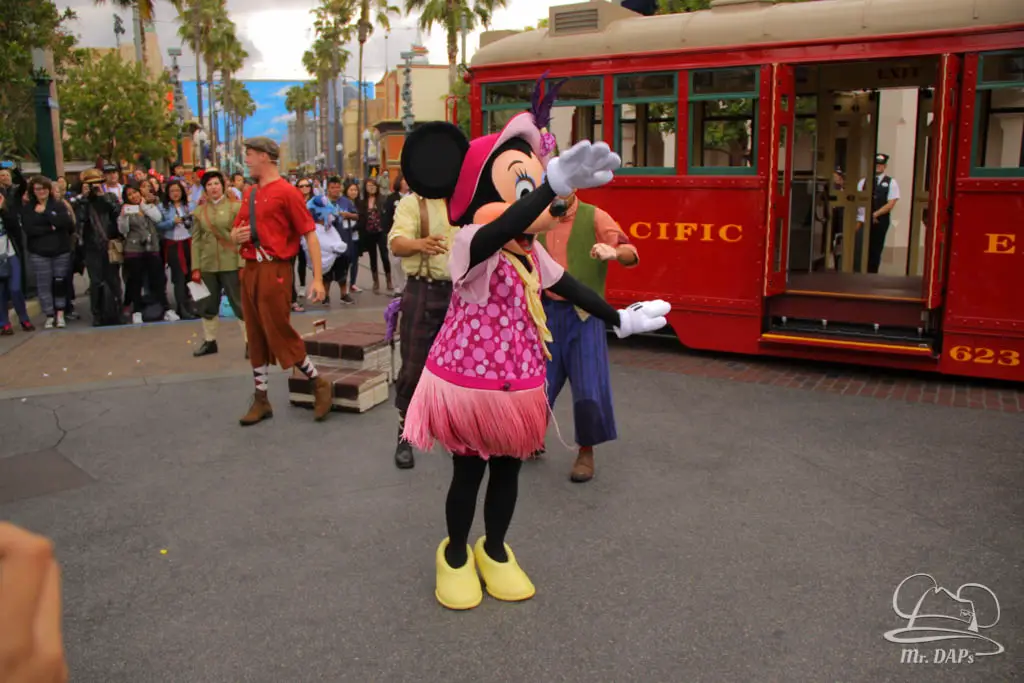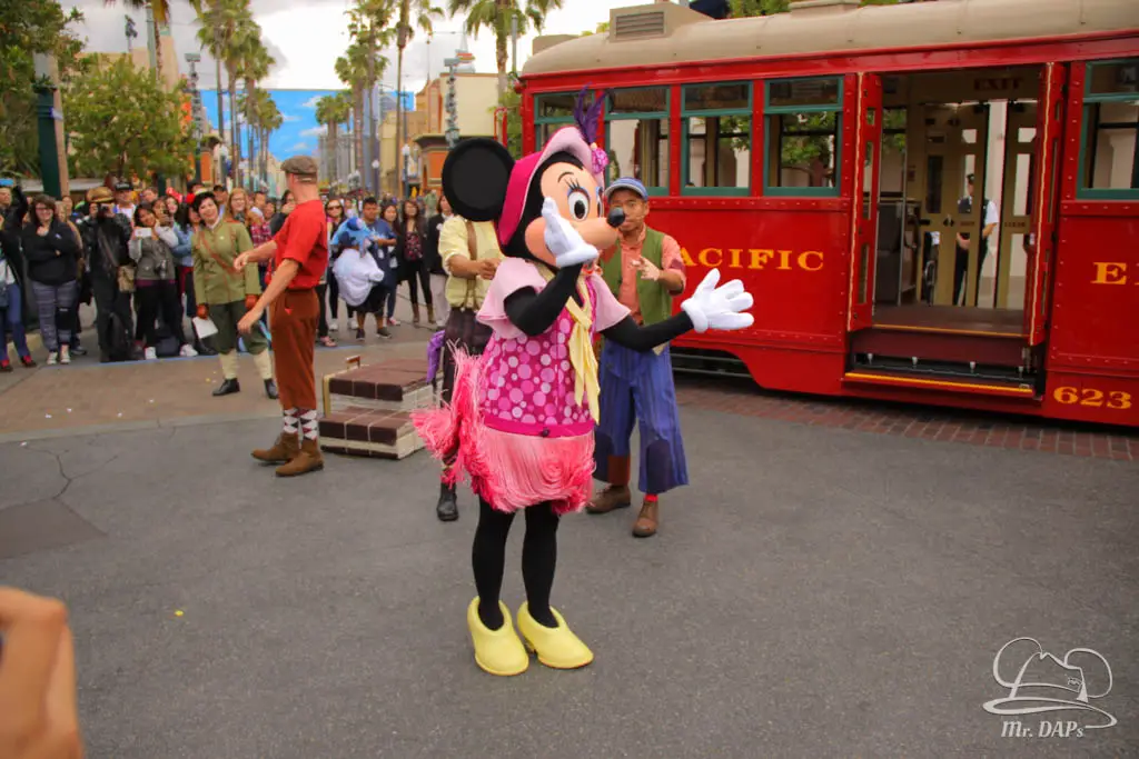 As can be seen, and heard, Minnie Mouse is destined to be a very popular addition to both Buena Vista Street and also this show. She appears during a new song If You Can Dream It, You Can Do It that elaborates Mickey’s path to Hollywood and fame in a bit more detail than the old version of this show. After the performance, Minnie Mouse was doing meet and greets throughout the day as well.