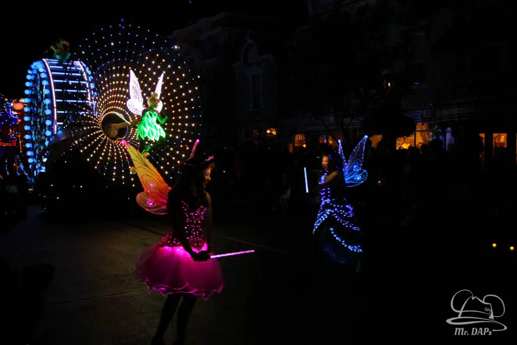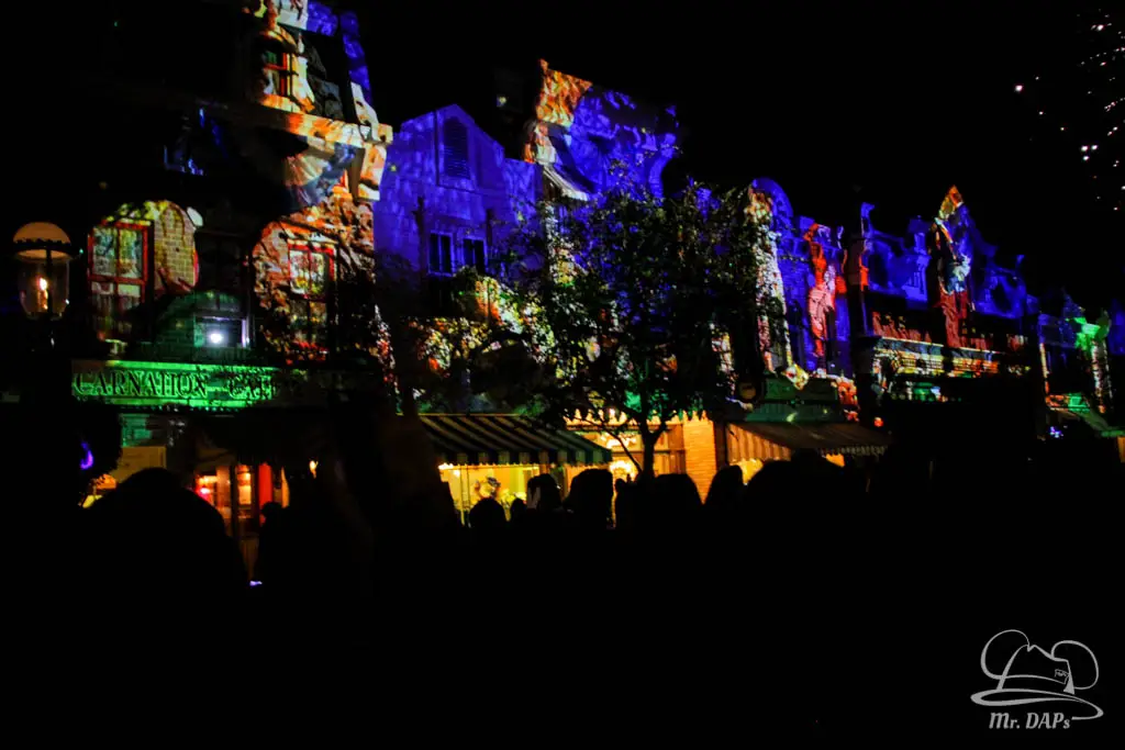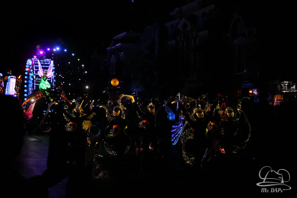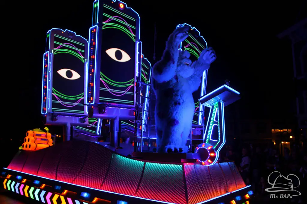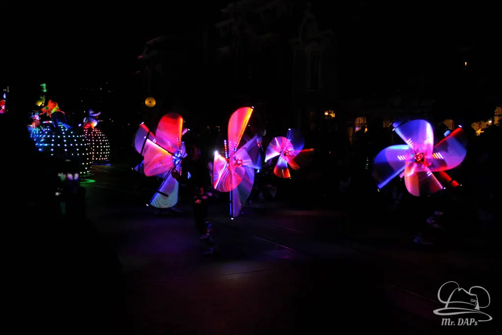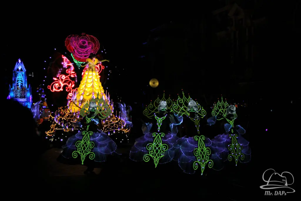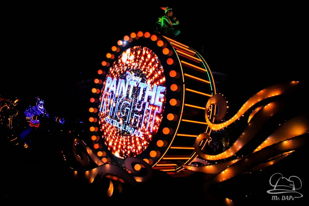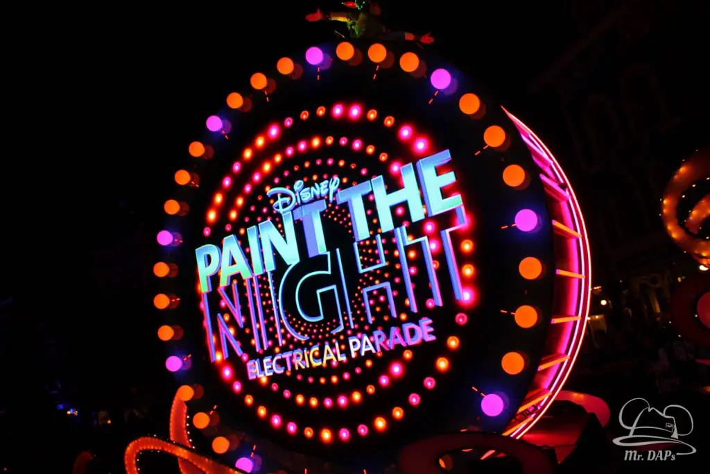 Paint the Night is a new modern day electrical parade. With literally millions of lights, it glows its way down the parade route. The music is energetic and fun with a few hints of the original Main Street Electrical Parade woven in. There are quite a few different Disney and Pixar friends in this parade and it is sure to become a family nighttime favorite. An added perk for this show is that anywhere is a good place to watch it so find a place and enjoy!