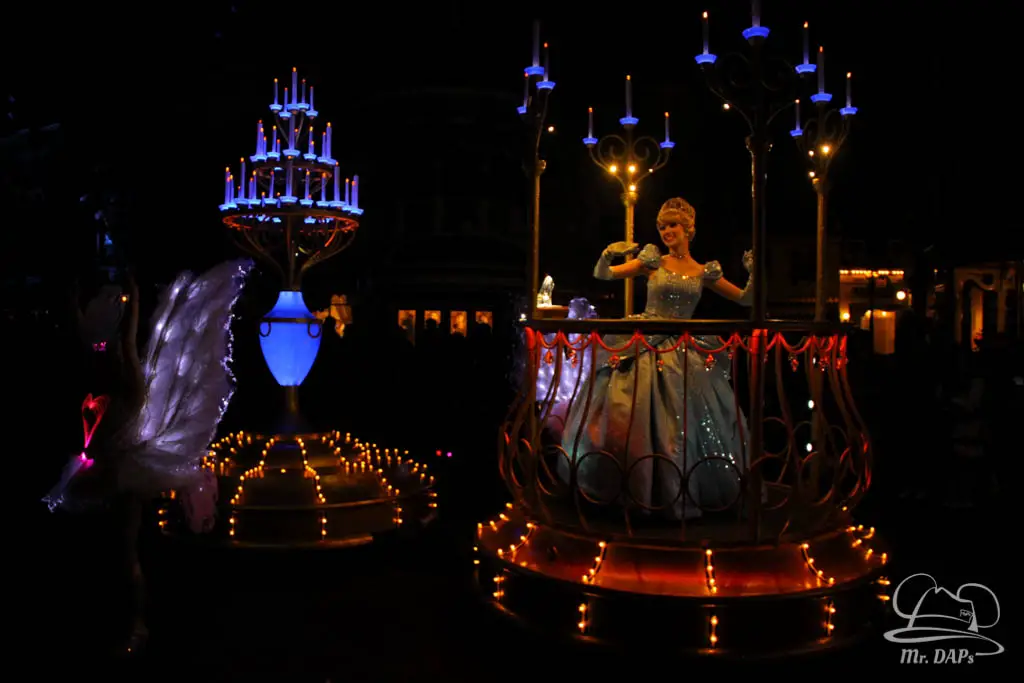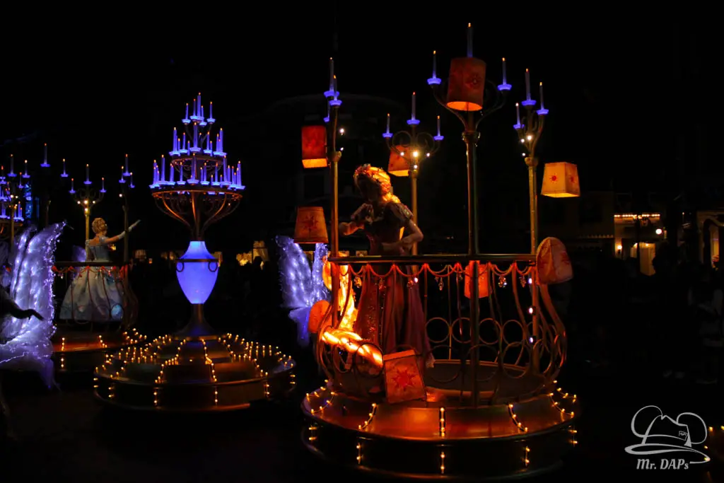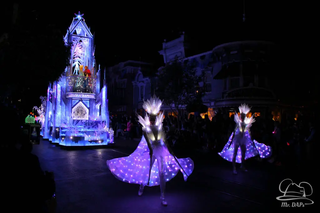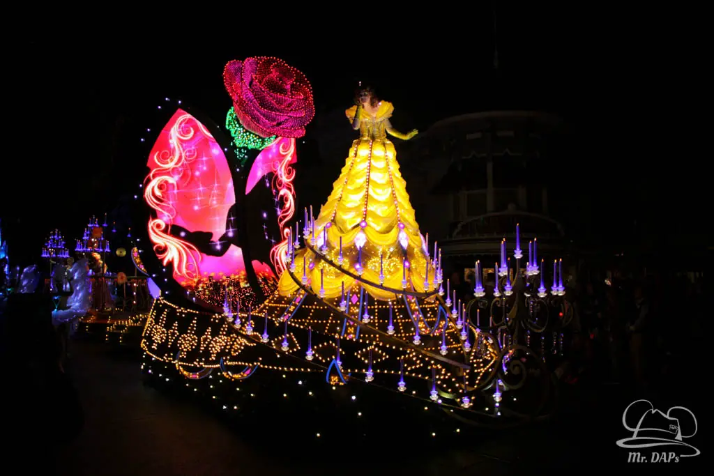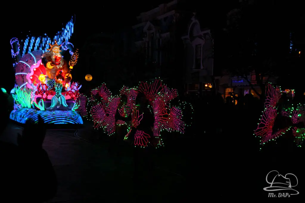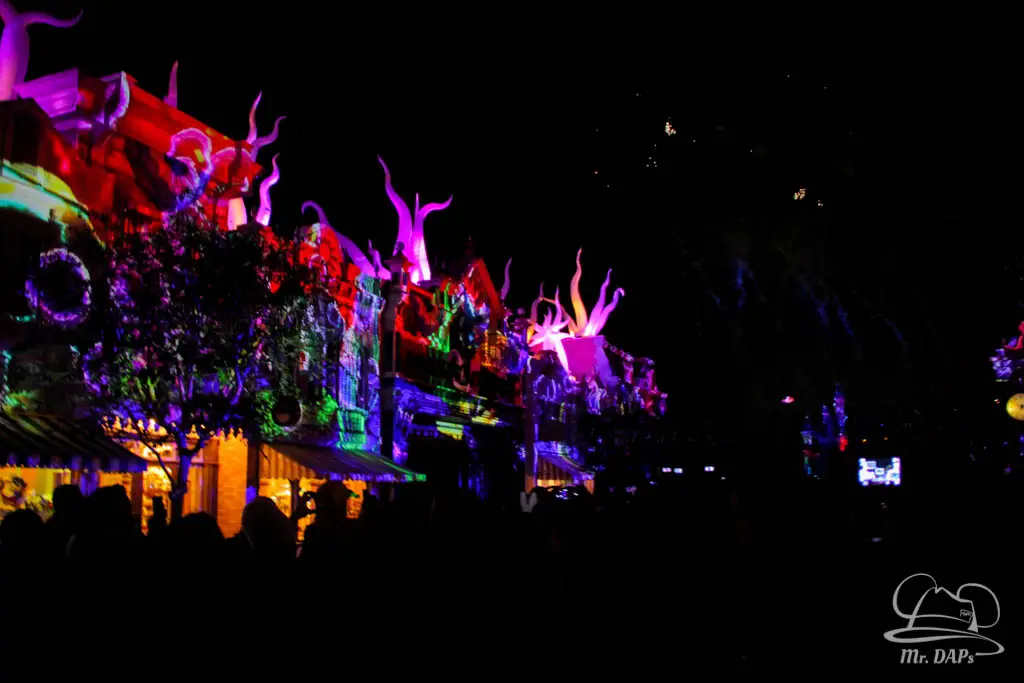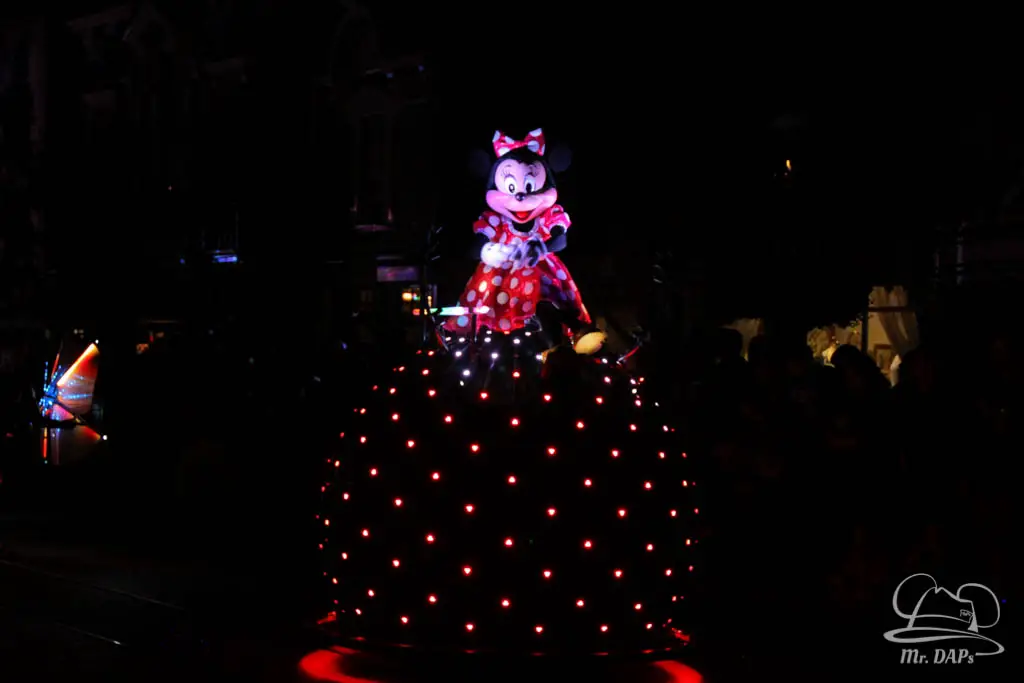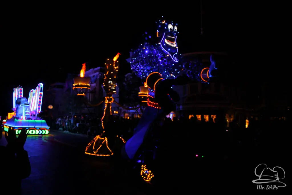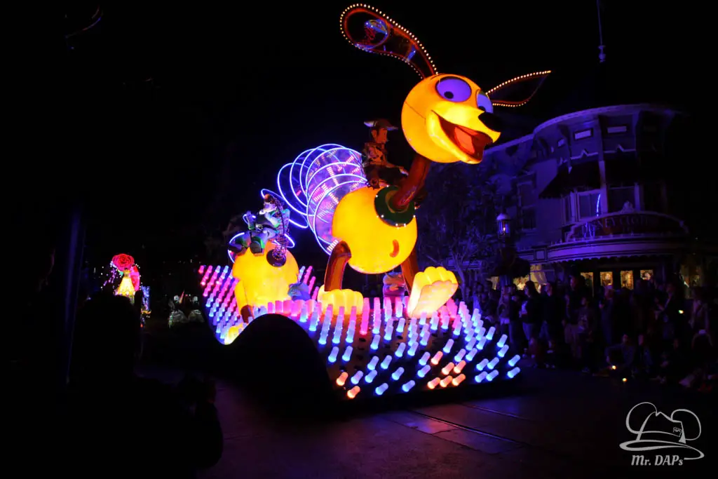 Paint the Night is a new modern day electrical parade. With literally millions of lights, it glows its way down the parade route. The music is energetic and fun with a few hints of the original Main Street Electrical Parade woven in. There are quite a few different Disney and Pixar friends in this parade and it is sure to become a family nighttime favorite. An added perk for this show is that anywhere is a good place to watch it so find a place and enjoy!