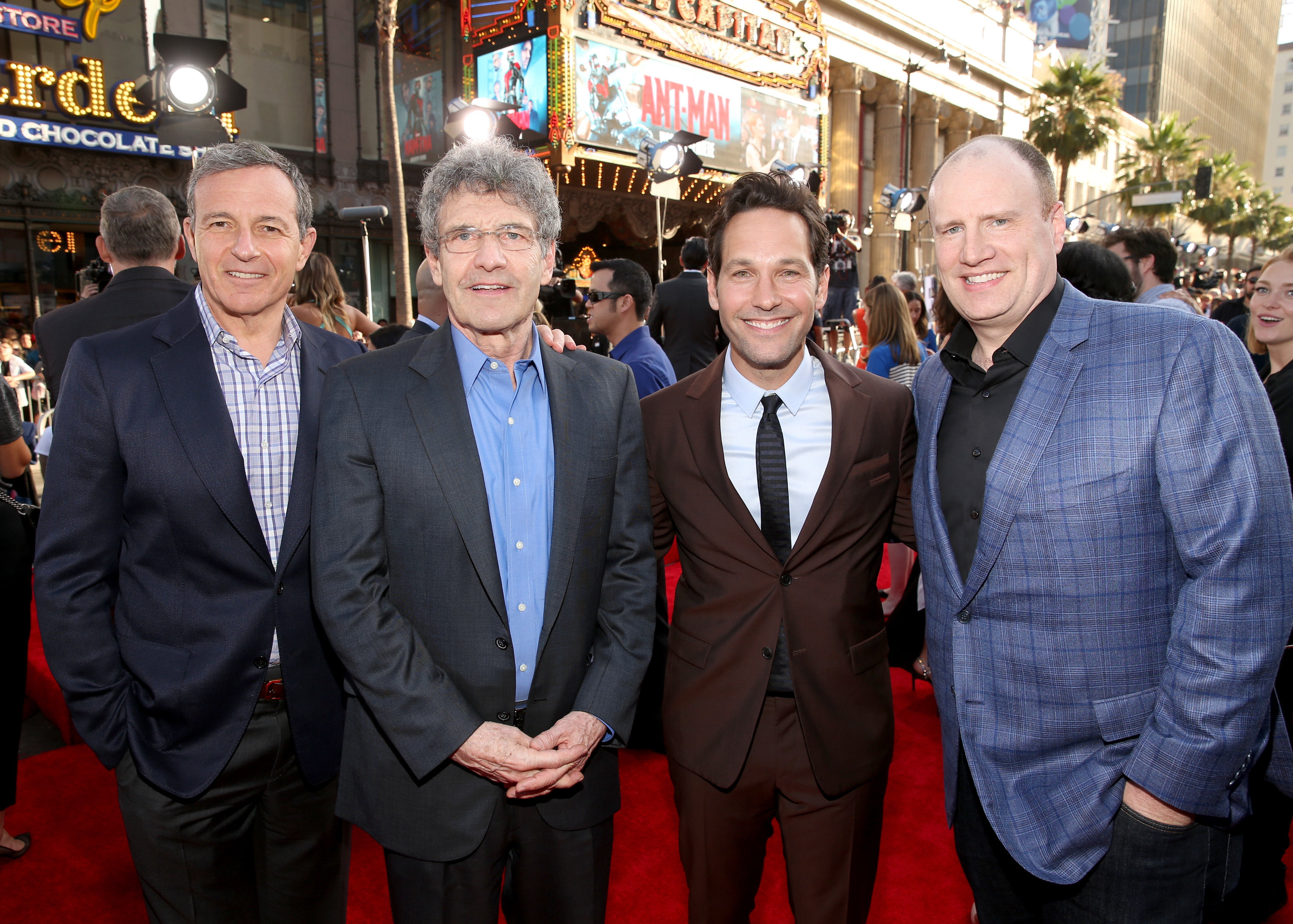LOS ANGELES, CA – JUNE 29: (L-R) The Walt Disney Company Chairman and CEO, Bob Iger, Chairman, The Walt Disney Studios, Alan Horn, actor Paul Rudd and producer Kevin Feige attend the world premiere of Marvel’s “Ant-Man” at The Dolby Theatre on June 29, 2015 in Los Angeles, California. (Photo by Jesse Grant/Getty Images for Disney) *** Local Caption *** Bob Iger;Alan Horn;Paul Rudd;Kevin Feige