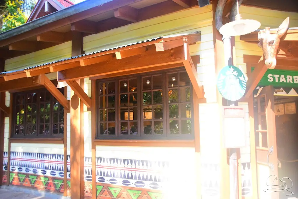 I liked the styling and ambience of the inside. It fit well with Animal Kingdom, yet had a lot of elegance to it. The outside was also tasteful as the Starbucks sign looks hand carved and doesn’t stand out too much. In all it is a worthy coffee cafe inside the park, fitting both the idea of blending with the environment and being a unique experience.