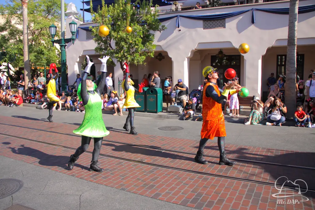 Disney-Pixar’s Inside Out is now in theaters and fans visiting the Disneyland Resort can see Joy, Fear, Anger, Disgust and Sadness in a new pre-parade in front of Pixar’s Play Parade. The new entertainment addition makes its way down the parade route just before the parade. It includes performers who were juggling both in front of and behind the main float that carries the emotions. It also has the characters sharing their various emotions as they pass by fans.