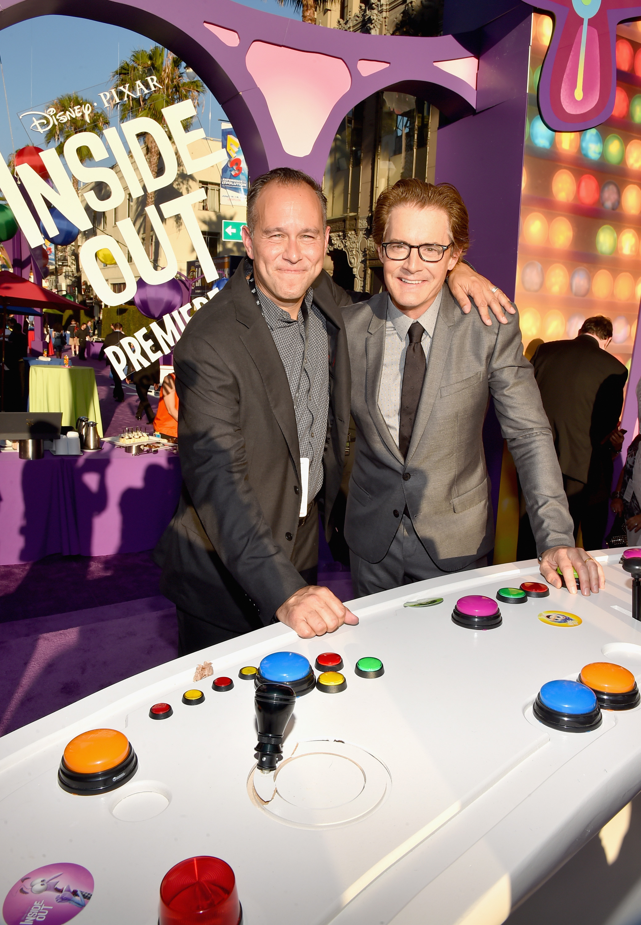 HOLLYWOOD, CA – JUNE 08: Producer Jonas Rivera (L) and actor Kyle MacLachlan attend the Los Angeles Premiere and Party for DisneyPixars INSIDE OUT at El Capitan Theatre on June 8, 2015 in Hollywood, California. (Photo by Alberto E. Rodriguez/Getty Images for Disney) *** Local Caption *** Jonas Rivera; Kyle MacLachlan