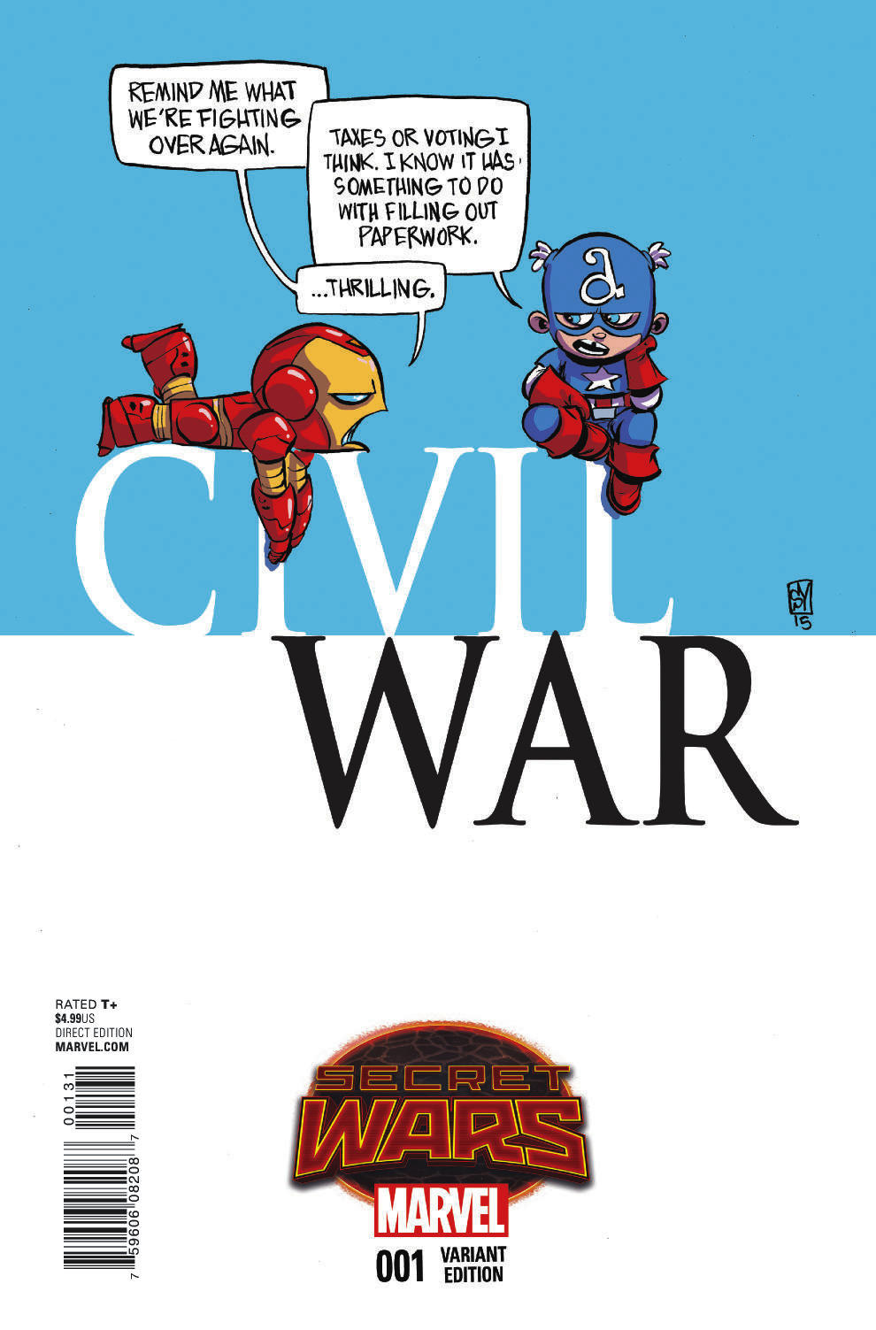 New York, NY—June 11th, 2015— The war never ended. And the deadly conflict escalates to new heights this July! Today, Marvel is pleased to present your new look at CIVIL WAR #1 – from chart-topping creators Charles Soule (Death of Wolverine, Inhuman) and Leinil Yu (Avengers)! Hero fights hero in the Warzone – and a nation stands divided. It has been six years since the fighting began. The forces of the Blue square off against the Iron, all at the command of their leaders – General Steve Rogers and President Tony Stark. When peace has failed, both sides will attempt to end the war once and for all! What is the top-secret Project Bellcurve and does it really hold the key to ending the war in one swift stroke? What damning data could undo President Stark’s administration from within? And worst of all, what unseen enemies seek to exploit the Superhuman Civil War for their own gains? Find out as one of the biggest stories in Marvel history is reborn on Battleworld in CIVIL WAR #1! Whose side are you on?
