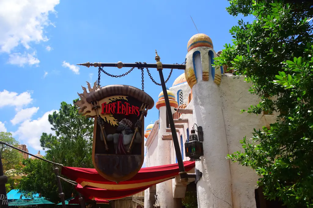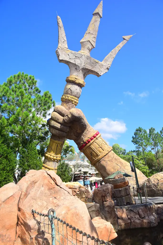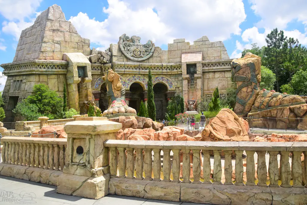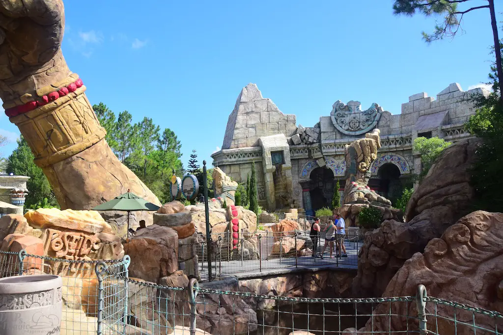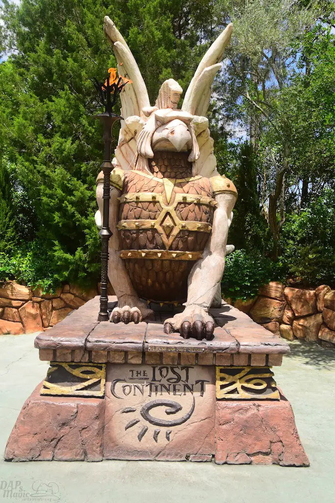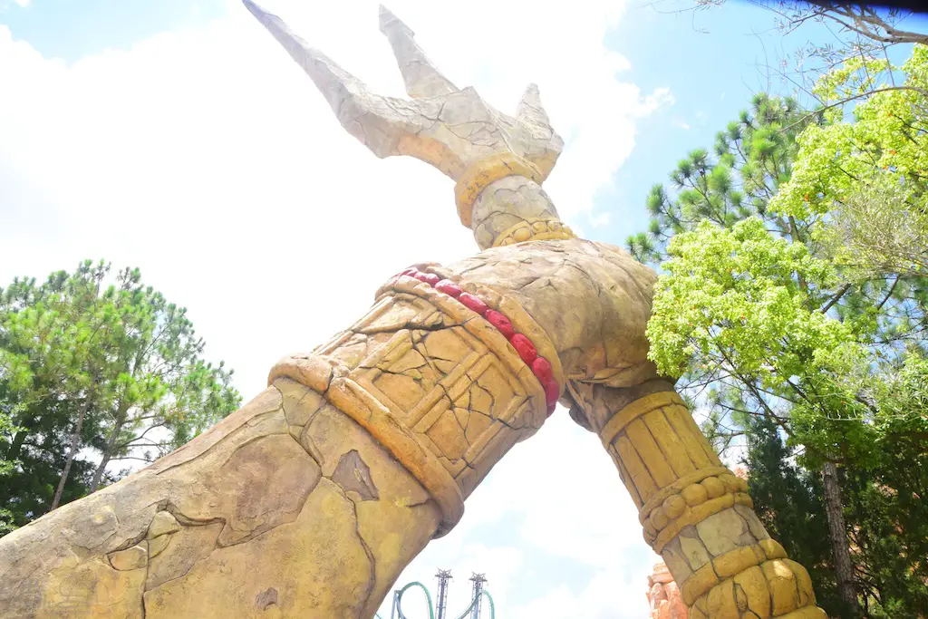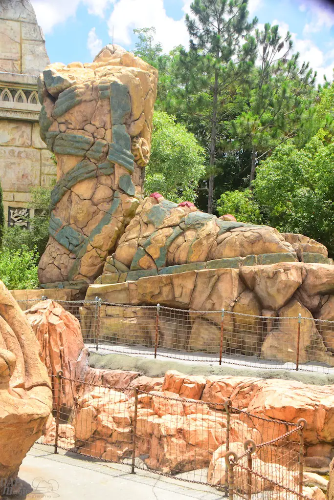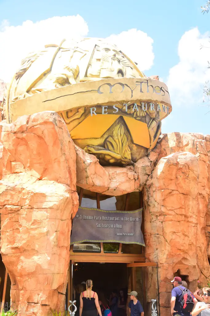 Right outside of Seuss Landing is Lost Continent, which had been a bit bigger when the park first started. Wizarding World absorbed the Medieval area of the island. Still, it’s quite the area. Upon entering from Seuss Landing, guests are greeted by a huge carved out mountain with a waterfall. Inside is the highly praised restaurant, Mythos. Across from here is Poseidon’s Fury, a walk through show. After all these is the 8th Voyage of Sinbad show with the Mystical Fountain outside of it. I don’t know that I’d call the Mystical Fountain an attraction as much as an interaction. It had a way to talk to guests. Sinbad was the one thing I did not experience here.