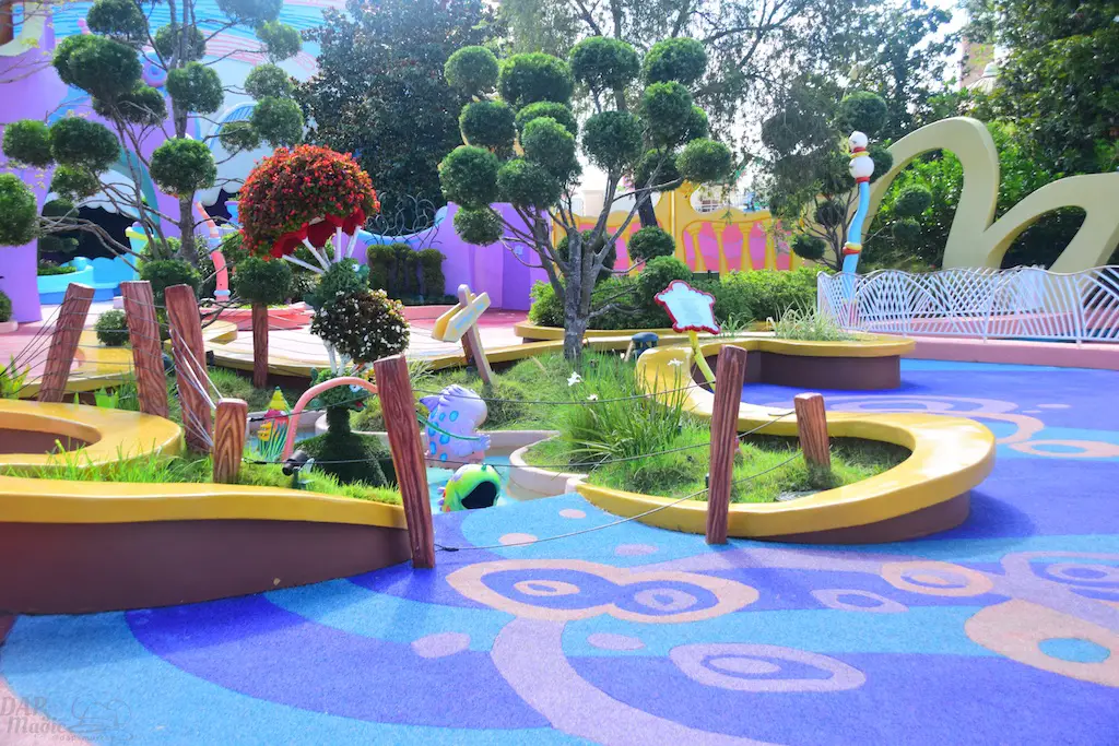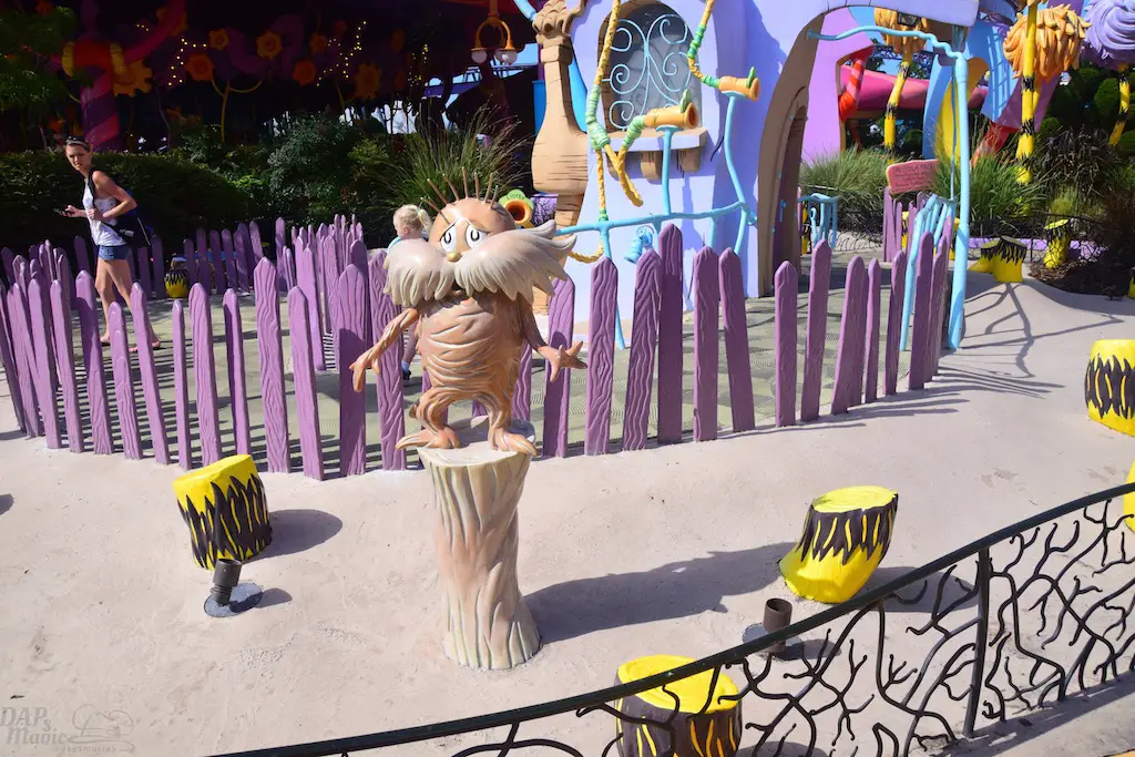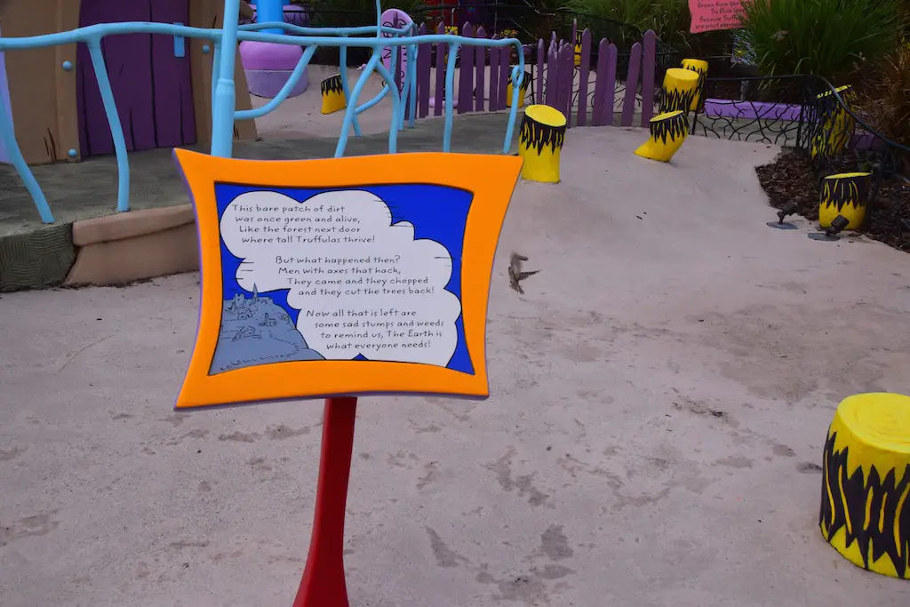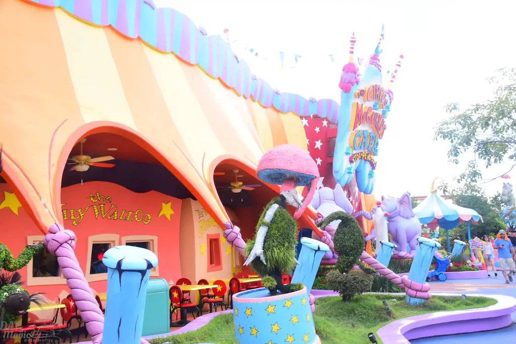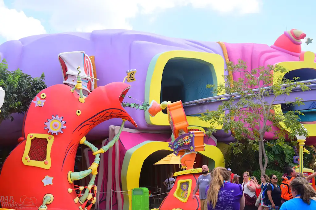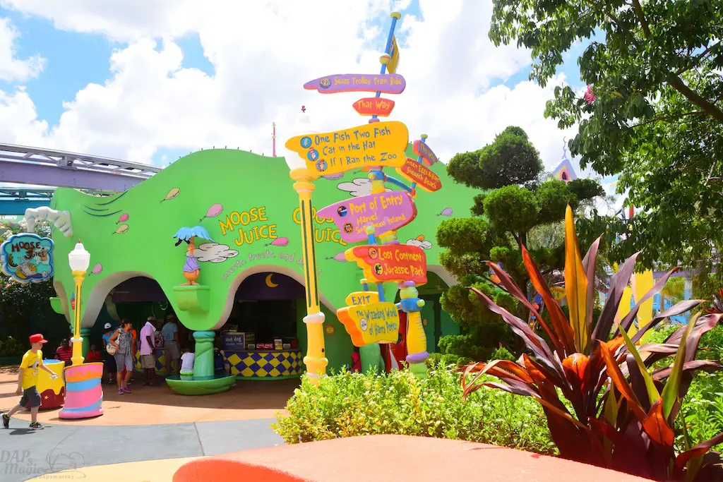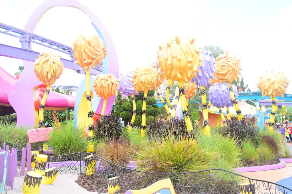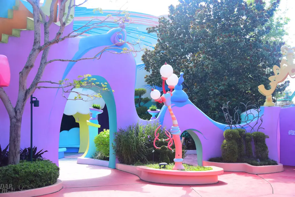 Seuss Landing made use of the almost poetic rhyming of the Seuss books. Signs and even safety spiels from employees used the rhyming scheme. In all, the island was truly Seuss come to life. It had a colorful palette, great characters, and fun rides to enjoy.