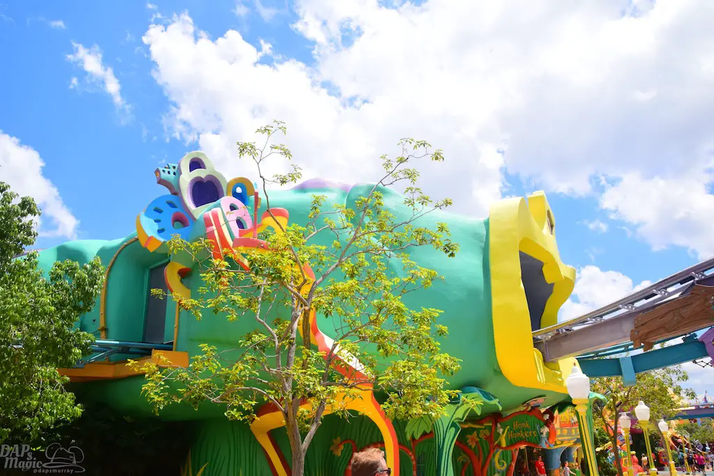 The Seuss Trolley was an overview attraction that toured the island and even gave some views of other islands. Narration both told the story of the Sneetches and what was going on in each part of the island. The ride was smooth and slow, a great family ride. A few animations gave the trolley character, but overall the real fun thing about it was being above the whole area looking at everything.
