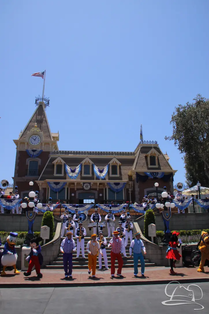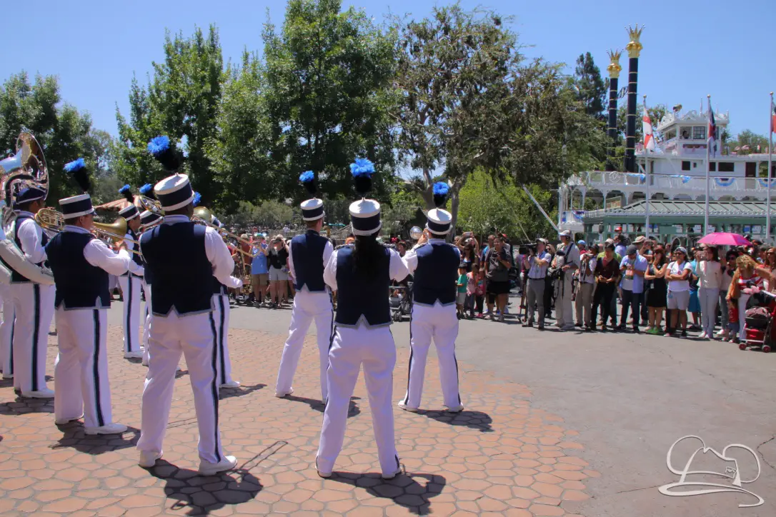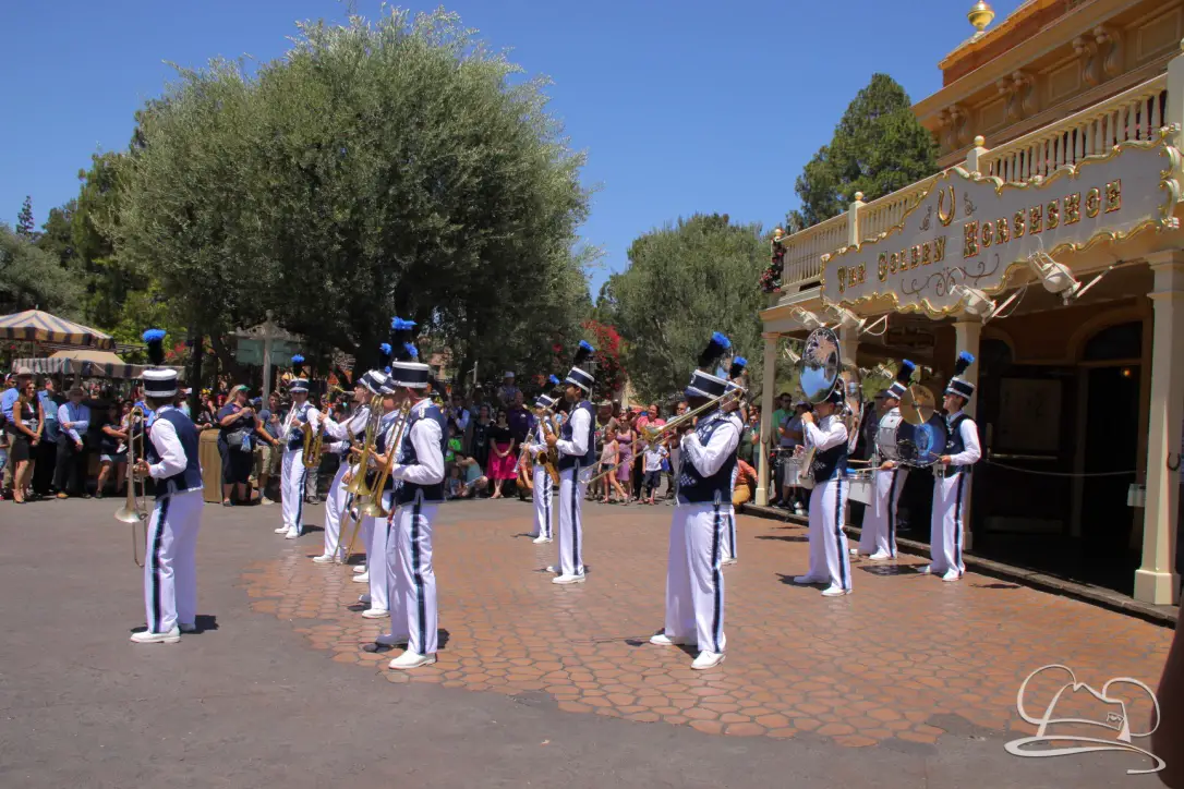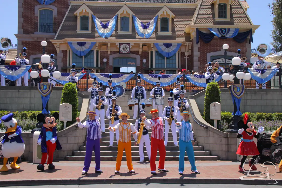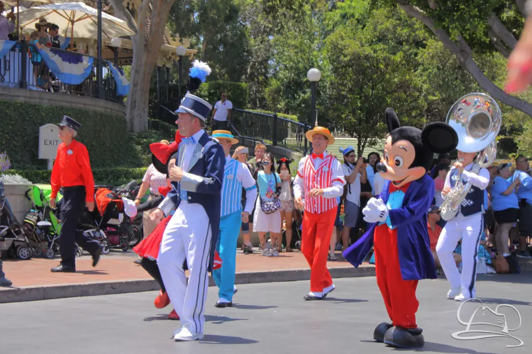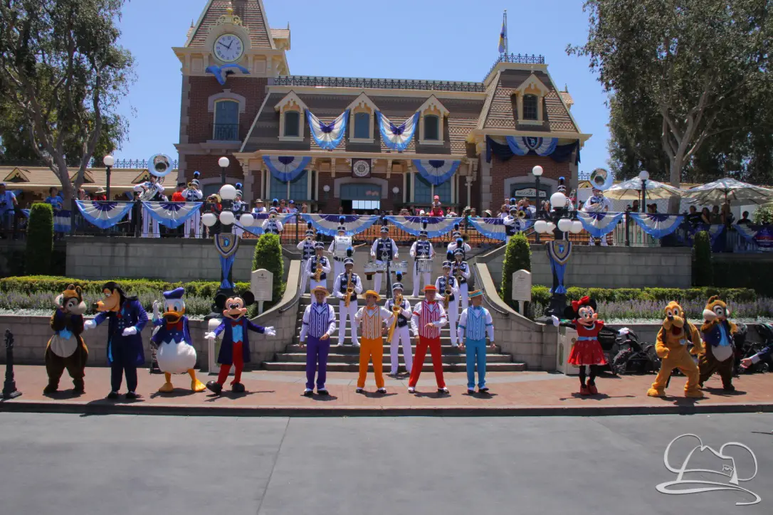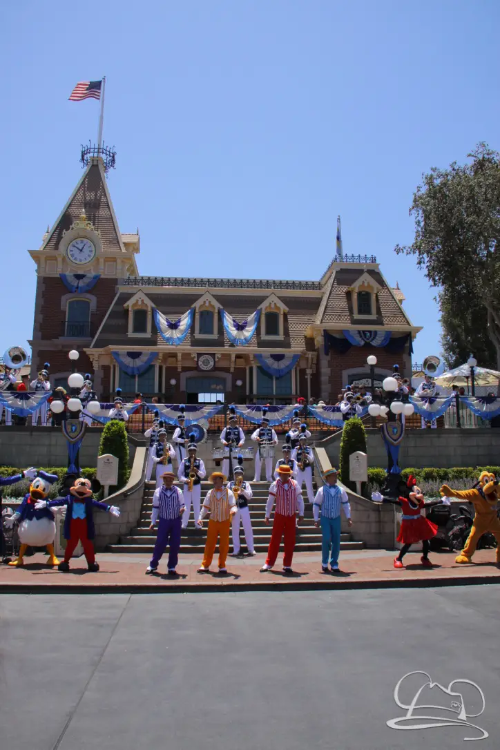 Disneyland’s 60th Anniversary Ceremony wasn’t the only exciting thing happening on July 17, 2015. The Disneyland band showcased their new look, new music, and new choreography! They were warmly received as they marched around Main Street and Frontierland. A highlight was definitely the castle set where they were joined by Mickey and the gang and then as they made their way down Main Street, USA the Dapper Dans also joined in on the fun!