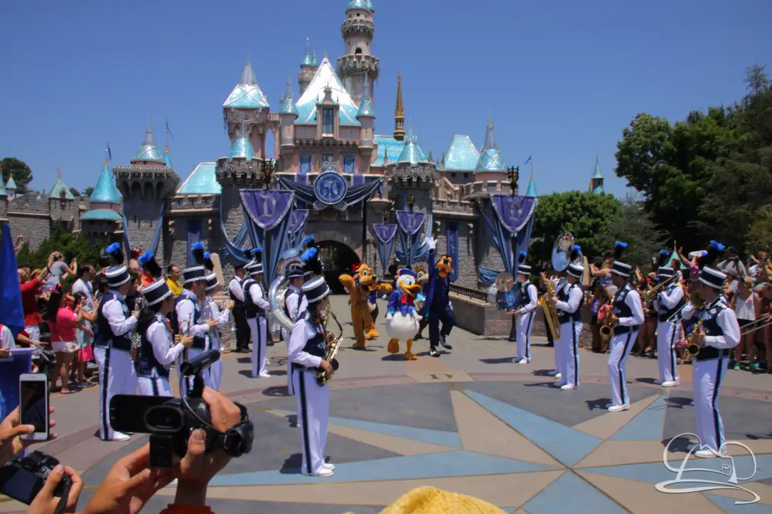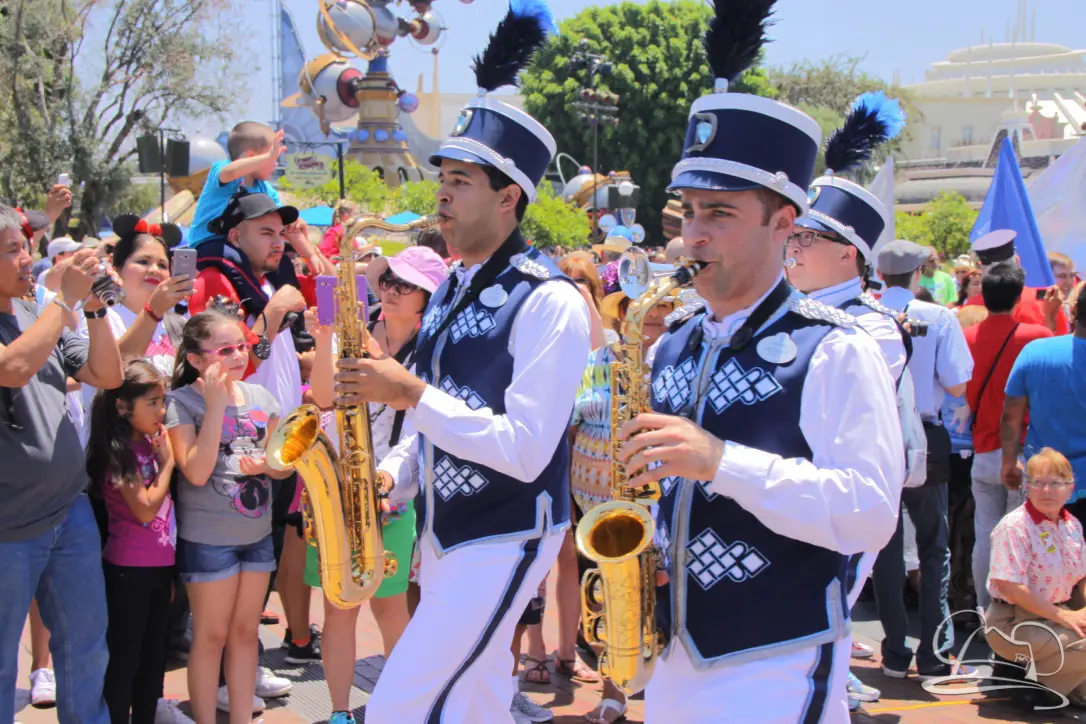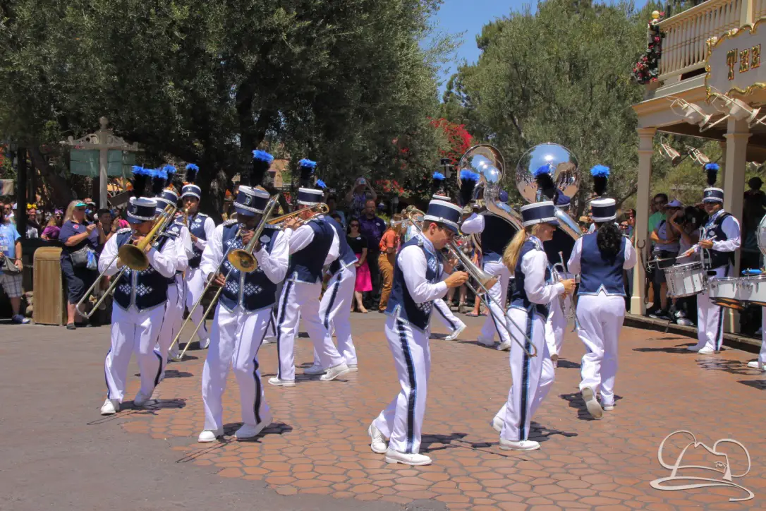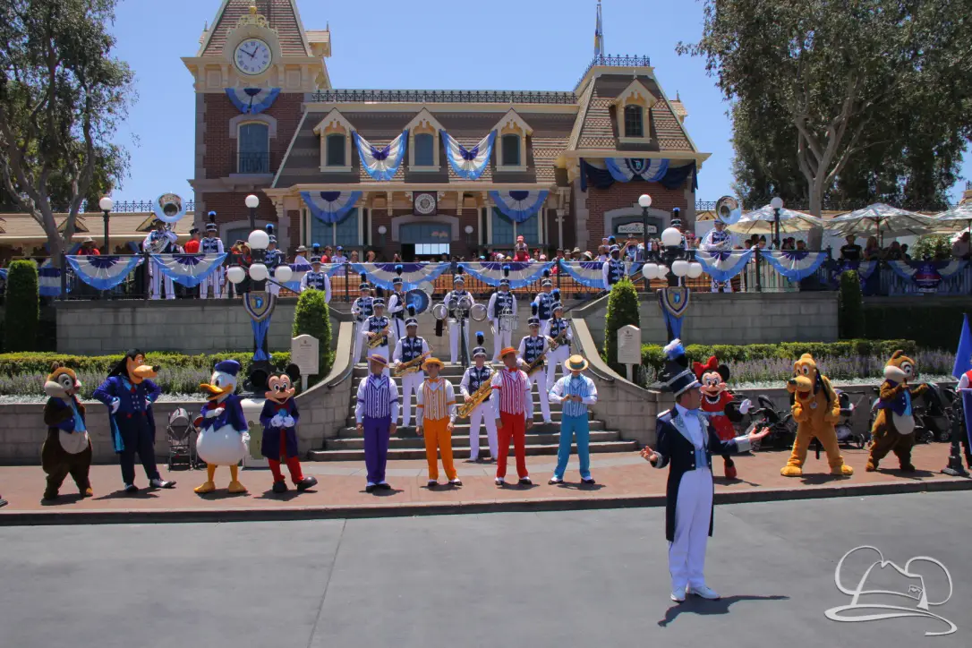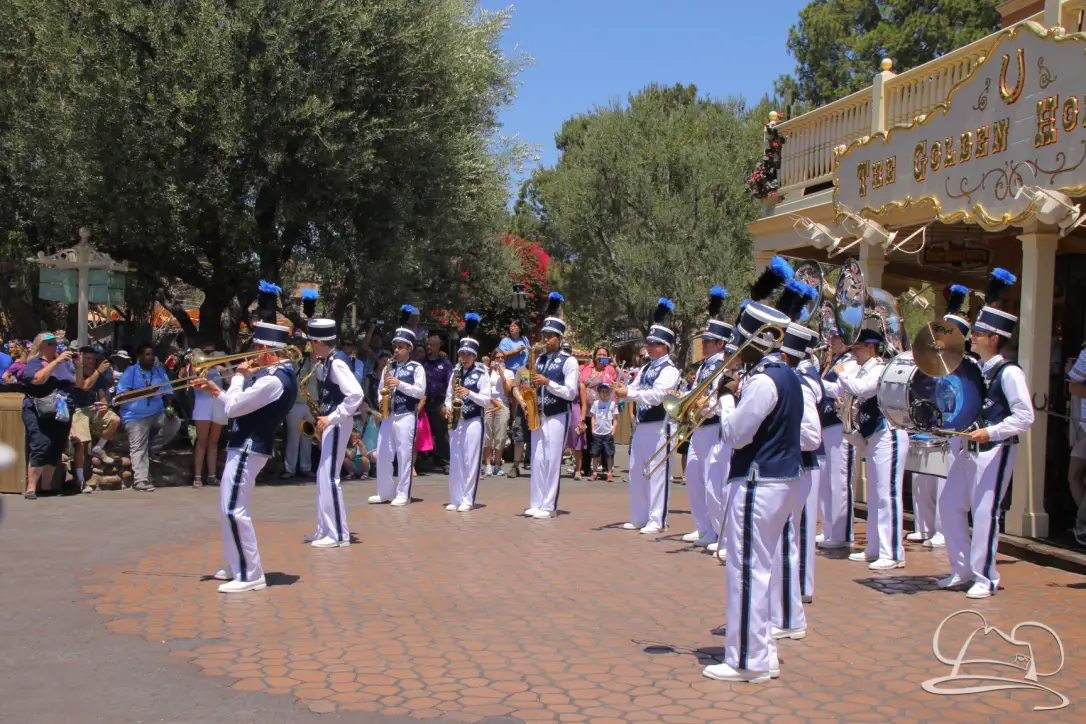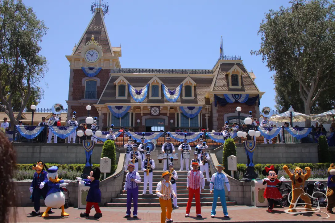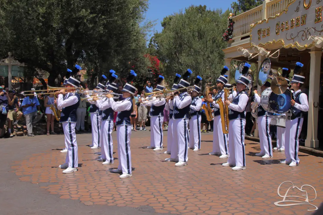 Disneyland’s 60th Anniversary Ceremony wasn’t the only exciting thing happening on July 17, 2015. The Disneyland band showcased their new look, new music, and new choreography! They were warmly received as they marched around Main Street and Frontierland. A highlight was definitely the castle set where they were joined by Mickey and the gang and then as they made their way down Main Street, USA the Dapper Dans also joined in on the fun!