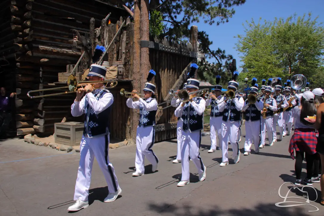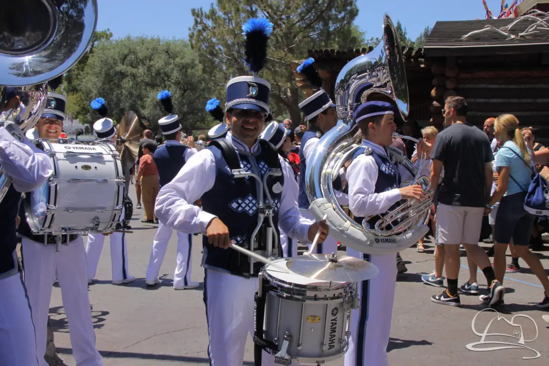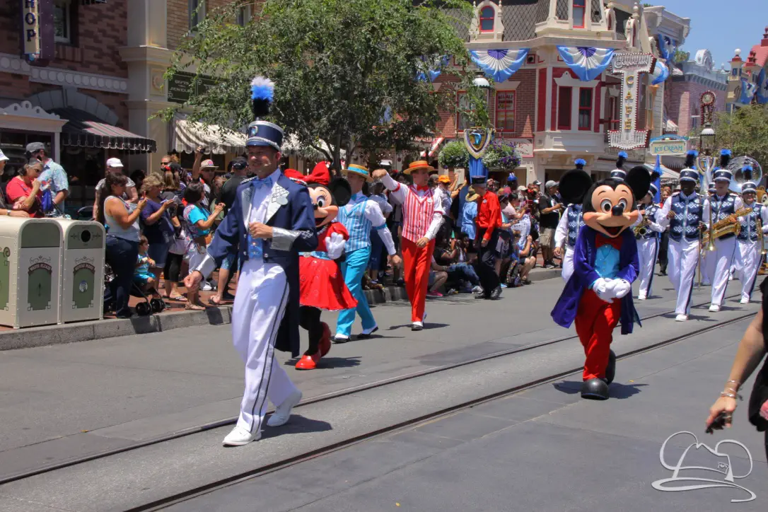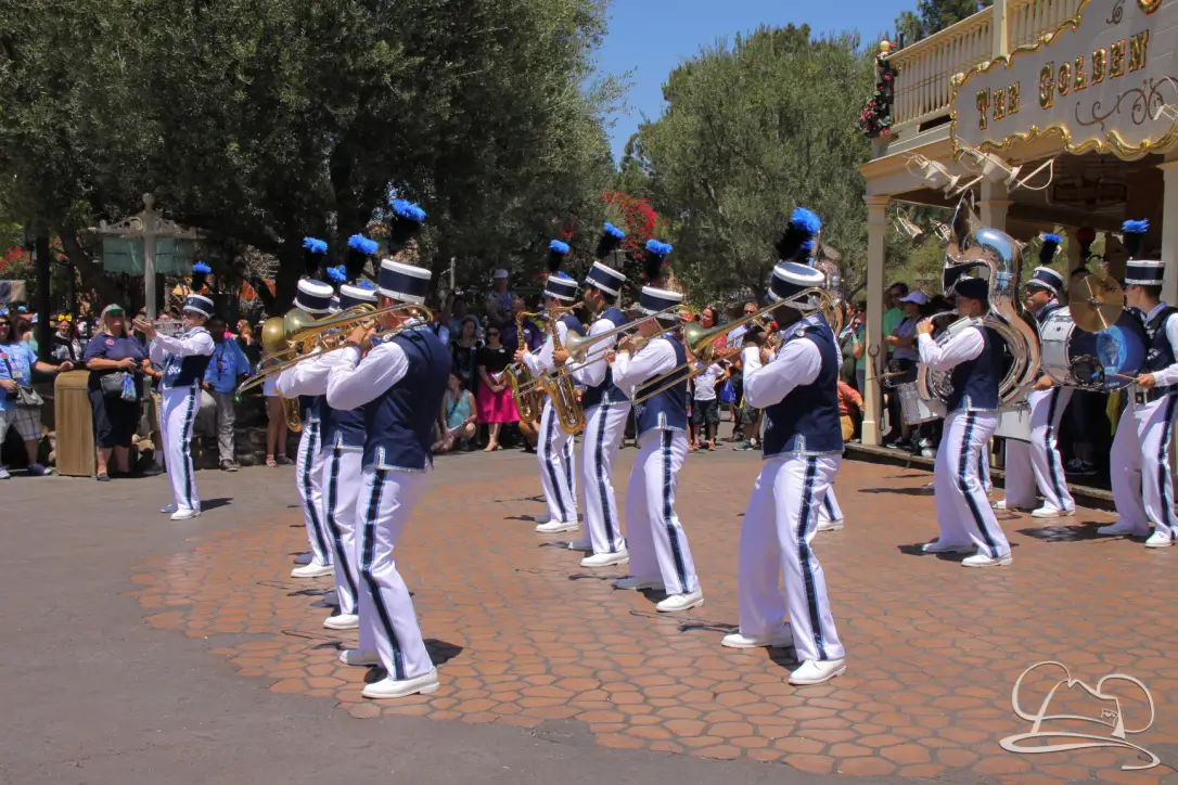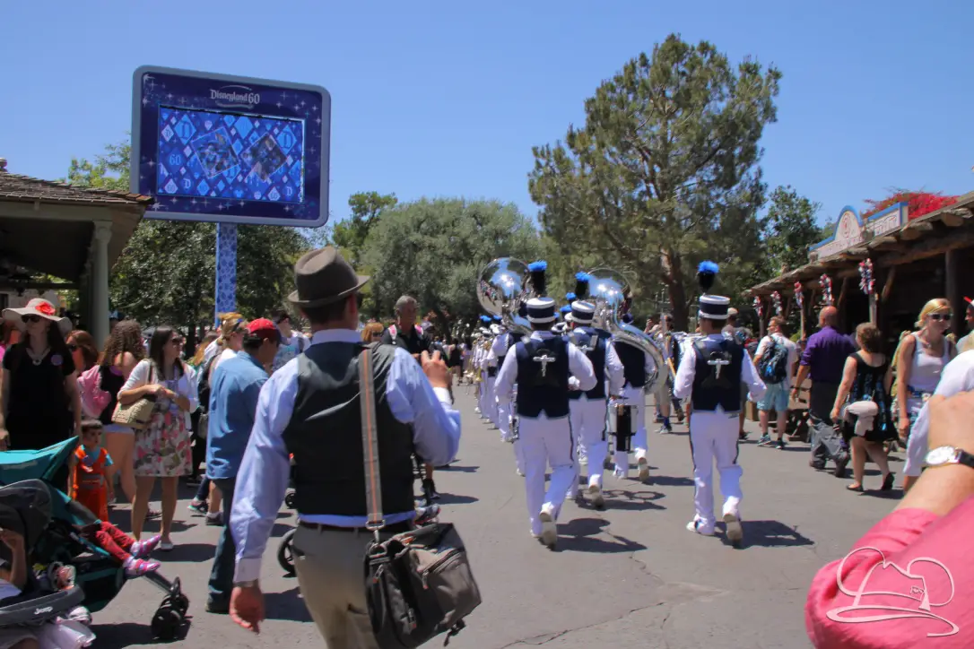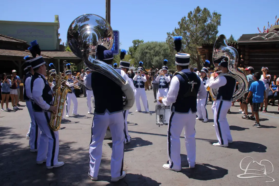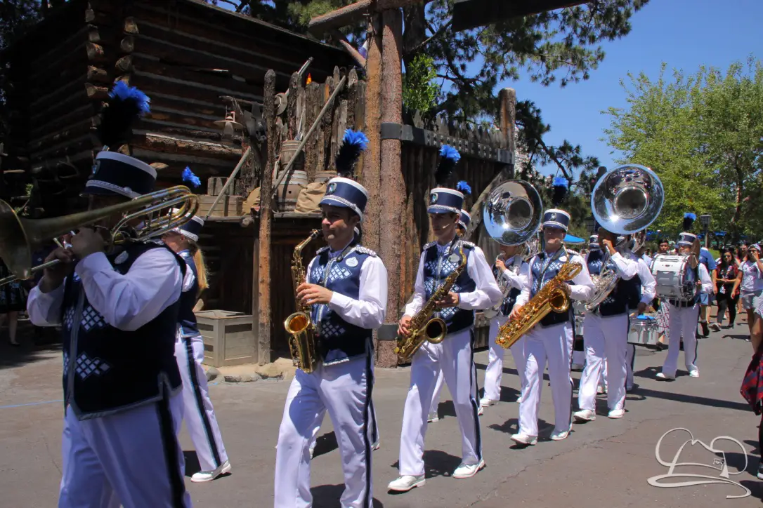 Disneyland’s 60th Anniversary Ceremony wasn’t the only exciting thing happening on July 17, 2015. The Disneyland band showcased their new look, new music, and new choreography! They were warmly received as they marched around Main Street and Frontierland. A highlight was definitely the castle set where they were joined by Mickey and the gang and then as they made their way down Main Street, USA the Dapper Dans also joined in on the fun!
