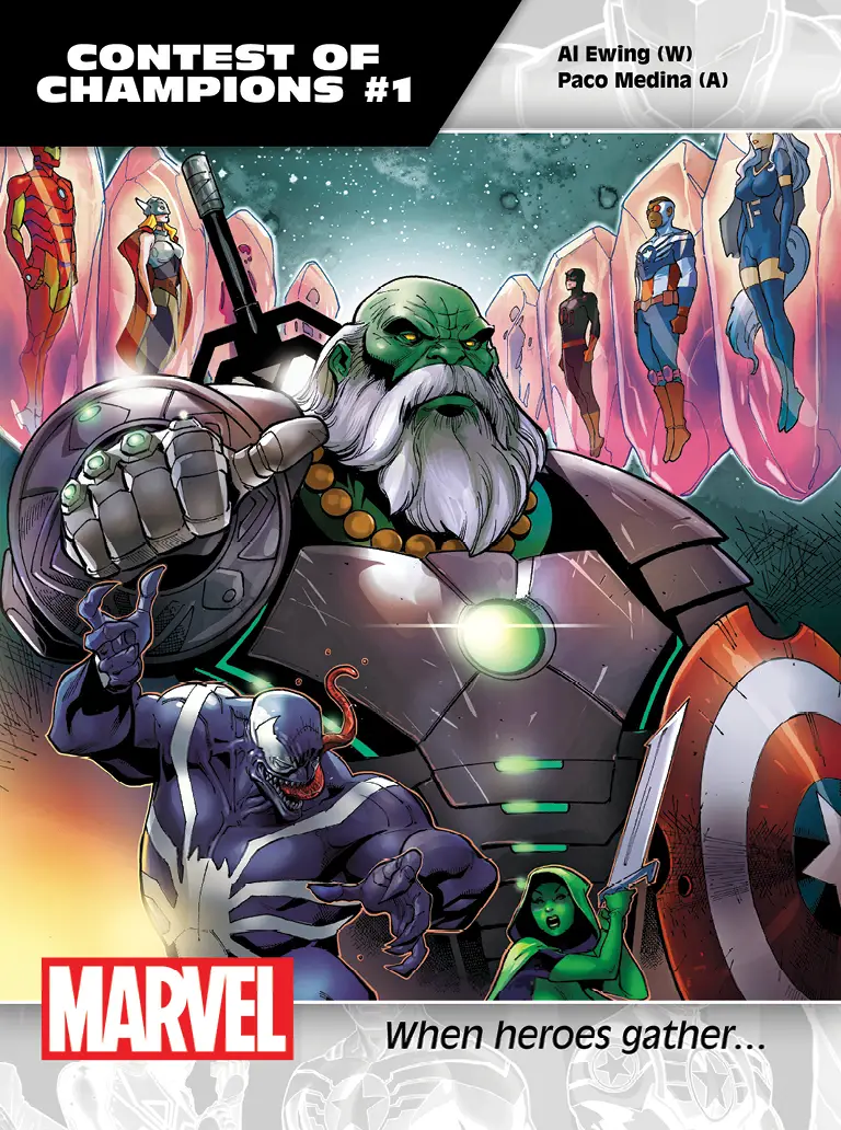 New York, NY—June 30th, 2015— After the end of Secret Wars and the rebirth of the Marvel Universe, the Battlerealm is created: a broken section of space-time that’s filled with the shattered remnants of Battleworld. Here, a grand game is played in a cosmic arena where heroes must fight for their very survival and existence. This fall, no one in the Marvel Universe is safe! This is the CONTEST OF CHAMPIONS!
