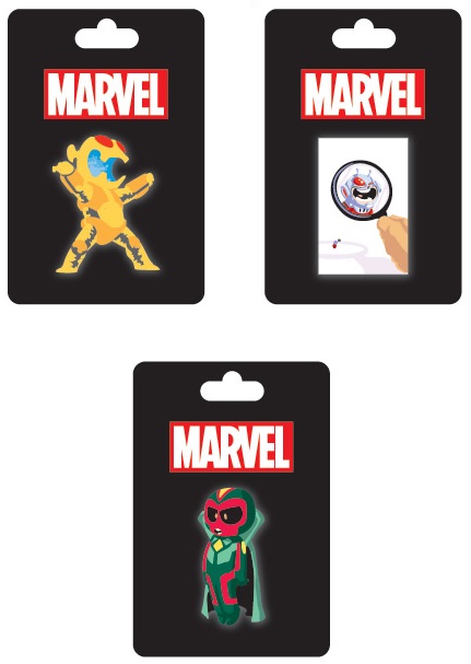 Marvel Mystery Pin 2-Pack: Contains two of the following mystery pins. Which ones will you get?: Hulk & Bruce Banner, Captain America, Black Bolt, Black Panther, Iron Patriot, Iron Fist, Loki and Captain Marvel. $12.50 per 2-pack
