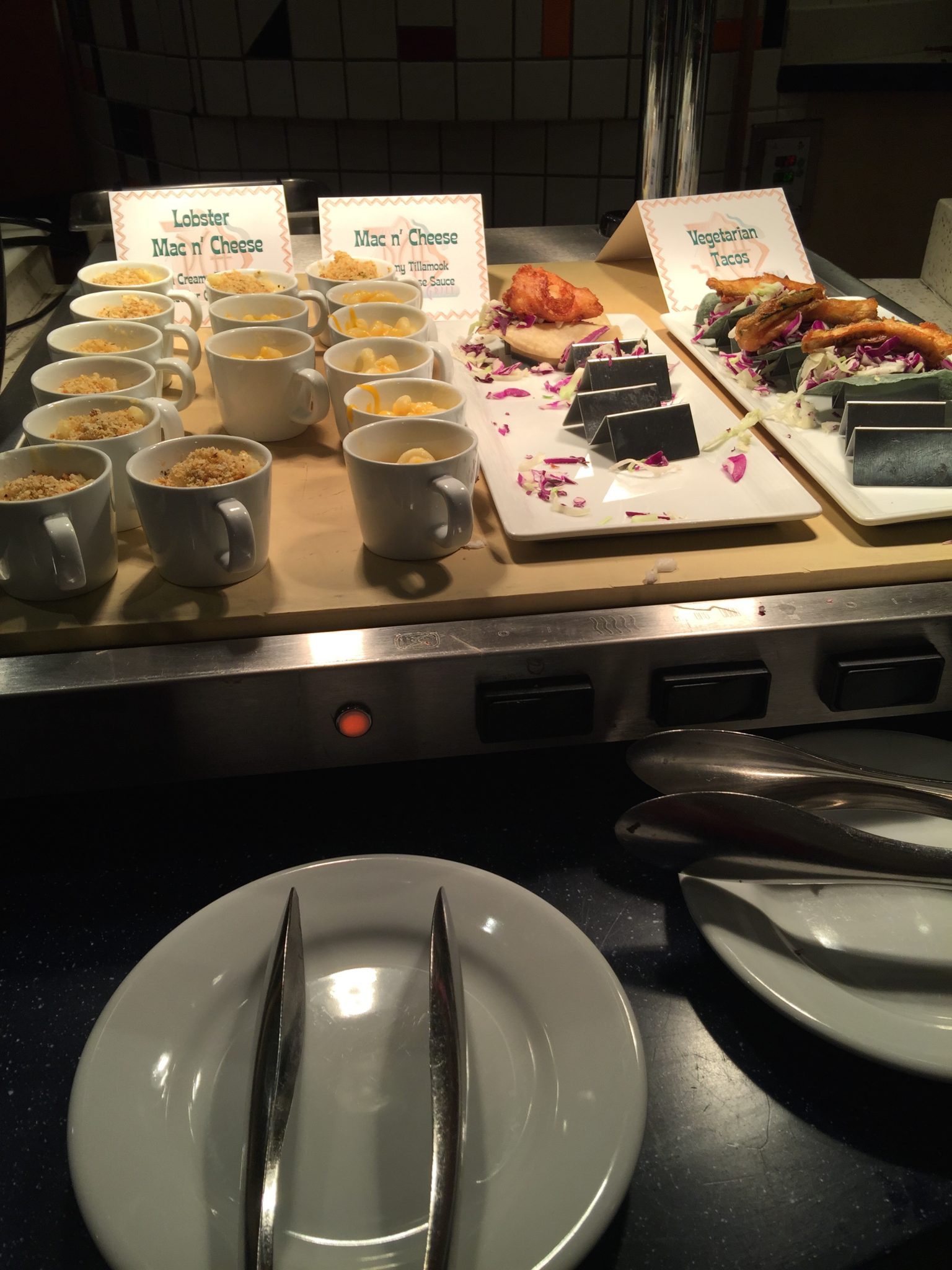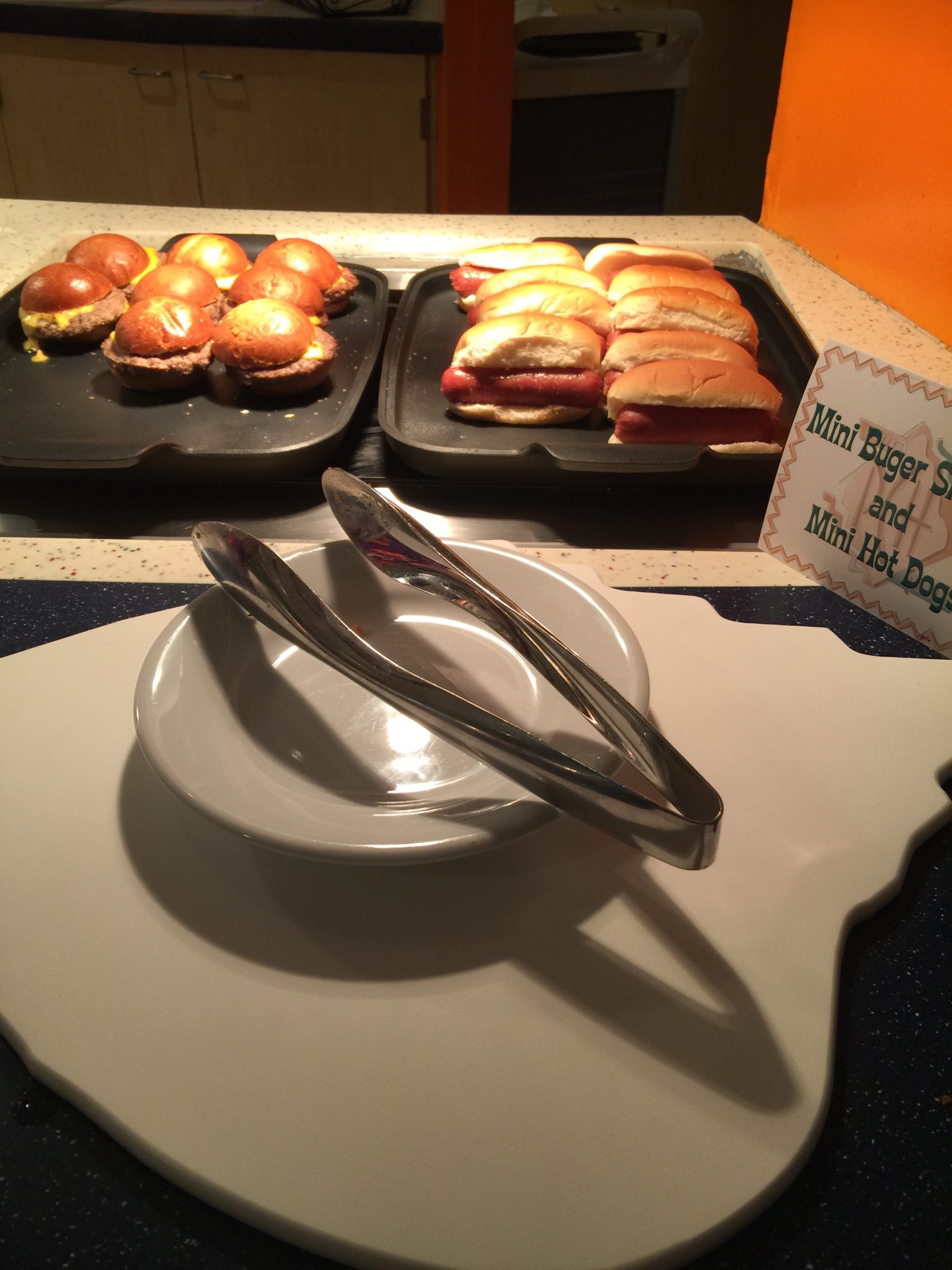 Add kid favorites like a mac ‘n’ cheese bar, fried chicken, seasonal veggies, whole-roasted salmon, smashed potatoes, cheeseburger sliders and mini hot dogs.