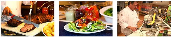 Start with a carving station with dry-rubbed smoked tri-tip beef and baby back ribs, or the seafood sauté station with shrimp Alfredo with cavatappi pasta, or littleneck clams, chorizo and potatoes, cooked in broth with a roasted garlic-herb crostini. Then there’s wood-fired pizzas, mini taco station (beer-battered sustainable fish or veggie tacos), spice-rubbed pork shoulder, and sides such a roasted potato salad, heirloom tomato-mozzarella salad, deviled eggs and a build-your-own salad bar.