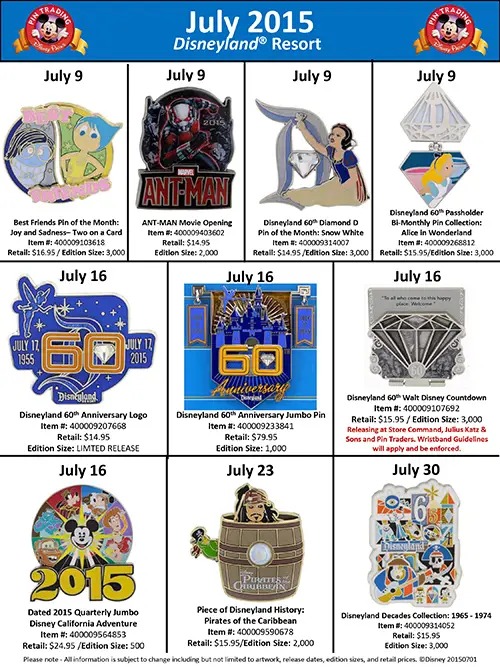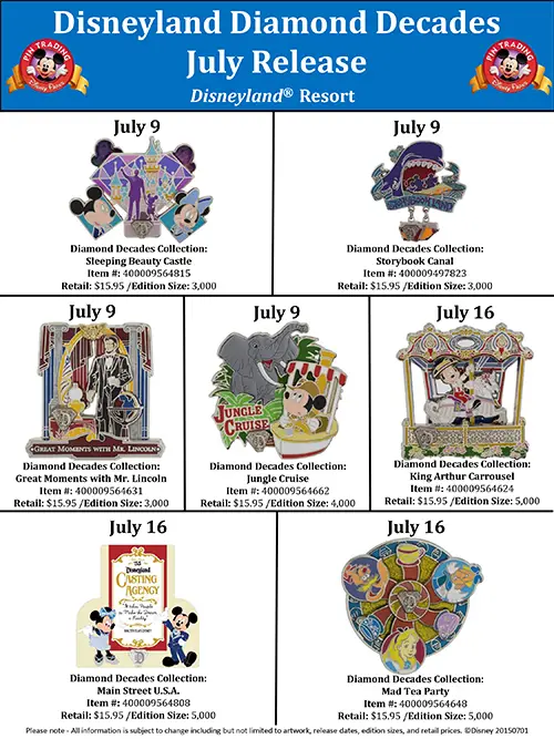 Alrighty Disney pin trading folks! The month of July is a big one. The Disneyland Resort is set to celebrate the 60th anniversary. In order to commemorate this great milestone, new pins are to be released in the next few weeks.
