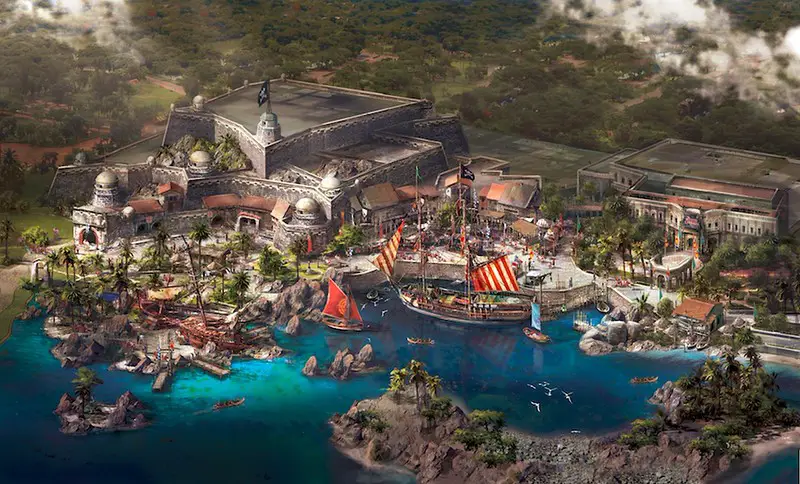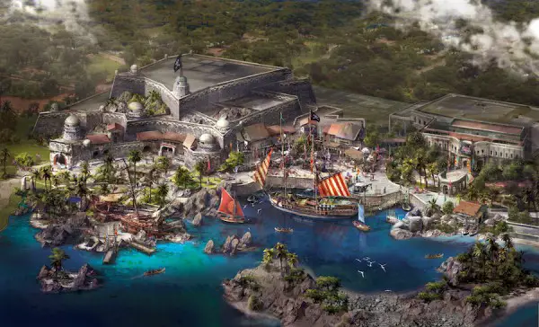 Treasure Cove will be the first pirate-themed land in a Disney park, a place to join the adventures of Captain Jack Sparrow and Davy Jones. As guests explore this pirate world, they will enter Pirates of the Caribbean – Battle for the Sunken Treasure, an attraction that transforms a boat ride into a journey with cutting-edge innovations in robotics, animation, set design and multimedia. Guests will board a pirate ship, paddle through the scenic cove on Explorer Canoes and dine at Barbossa’s Bounty.