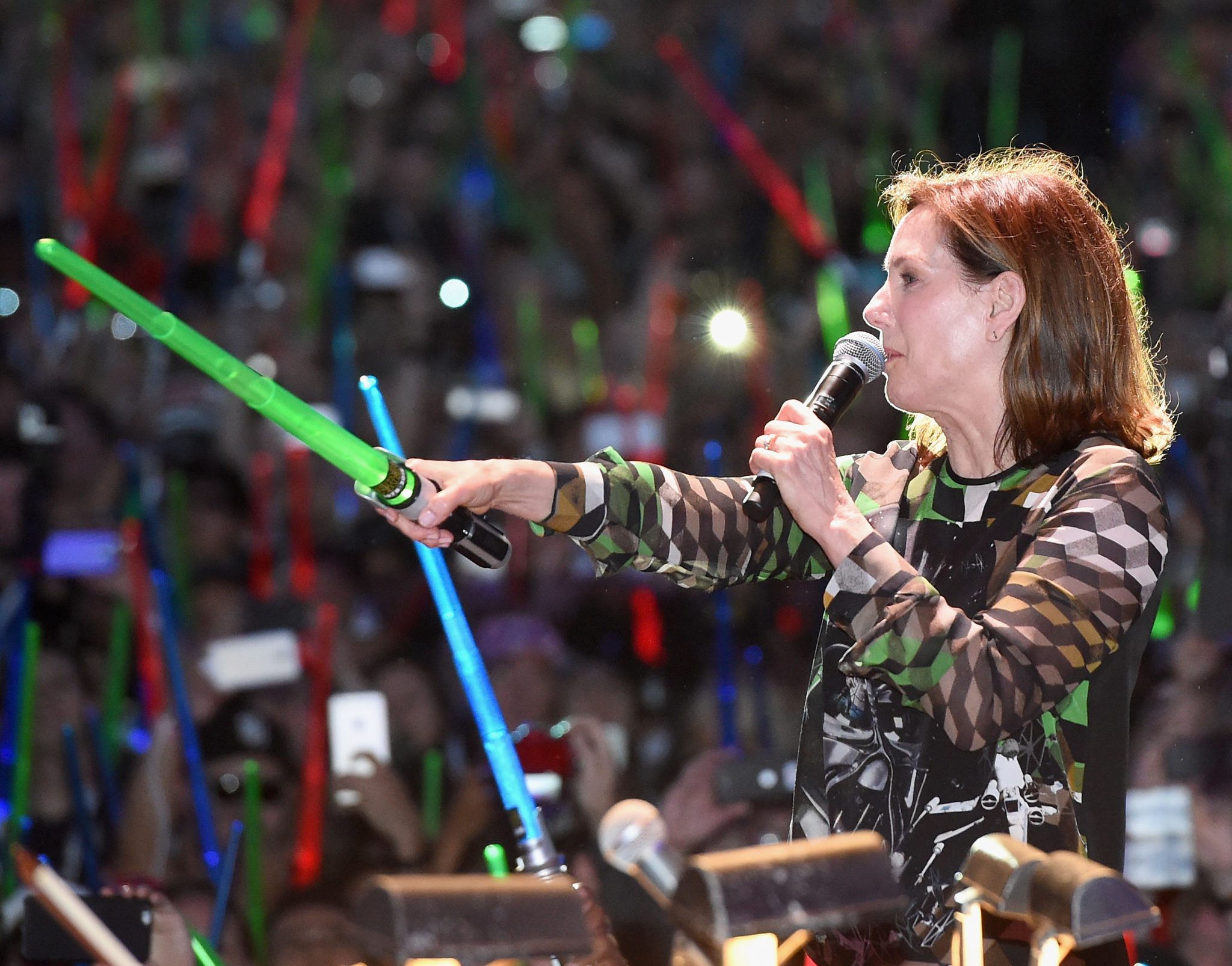 SAN DIEGO, CA – JULY 10: Producer Kathleen Kennedy and more than 6000 fans enjoyed a surprise “Star Wars” Fan Concert performed by the San Diego Symphony, featuring the classic “Star Wars” music of composer John Williams, at the Embarcadero Marina Park South on July 10, 2015 in San Diego, California. (Photo by Michael Buckner/Getty Images for Disney) *** Local Caption *** Kathleen Kennedy