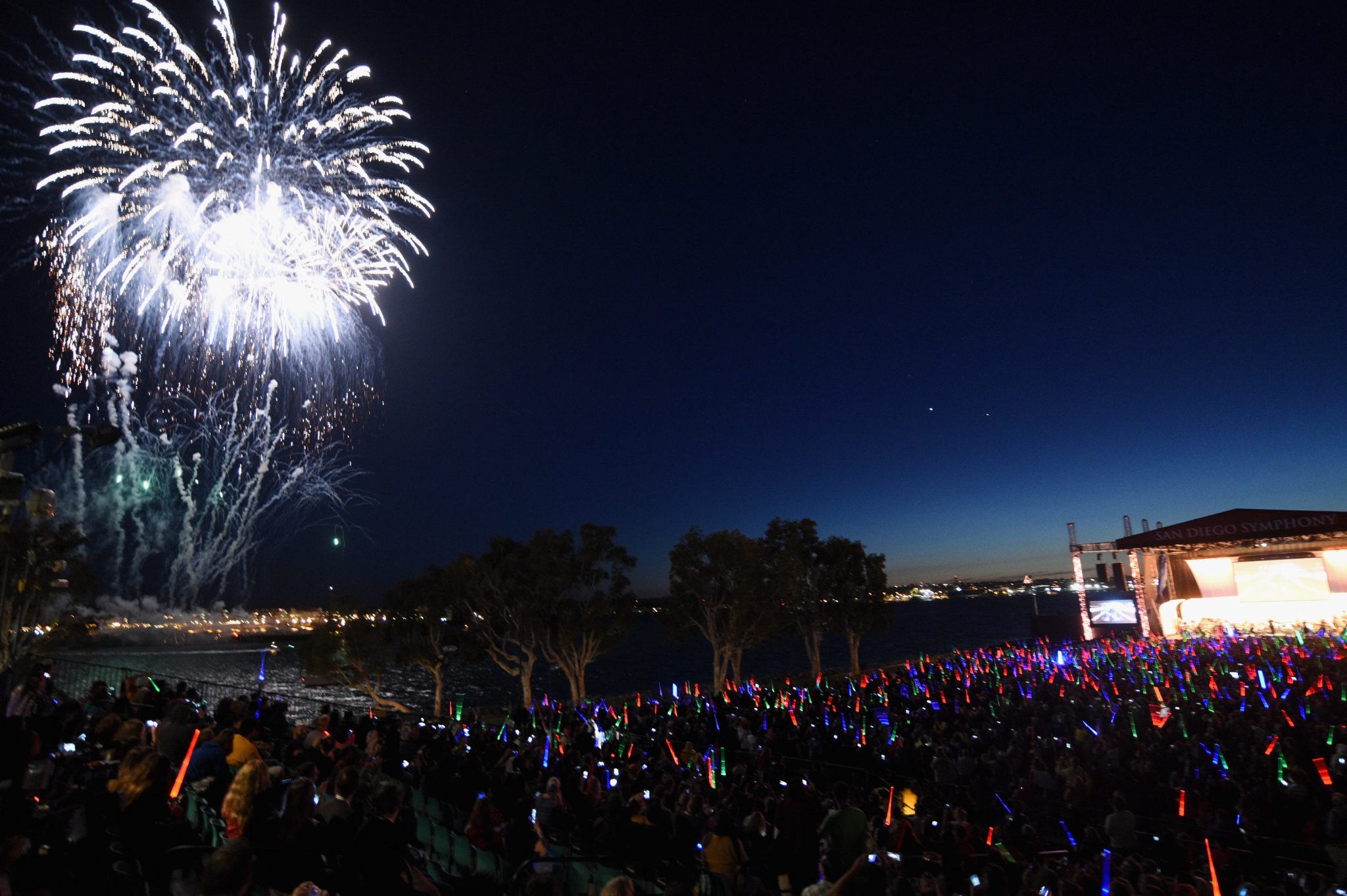 SAN DIEGO, CA – JULY 10: Following the “Star Wars” Hall H presentation at Comic-Con International 2015 at the San Diego Convention Center in San Diego, Calif., the audience of more than 6000 fans enjoyed a surprise “Star Wars” Fan Concert performed by the San Diego Symphony, featuring the classic ?Star Wars? music of composer John Williams, at the Embarcadero Marina Park South on July 10, 2015 in San Diego, California. (Photo by Michael Buckner/Getty Images for Disney)