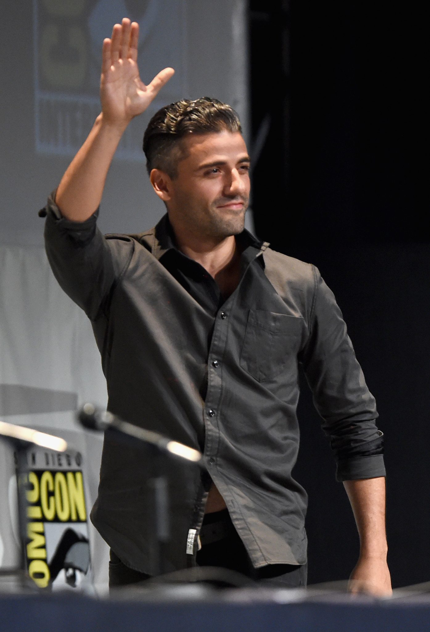 SAN DIEGO, CA – JULY 10: Actor Oscar Isaac at the Hall H Panel for `Star Wars: The Force Awakens` during Comic-Con International 2015 at the San Diego Convention Center on July 10, 2015 in San Diego, California. (Photo by Jesse Grant/Getty Images for Disney) *** Local Caption *** Oscar Isaac