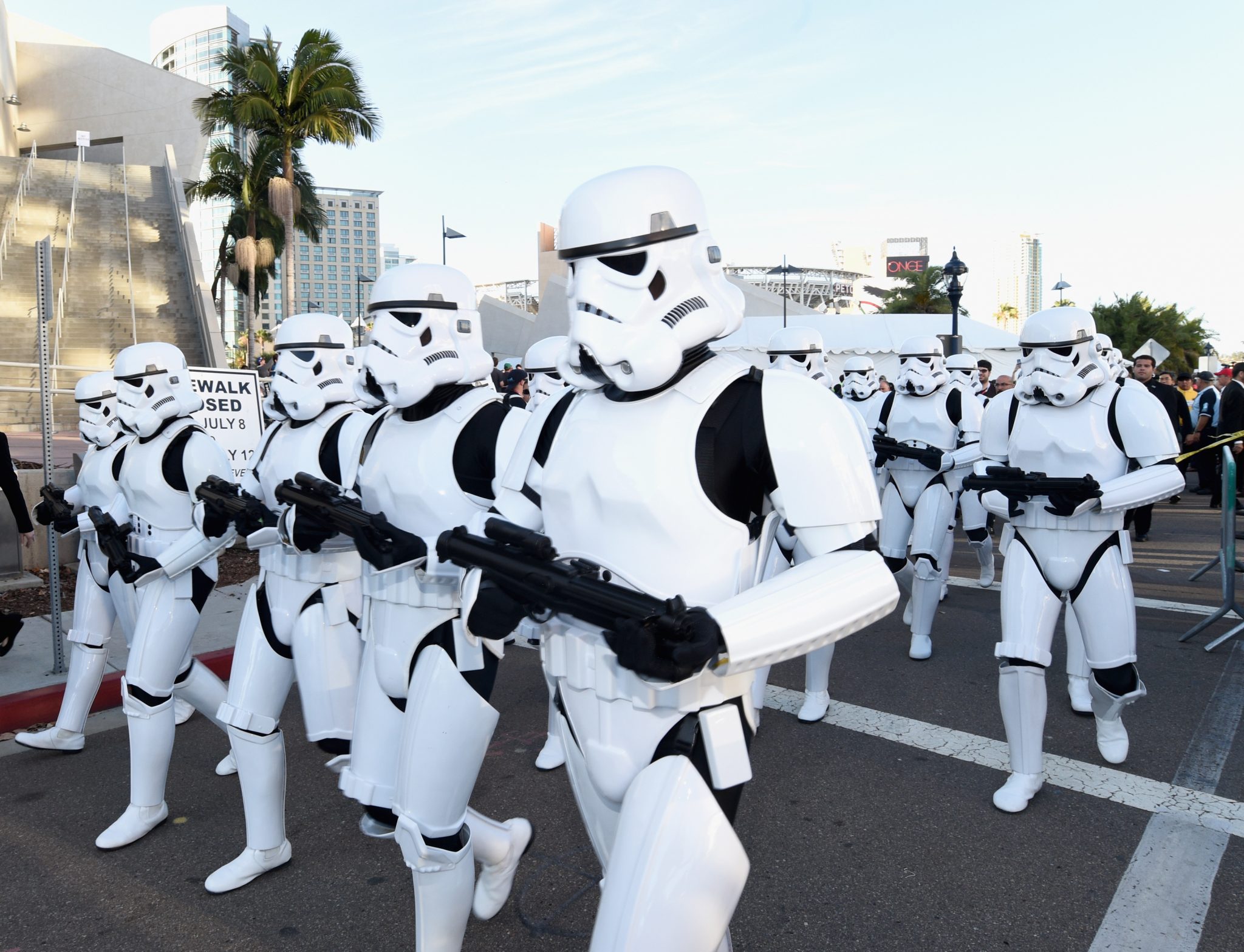 SAN DIEGO, CA – JULY 10: Following the `Star Wars` Hall H presentation at Comic-Con International 2015 at the San Diego Convention Center in San Diego, Calif., 501st Legion member, Kevin Doyle and the audience of more than 6000 fans walked to a surprise `Star Wars` Fan Concert performed by the San Diego Symphony, featuring the classic `Star Wars` music of composer John Williams, at the Embarcadero Marina Park South on July 10, 2015 in San Diego, California. (Photo by Michael Buckner/Getty Images for Disney) *** Local Caption *** Kevin Doyle