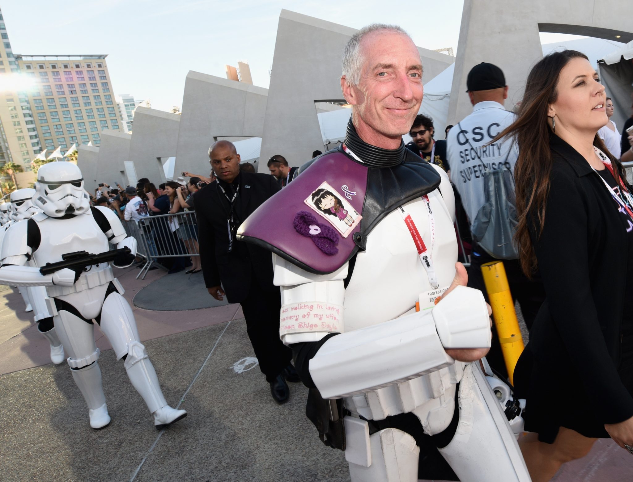 SAN DIEGO, CA – JULY 10: 501st Legion member Kevin Doyle at the Hall H Panel for `Star Wars: The Force Awakens` during Comic-Con International 2015 at the San Diego Convention Center on July 10, 2015 in San Diego, California. (Photo by Jesse Grant/Getty Images for Disney) *** Local Caption *** Kevin Doyle