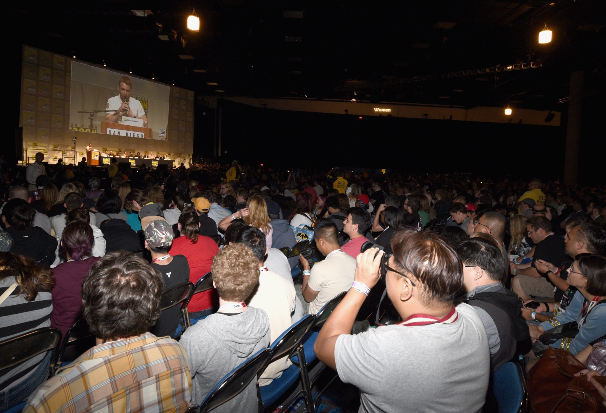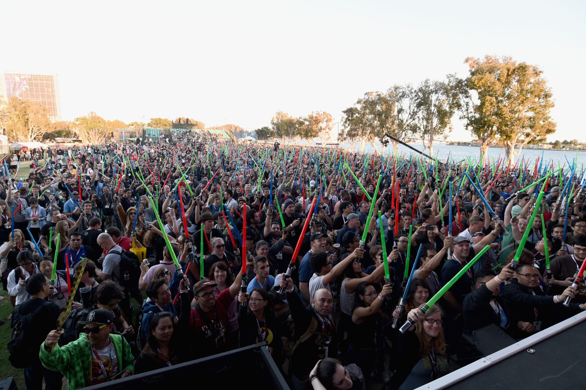 SAN DIEGO, CA – JULY 10: Star Wars fans at the Hall H Panel for `Star Wars: The Force Awakens` during Comic-Con International 2015 at the San Diego Convention Center on July 10, 2015 in San Diego, California. (Photo by Michael Buckner/Getty Images for Disney)