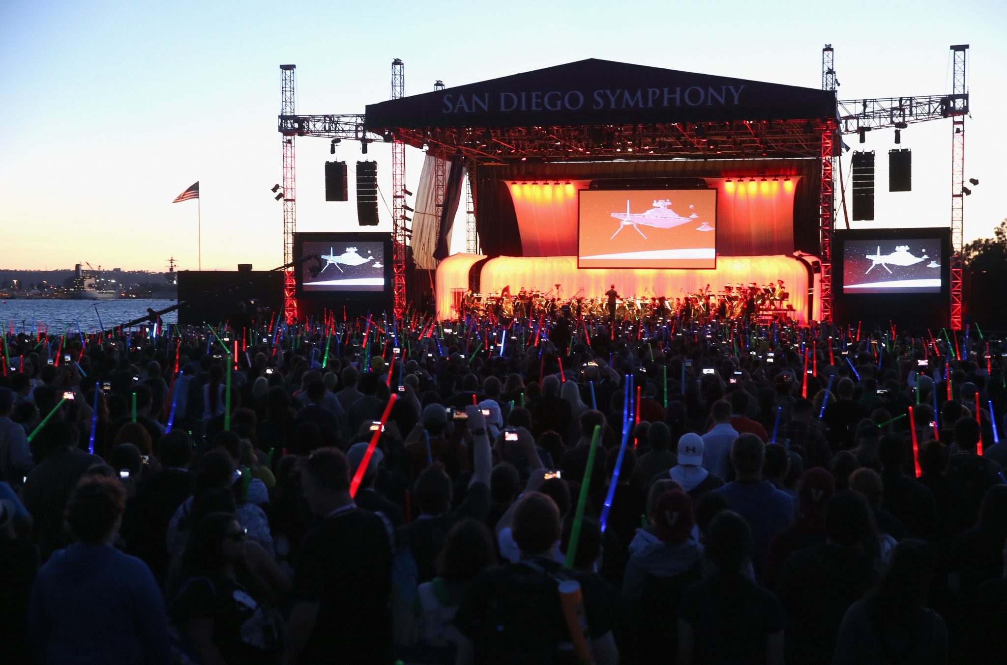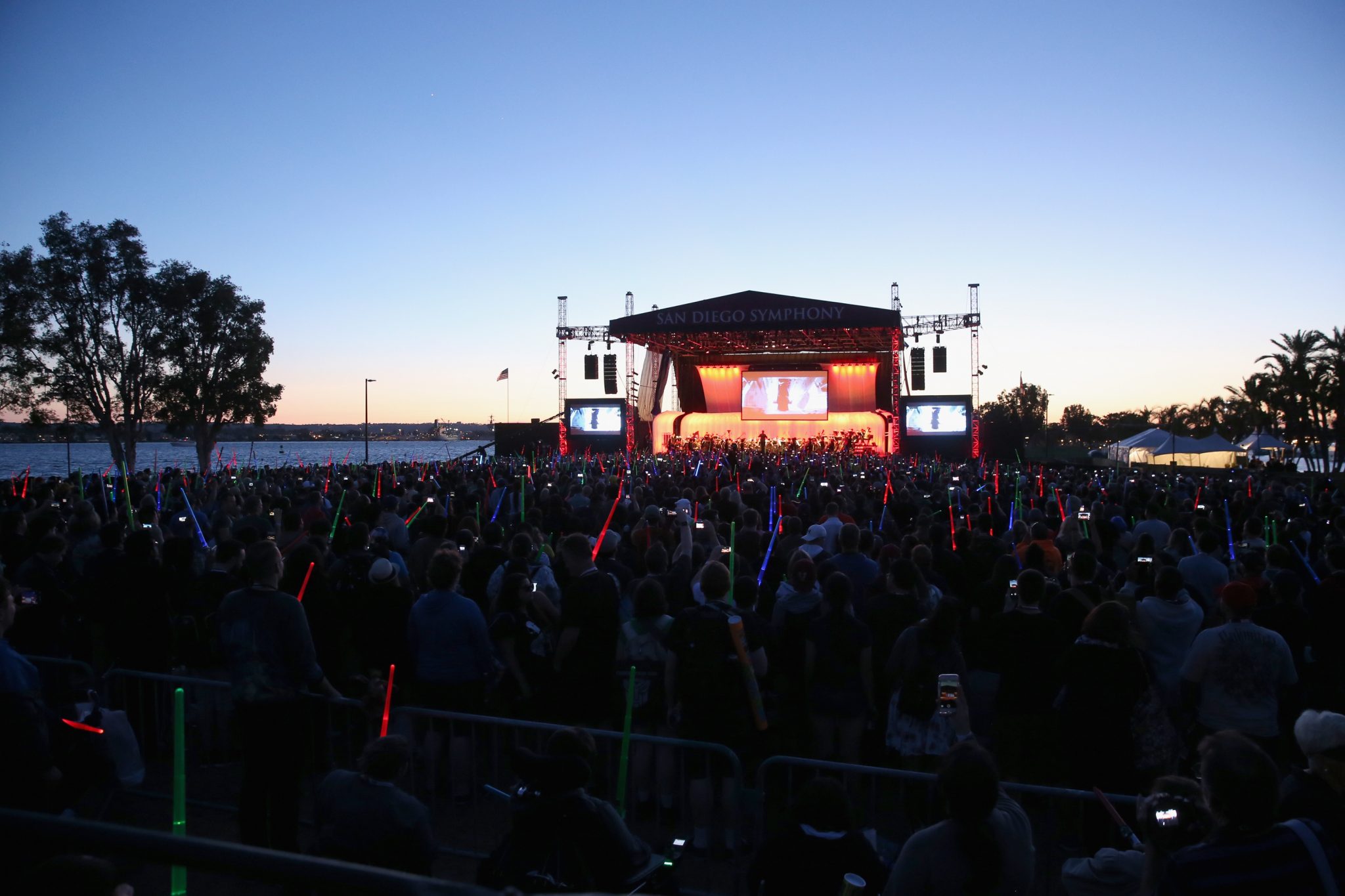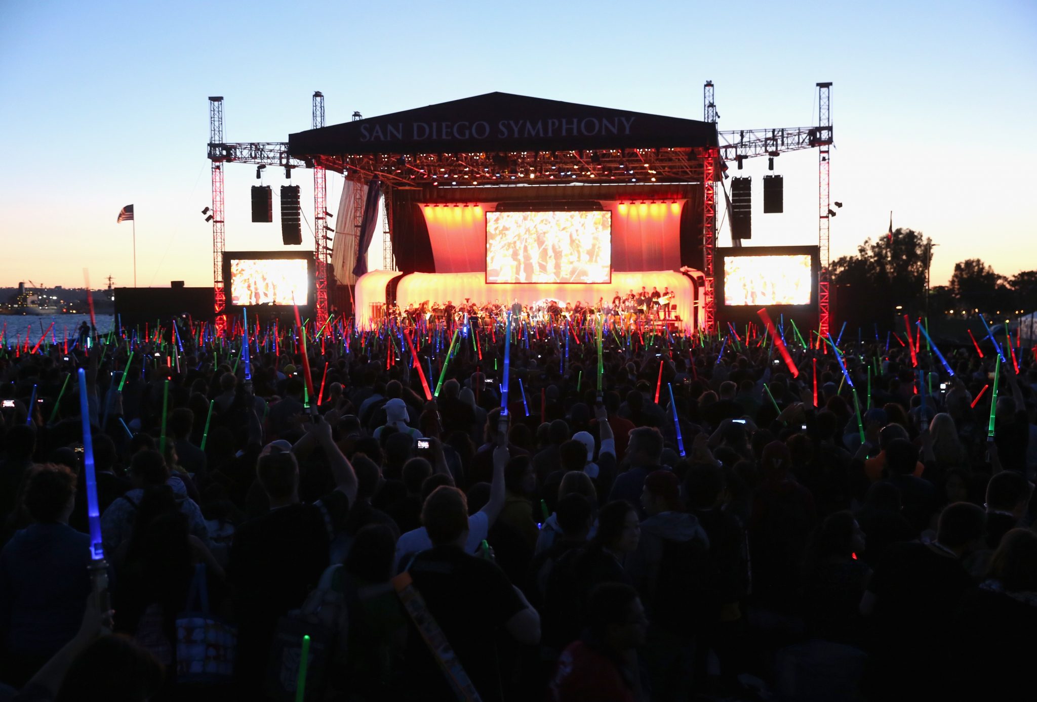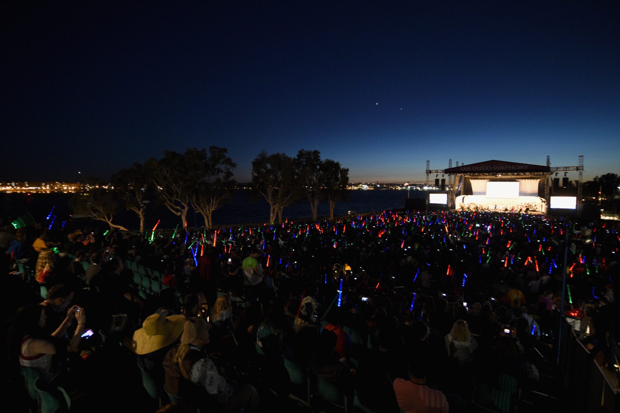 SAN DIEGO, CA – JULY 10: Following the `Star Wars` Hall H presentation at Comic-Con International 2015 at the San Diego Convention Center in San Diego, Calif., the audience of more than 6000 fans walked to a surprise `Star Wars` Fan Concert performed by the San Diego Symphony, featuring the classic `Star Wars` music of composer John Williams, at the Embarcadero Marina Park South on July 10, 2015 in San Diego, California. (Photo by Michael Buckner/Getty Images for Disney)