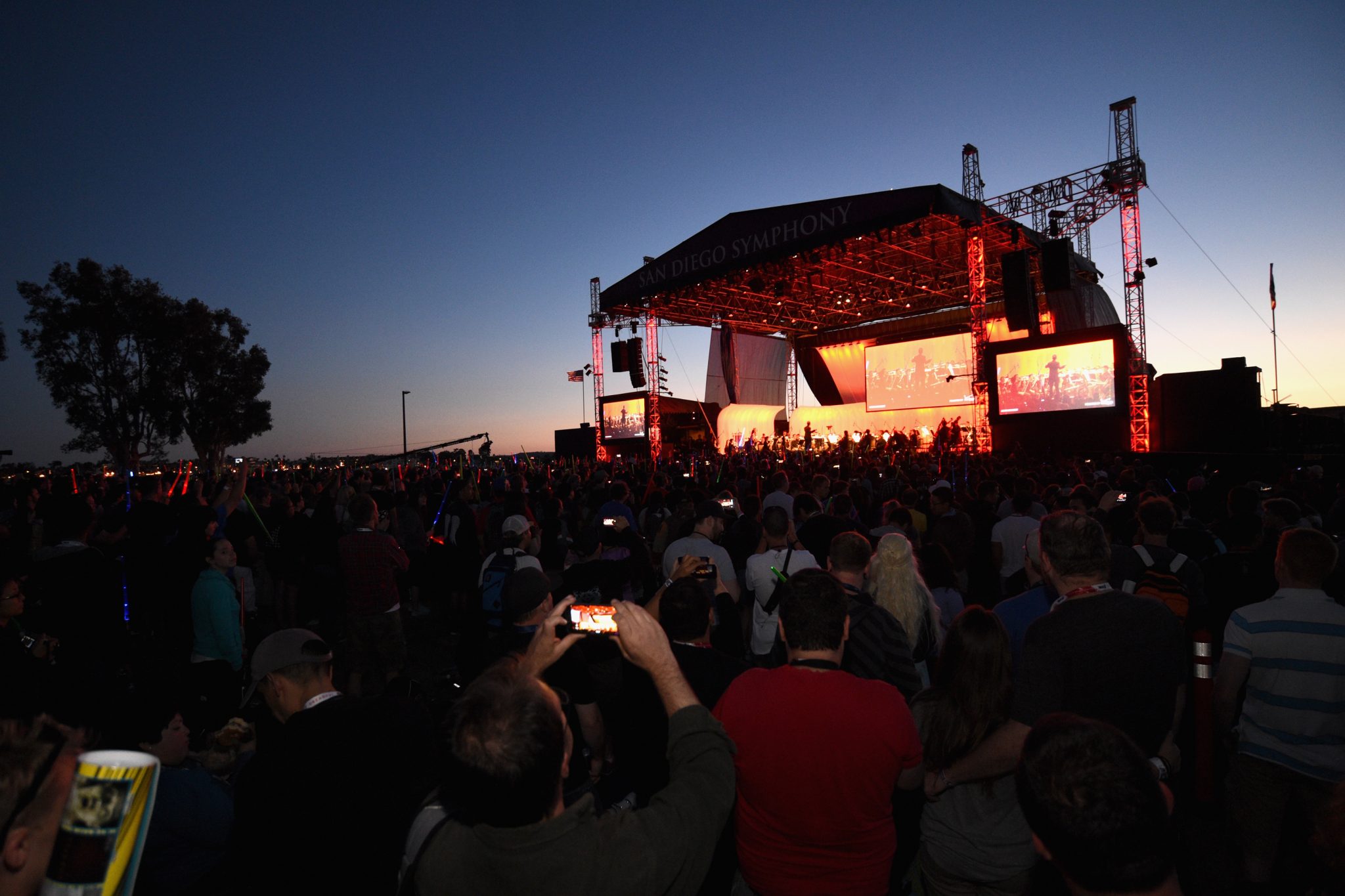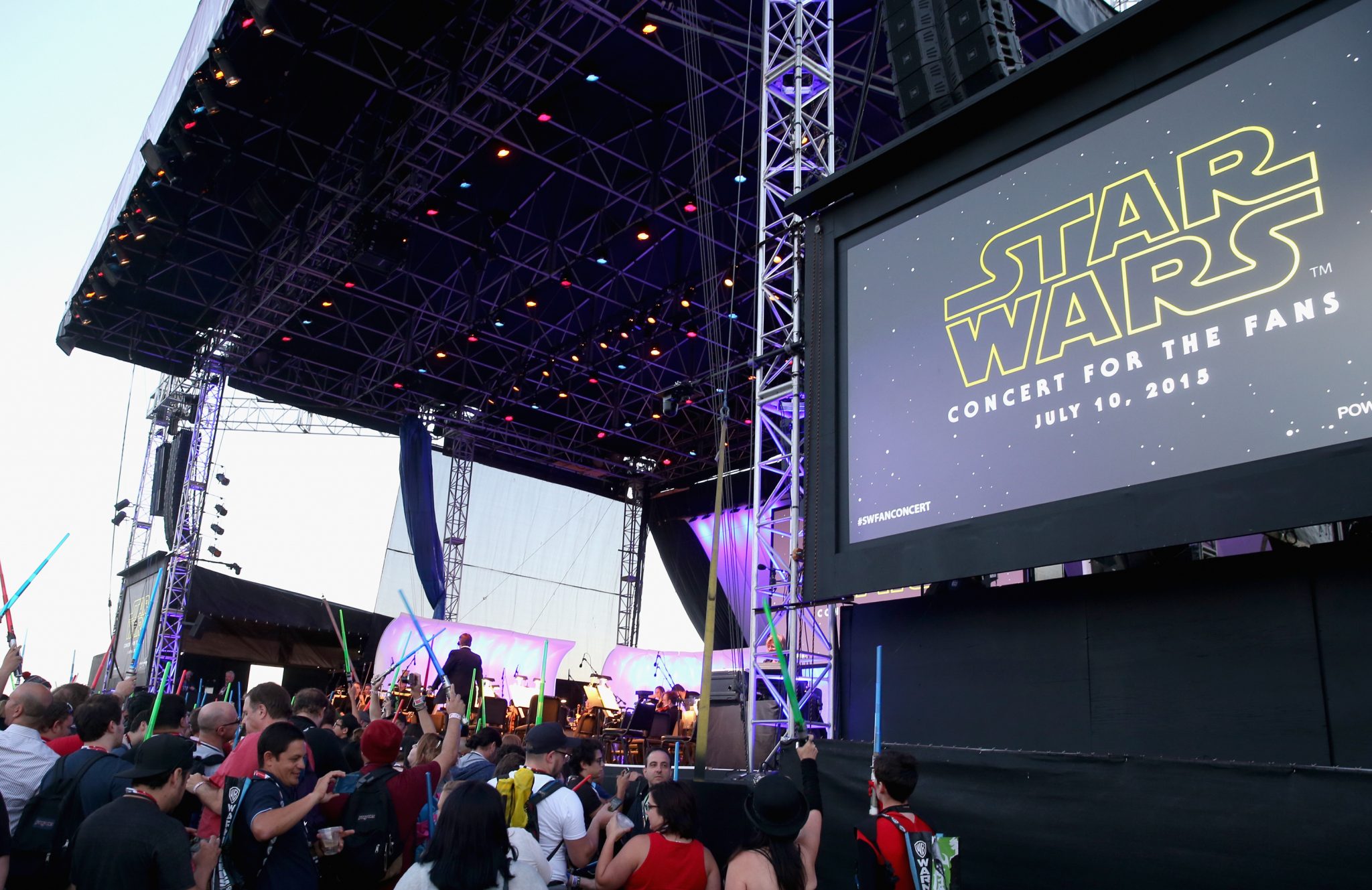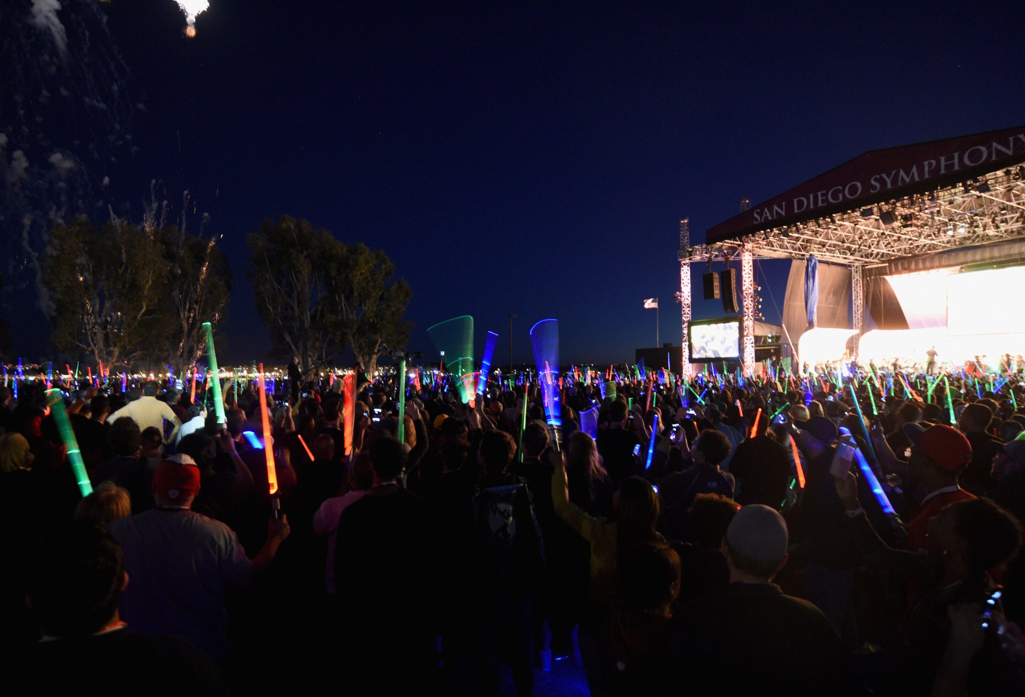 SAN DIEGO, CA – JULY 10: Following the `Star Wars` Hall H presentation at Comic-Con International 2015 at the San Diego Convention Center in San Diego, Calif., the audience of more than 6000 fans walked to a surprise `Star Wars` Fan Concert performed by the San Diego Symphony, featuring the classic `Star Wars` music of composer John Williams, at the Embarcadero Marina Park South on July 10, 2015 in San Diego, California. (Photo by Michael Buckner/Getty Images for Disney)