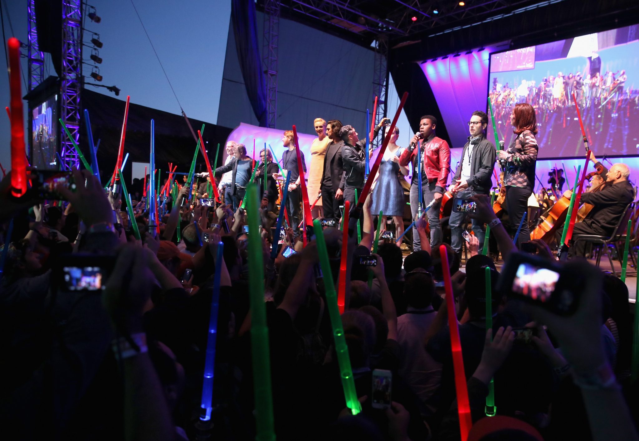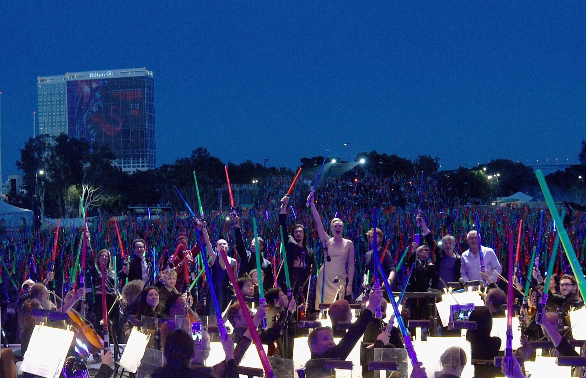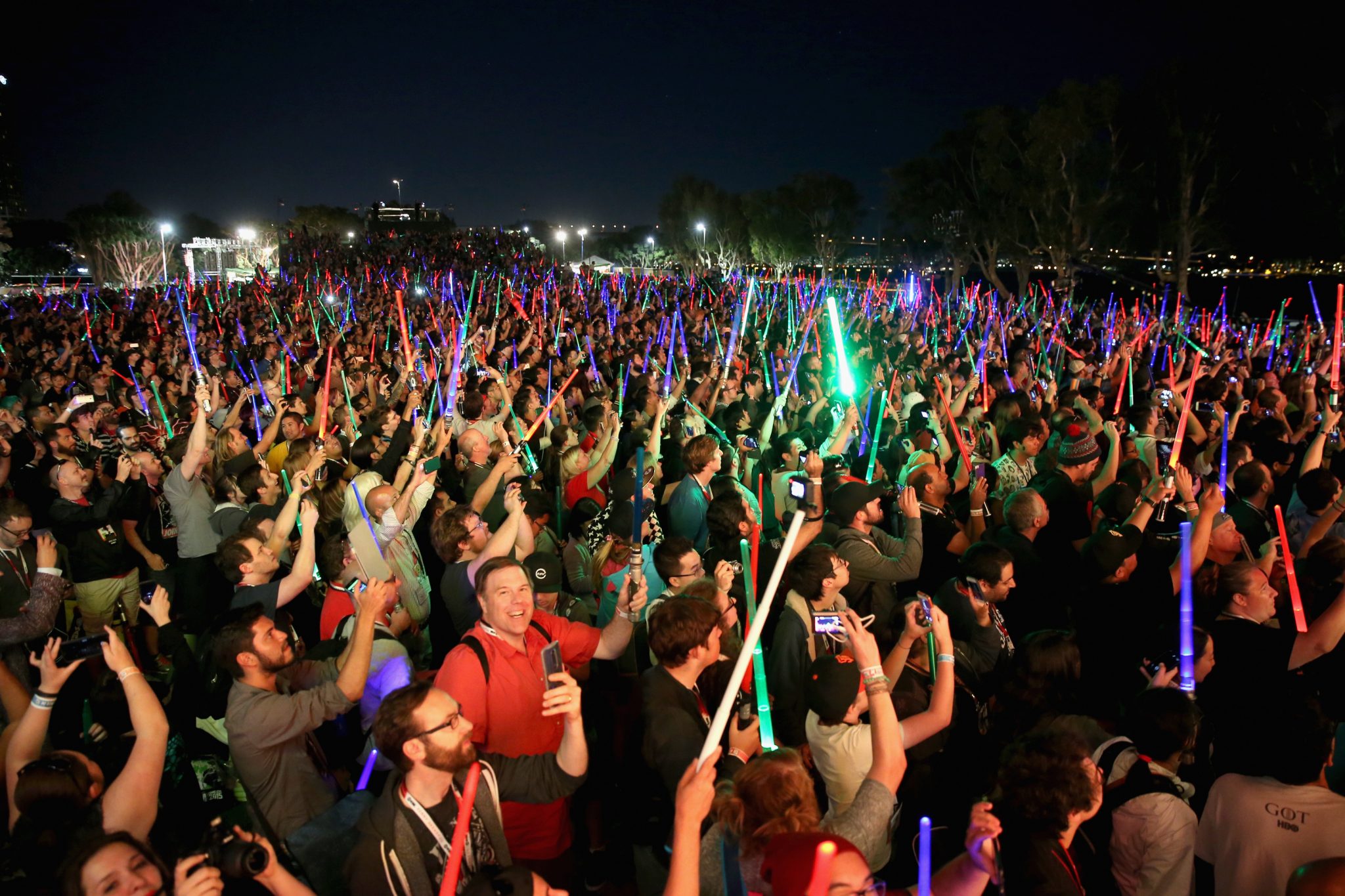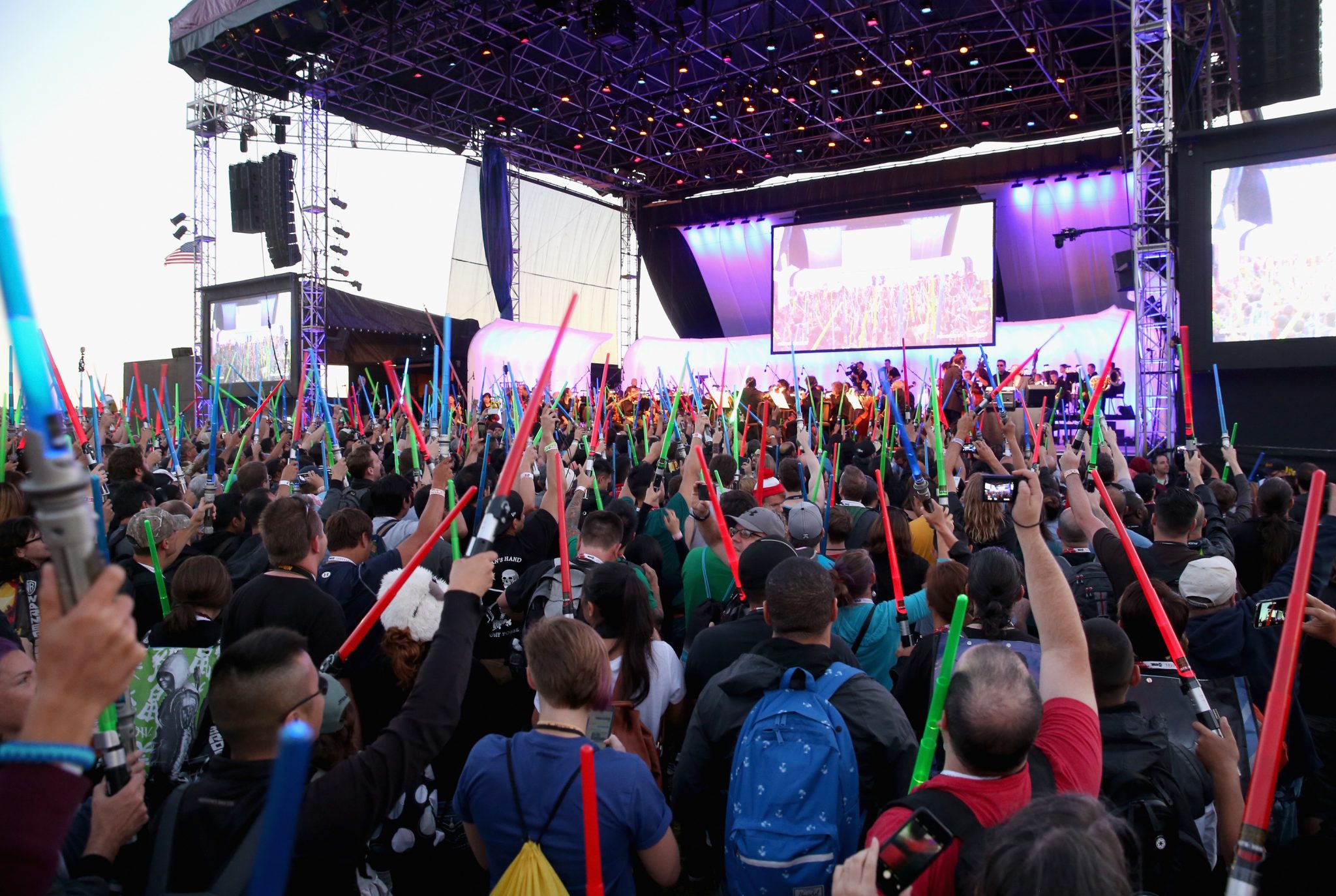 SAN DIEGO, CA – JULY 10: Following the `Star Wars` Hall H presentation at Comic-Con International 2015 at the San Diego Convention Center in San Diego, Calif., the audience of more than 6000 fans walked to a surprise `Star Wars` Fan Concert performed by the San Diego Symphony, featuring the classic `Star Wars` music of composer John Williams, at the Embarcadero Marina Park South on July 10, 2015 in San Diego, California. (Photo by Michael Buckner/Getty Images for Disney)