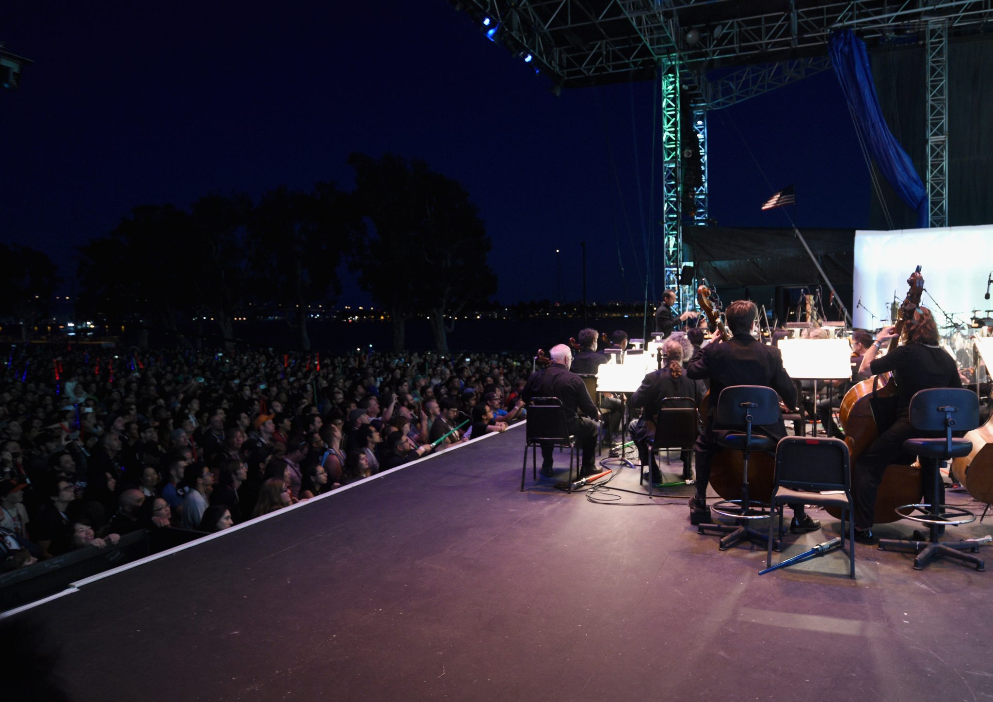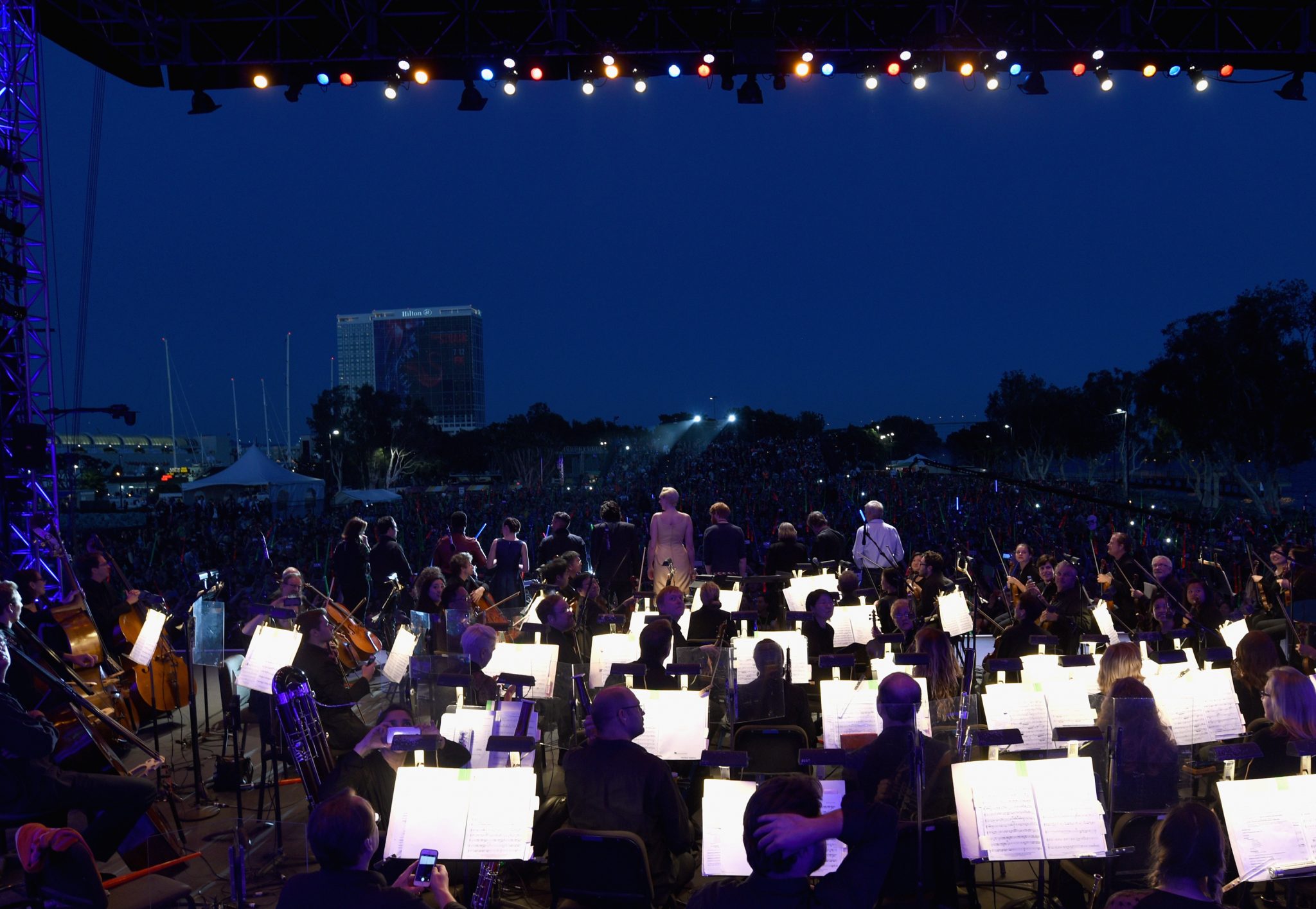SAN DIEGO, CA – JULY 10: Following the `Star Wars` Hall H presentation at Comic-Con International 2015 at the San Diego Convention Center in San Diego, Calif., the audience of more than 6000 fans enjoyed a surprise “Star Wars” Fan Concert performed by the San Diego Symphony, featuring the classic `Star Wars` music of composer John Williams, at the Embarcadero Marina Park South on July 10, 2015 in San Diego, California. (Photo by Michael Buckner/Getty Images for Disney)
