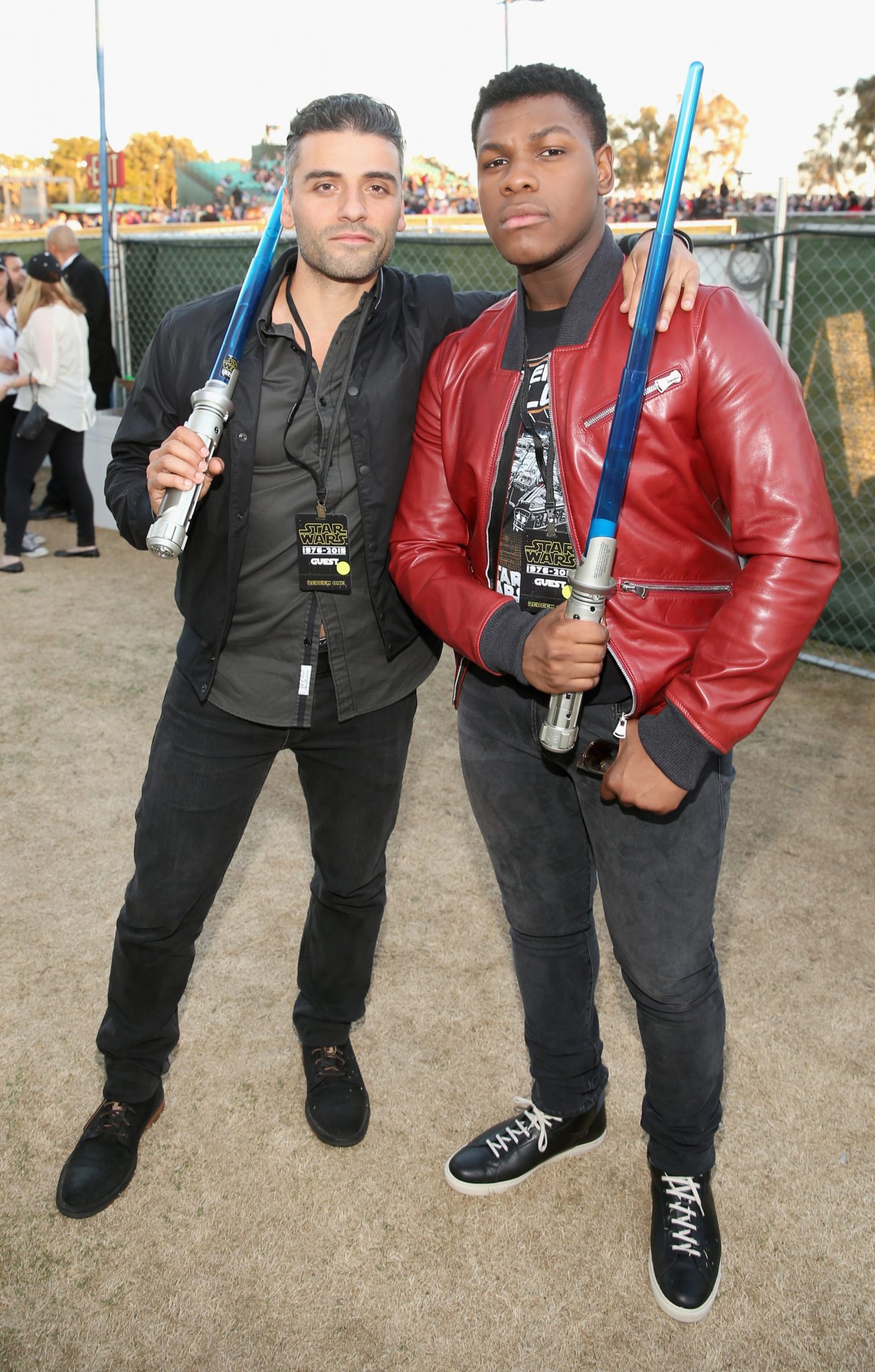 SAN DIEGO, CA – JULY 10: Actors Oscar Isaac (L) and John Boyega and more than 6000 fans enjoyed a surprise `Star Wars` Fan Concert performed by the San Diego Symphony, featuring the classic `Star Wars` music of composer John Williams, at the Embarcadero Marina Park South on July 10, 2015 in San Diego, California. (Photo by Jesse Grant/Getty Images for Disney) *** Local Caption *** Oscar Isaac; John Boyega