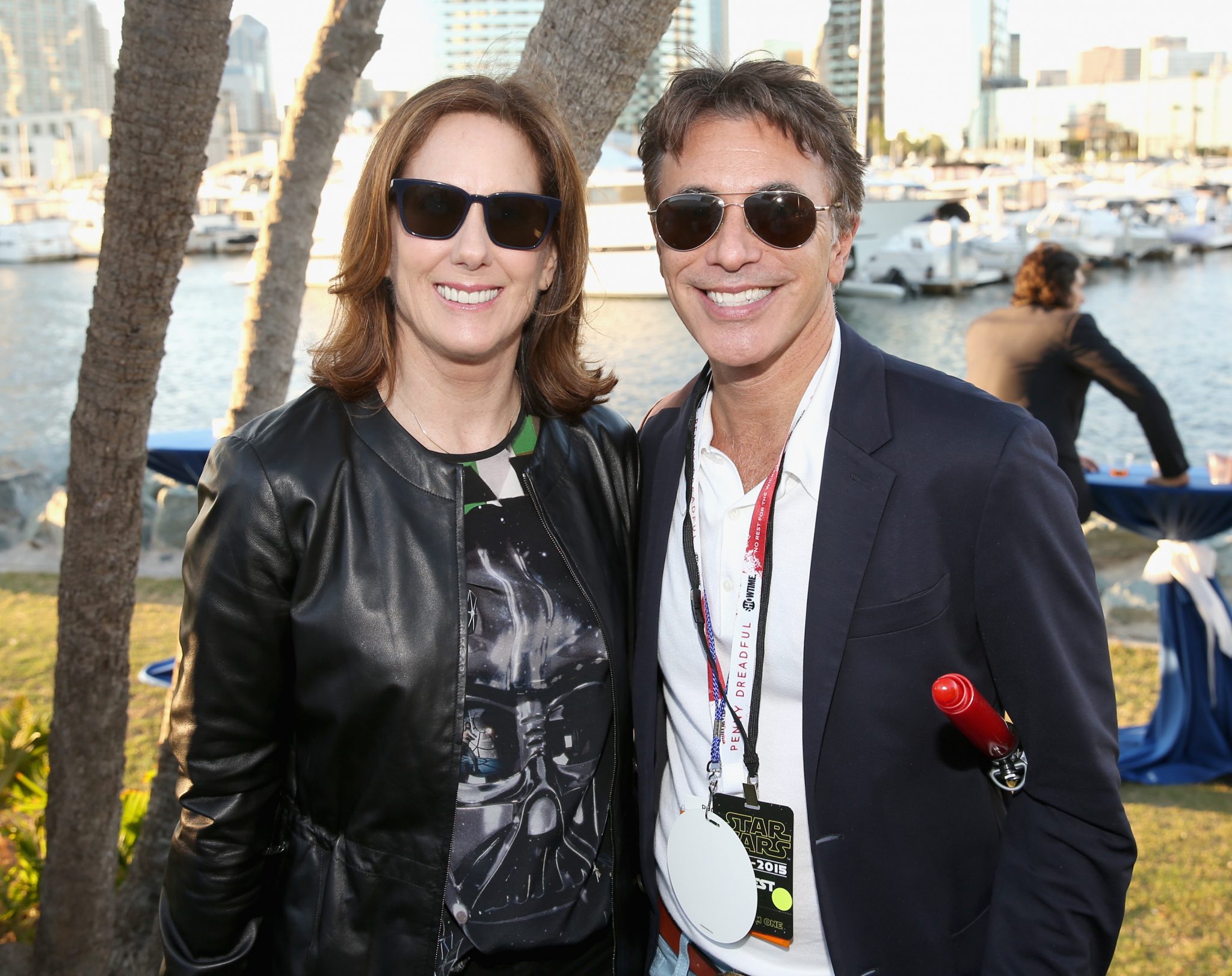 SAN DIEGO, CA – JULY 10: Producer Kathleen Kennedy (L), President of Marketing, The Walt Disney Studios, Ricky Strauss and more than 6000 fans enjoyed a surprise `Star Wars` Fan Concert performed by the San Diego Symphony, featuring the classic `Star Wars` music of composer John Williams, at the Embarcadero Marina Park South on July 10, 2015 in San Diego, California. (Photo by Jesse Grant/Getty Images for Disney) *** Local Caption *** Kathleen Kennedy; Ricky Strauss