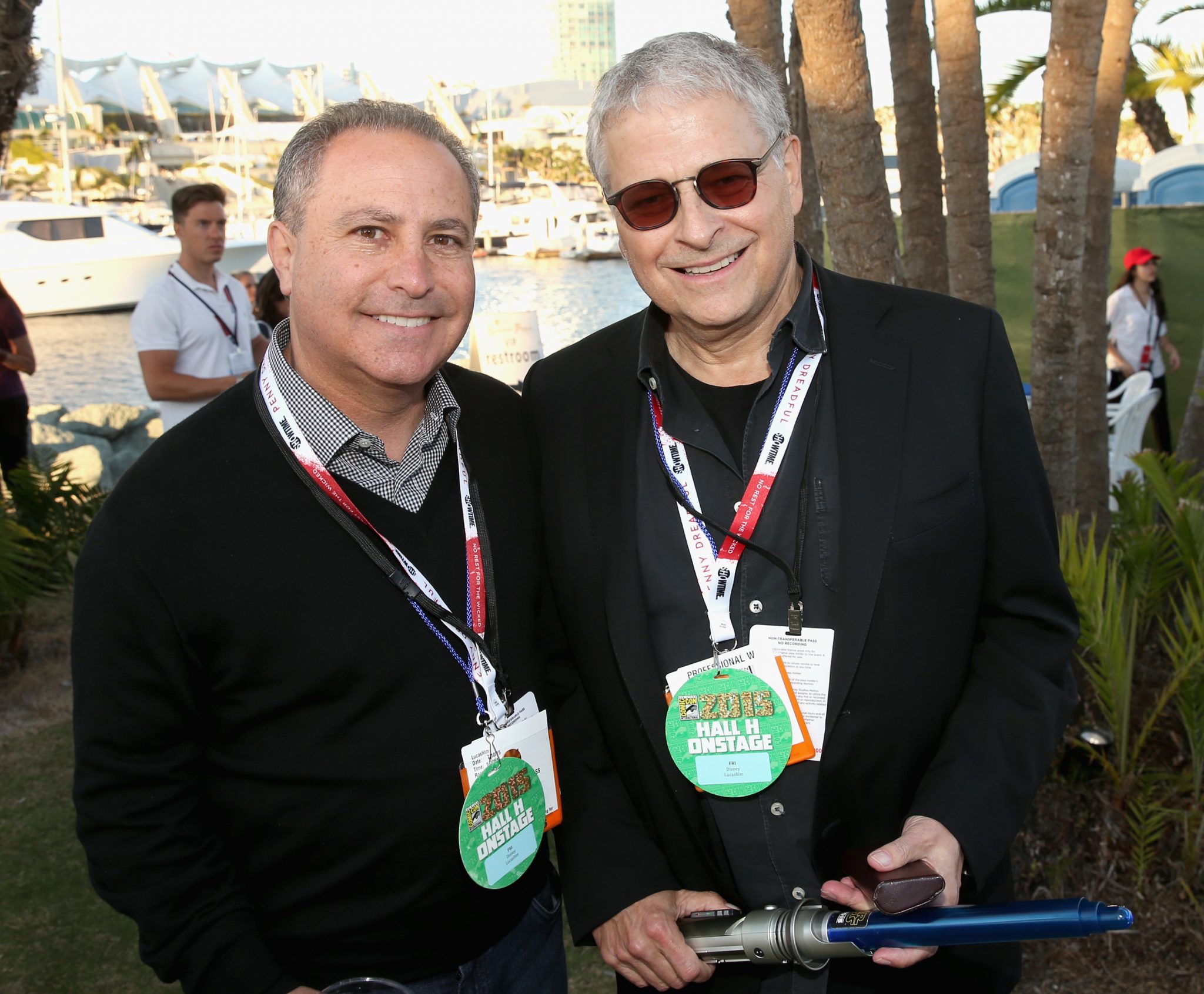 SAN DIEGO, CA – JULY 10: President, The Walt Disney Studios, Alan Bergman (L), screenwriter Lawrence Kasdan and more than 6000 fans enjoyed a surprise `Star Wars` Fan Concert performed by the San Diego Symphony, featuring the classic `Star Wars` music of composer John Williams, at the Embarcadero Marina Park South on July 10, 2015 in San Diego, California. (Photo by Jesse Grant/Getty Images for Disney) *** Local Caption *** Alan Bergman; Lawrence Kasdan