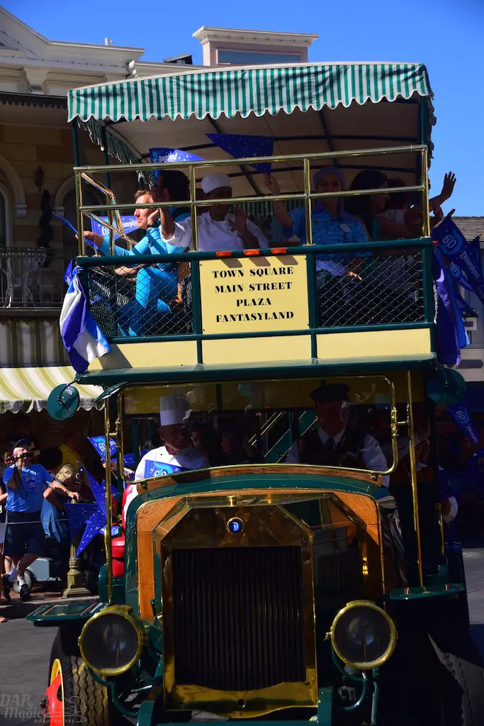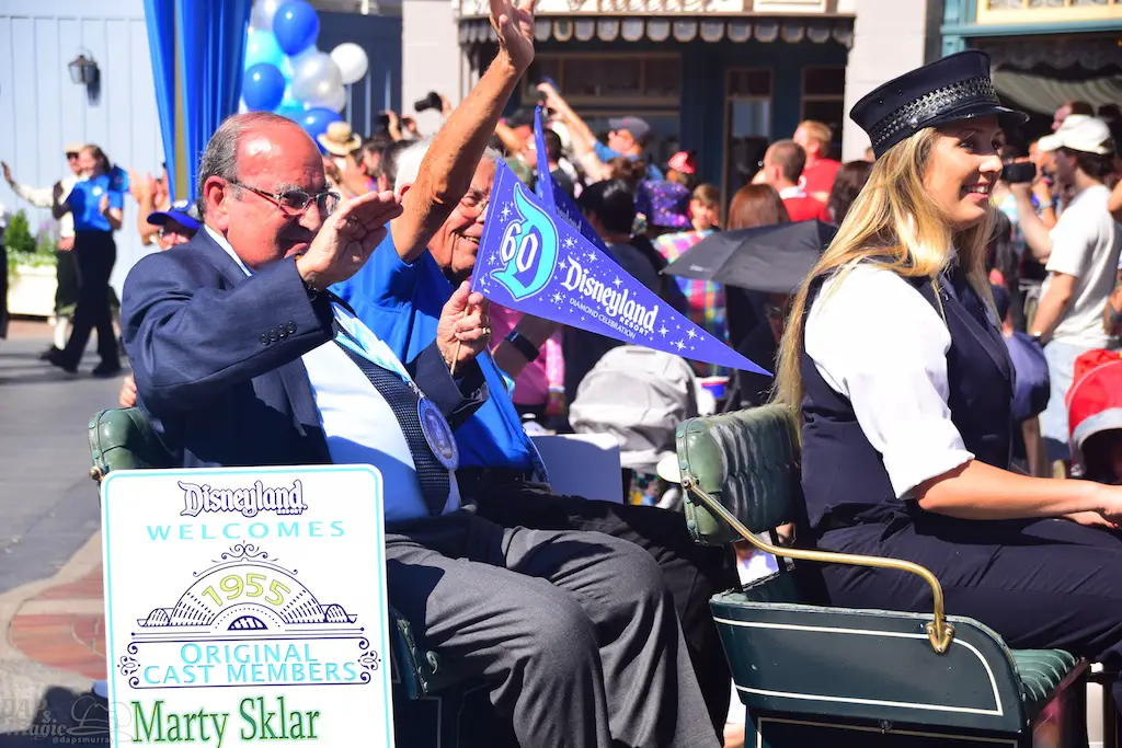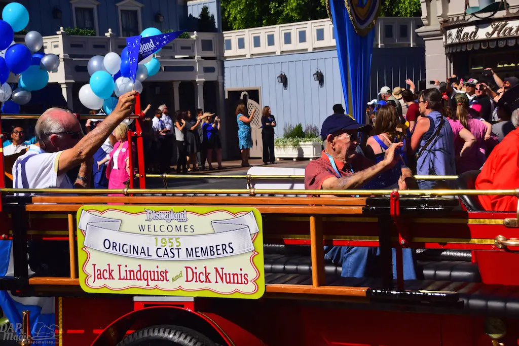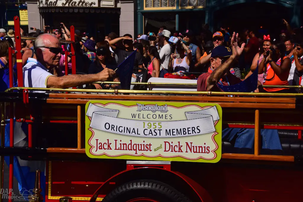 In the afternoon there was a special pre-parade celebrating the Cast Members who had been at Disneyland on opening day, and accompanied by characters and present Cast Members. A few Disney Legends were in this parade, along with some favorite present Cast Members that always brighten the day of guests. The pre-parade made use of Main Street Vehicles while others walked along. It was a great tribute to those who have made Disneyland what it is behind the scenes.