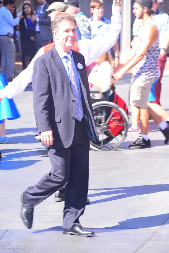 The ceremony was hosted by Michael Colglazier, who pointed out and honored the Disney family, Disney Legends, and longtime Cast Members who were there for the special event. It was announced that Disneyland would start a new donation campaign to give a million dollars in gifts to various organizations around the community. The Million Dollar Dazzle started that day with a $60,000 donation to the Orange County Girl Scouts.
