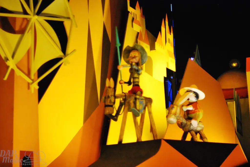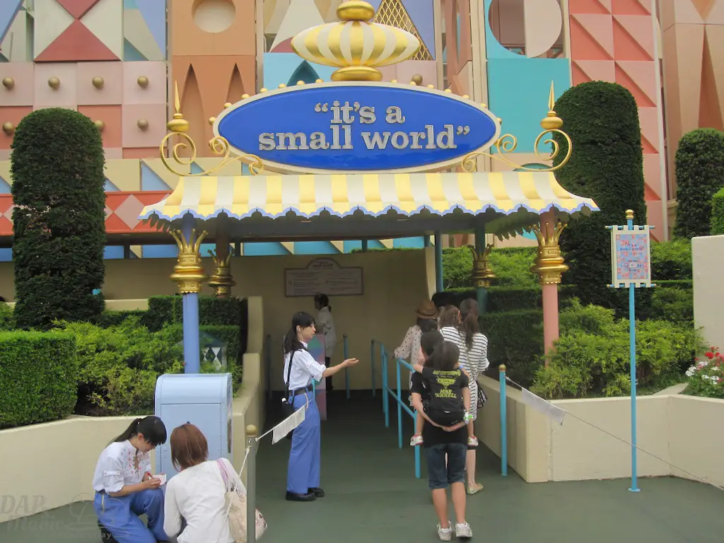 The land has a medieval faire look to it. Again, think Magic Kingdom rather than Disneyland. Though, the facade for “it’s a small world” is a pastel version of the Disneyland facade. Small World remains fairly the same as the States equivalents, though the queue looks like it’s stuck in the 70’s.